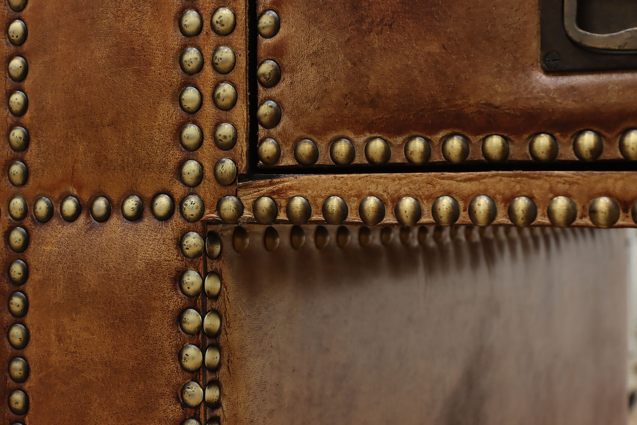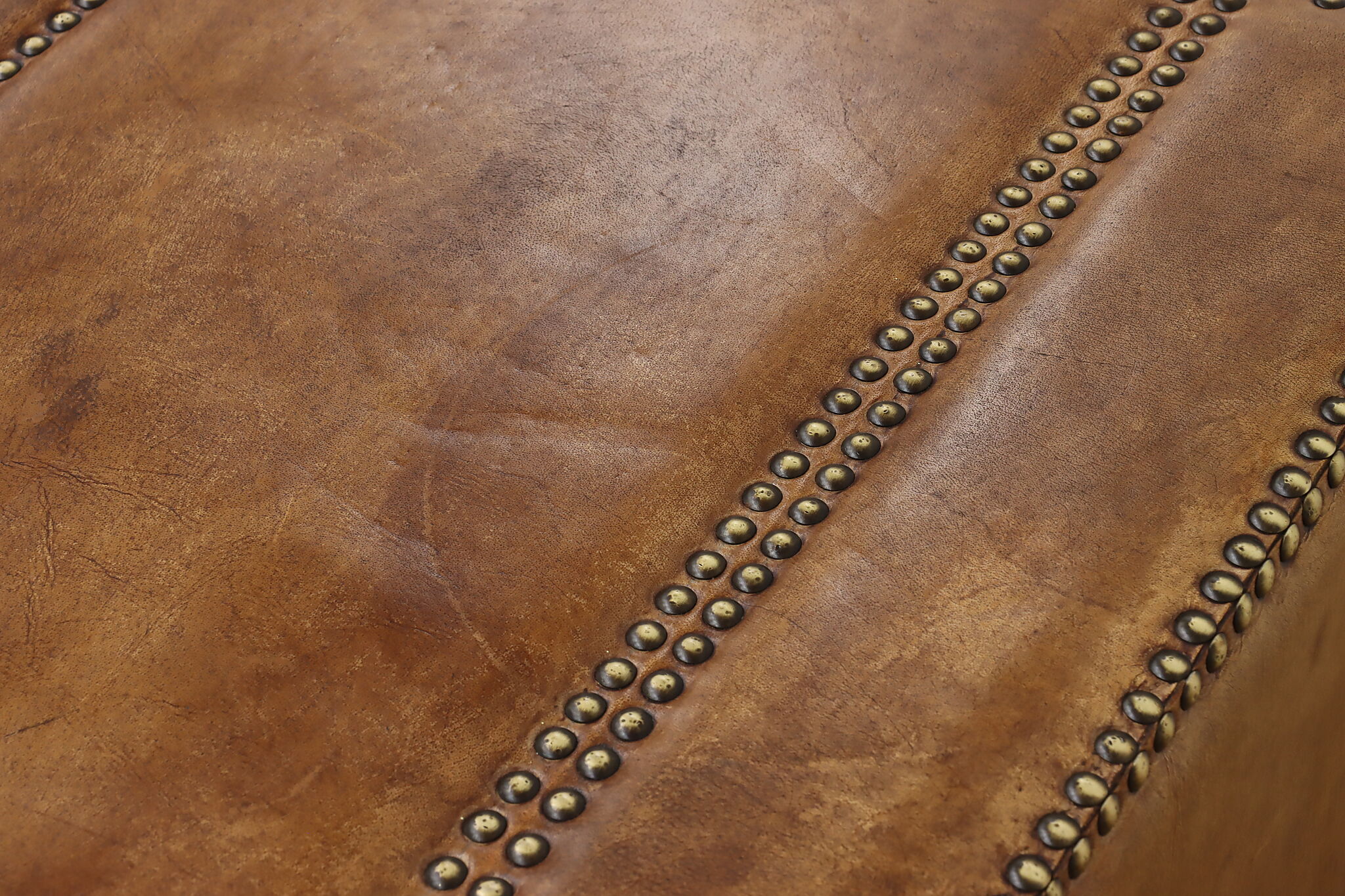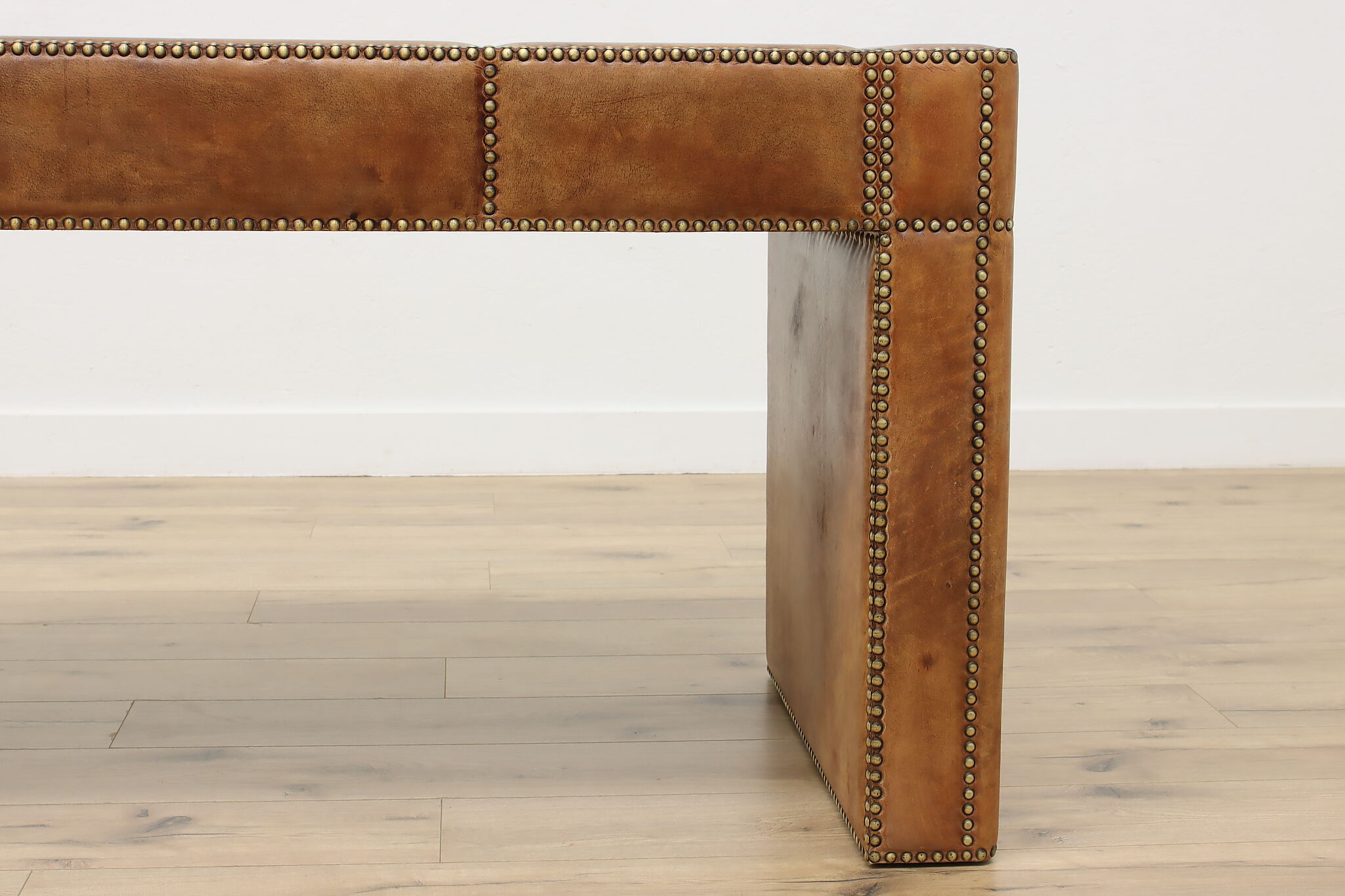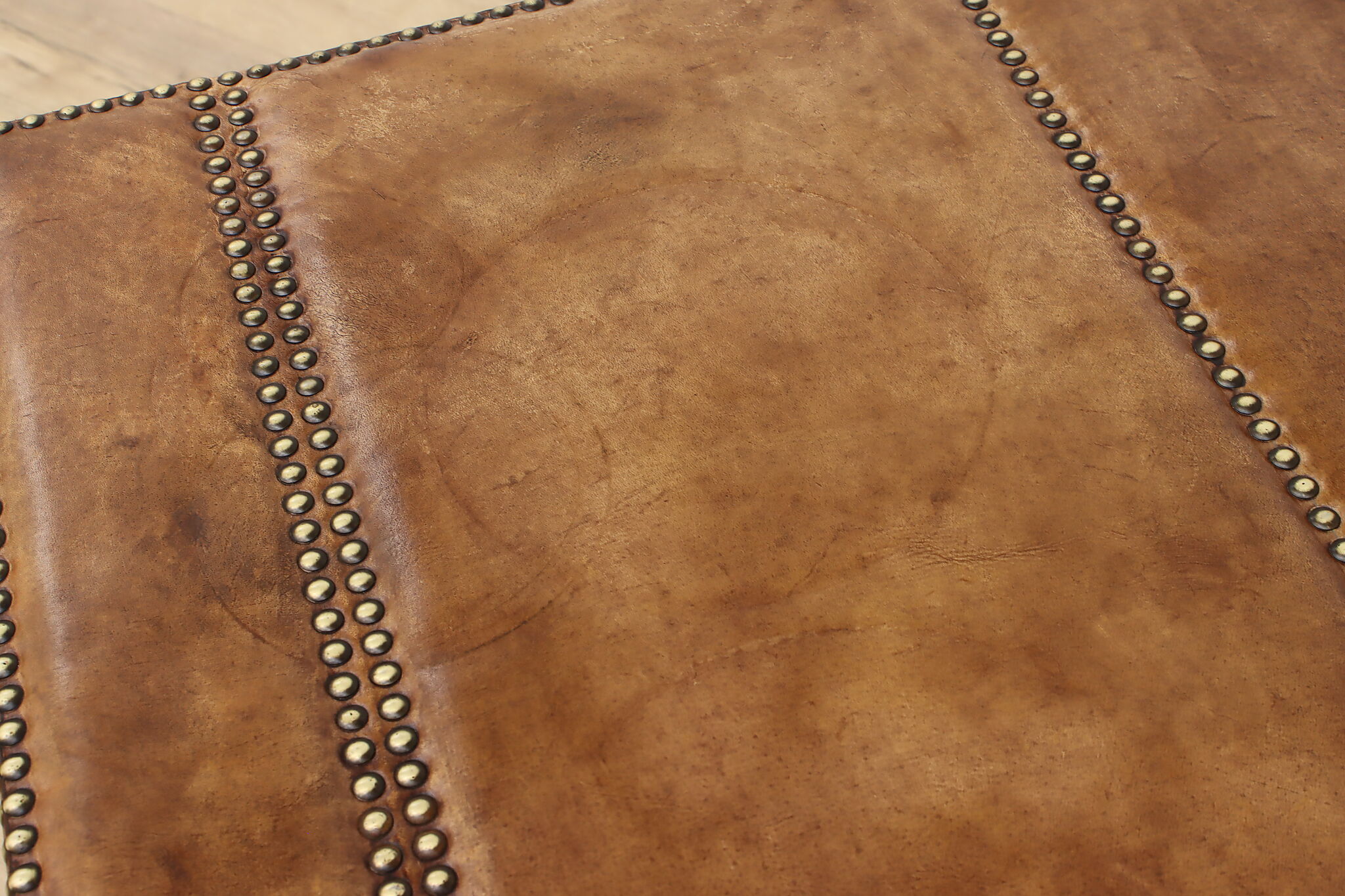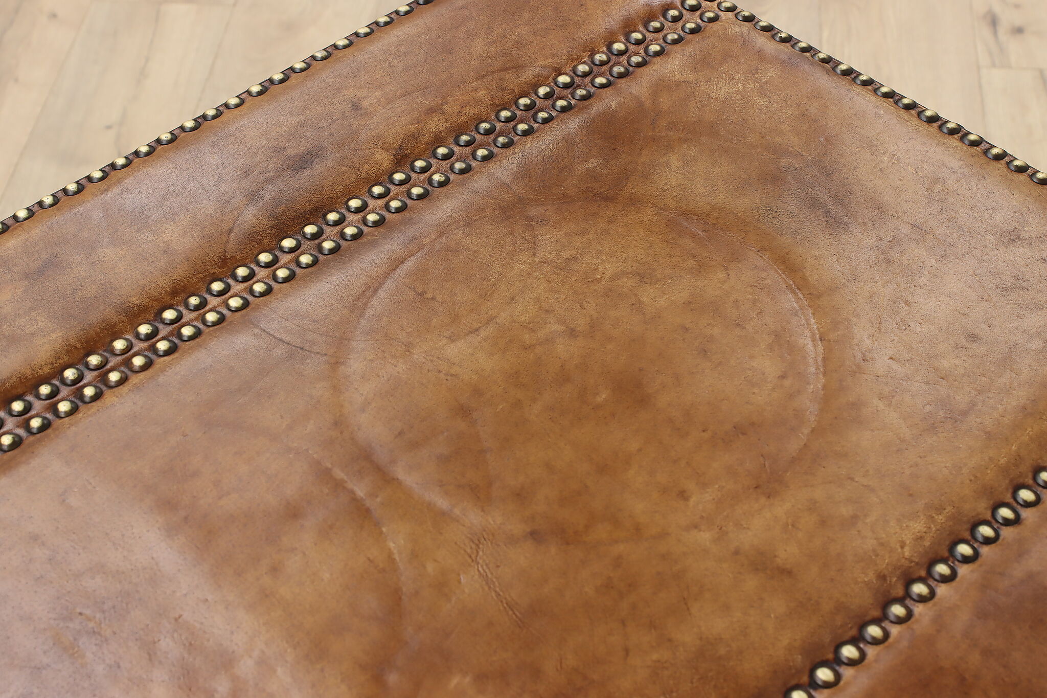 Looking for a unique desk for your office or library? This writing desk has a distinct, eye-catching charm with its warm brown leather upholstery.