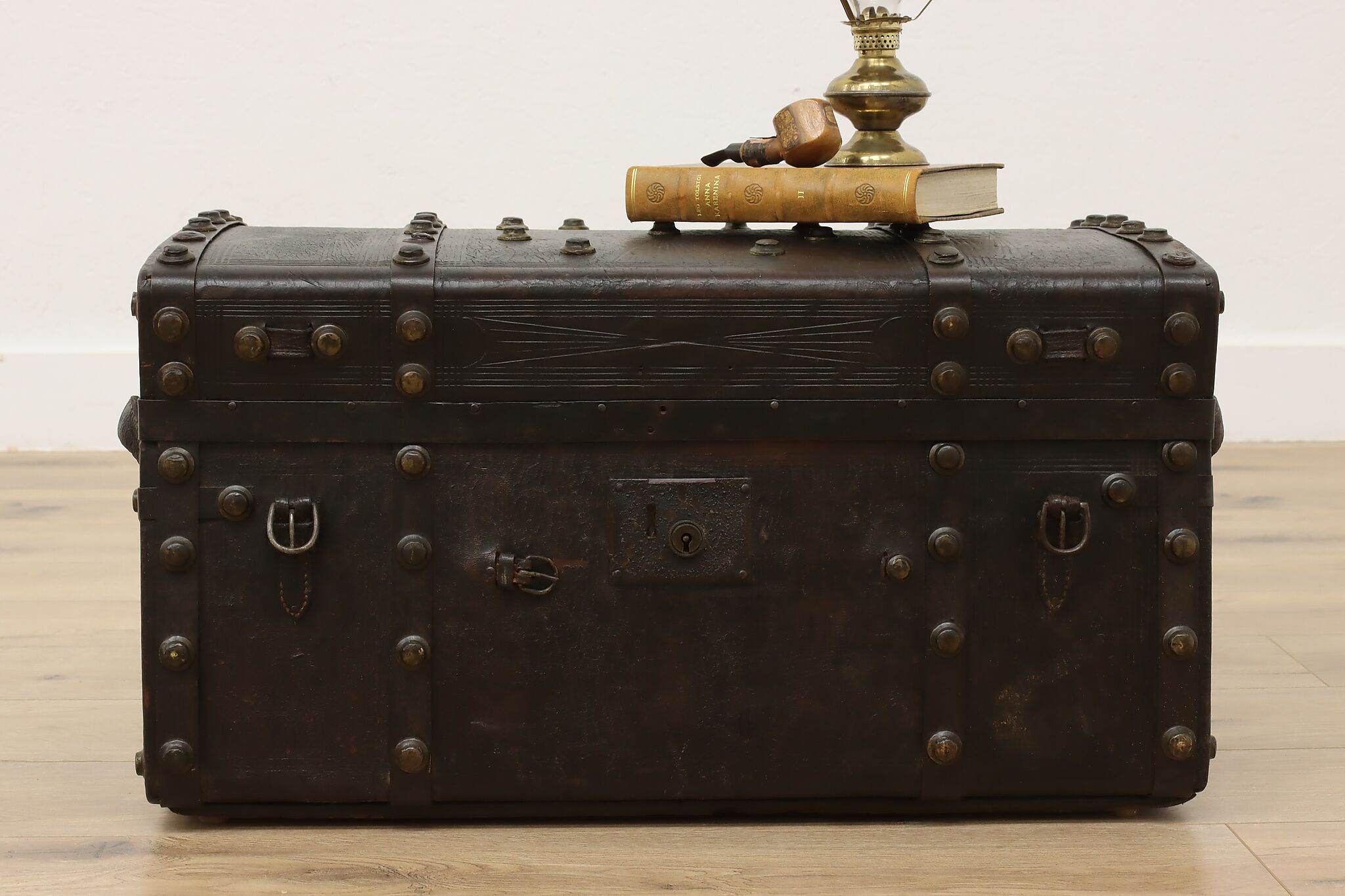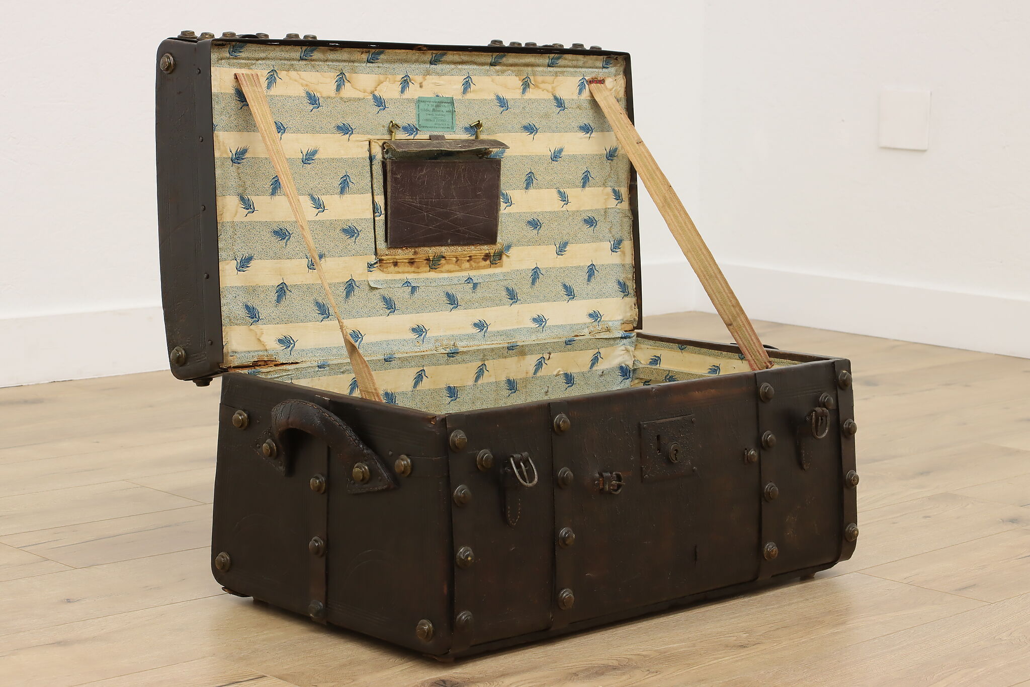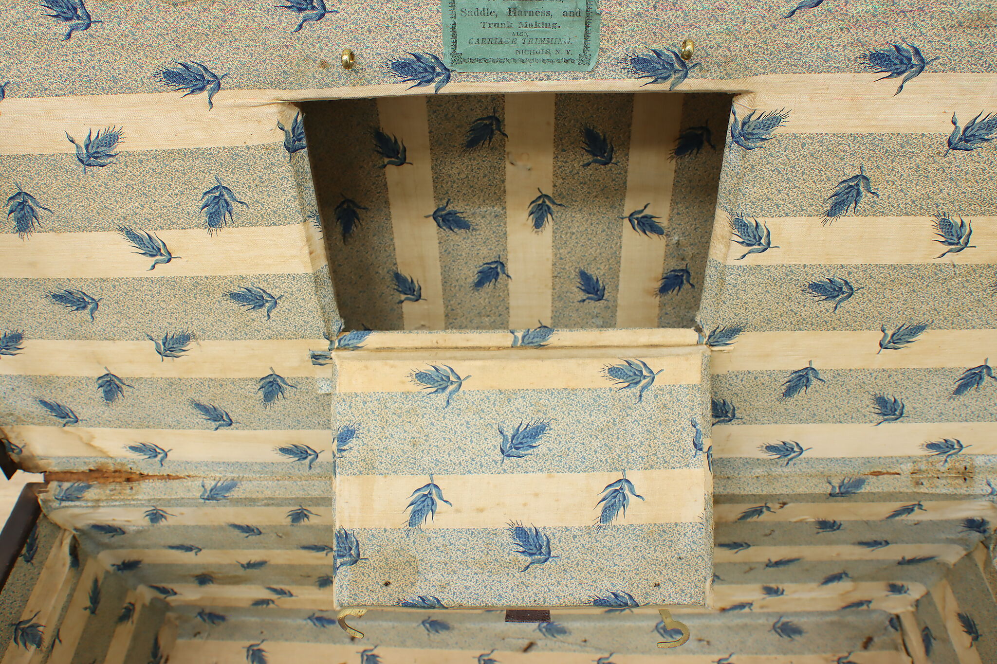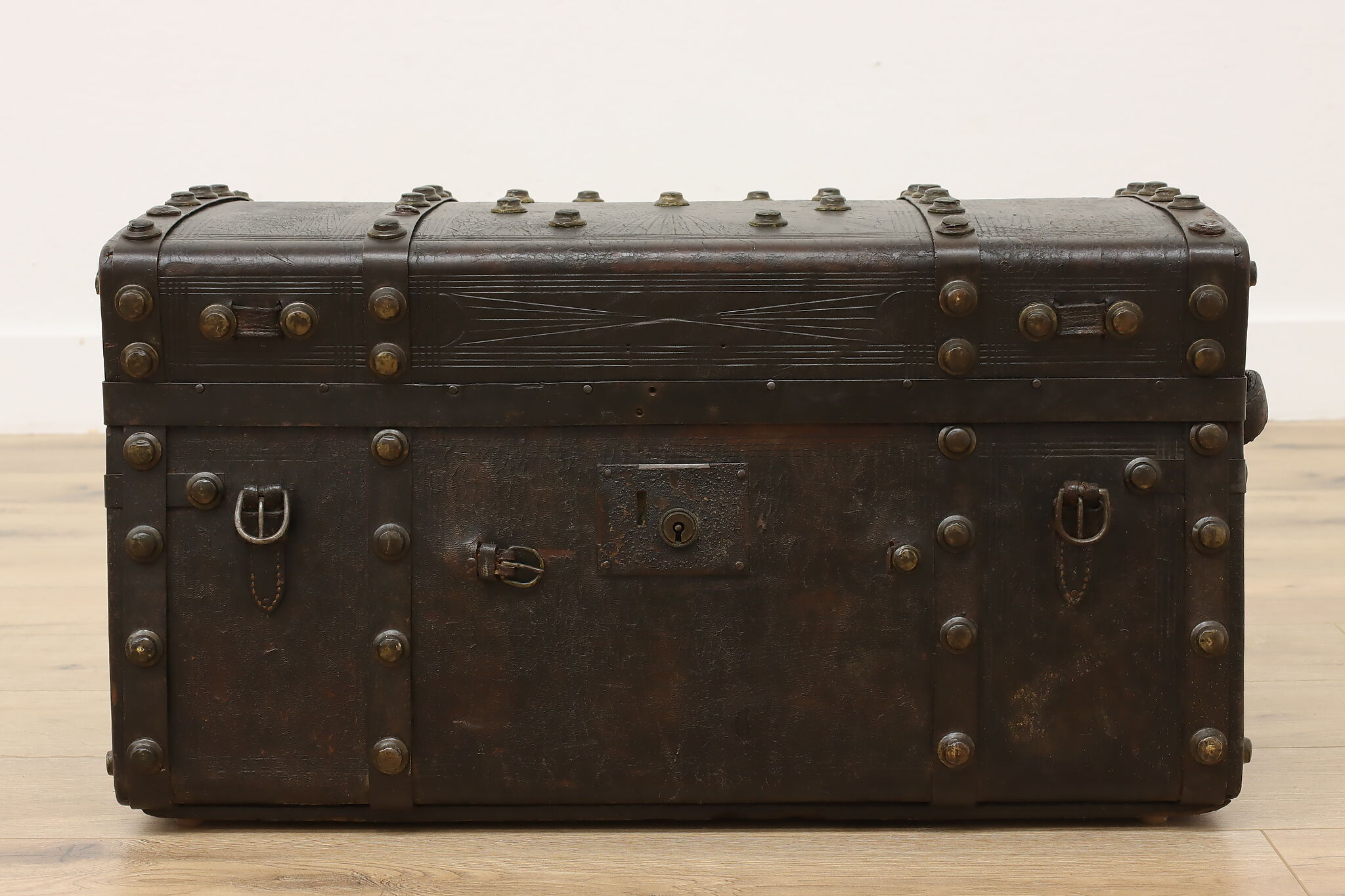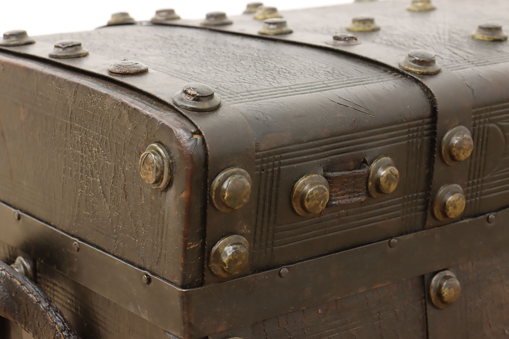 This fabulous stage coach or steamer trunk has a unique interior pocket and door on the lid for storing valuables!