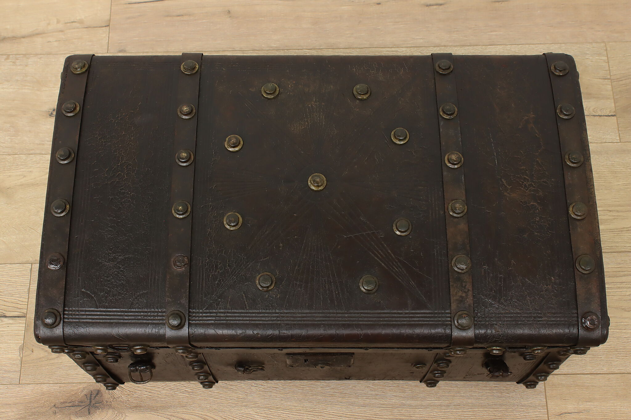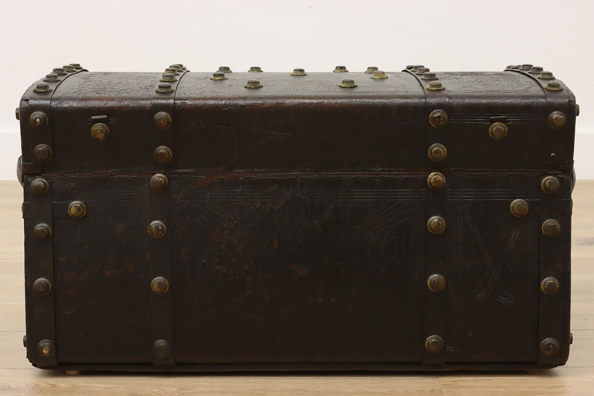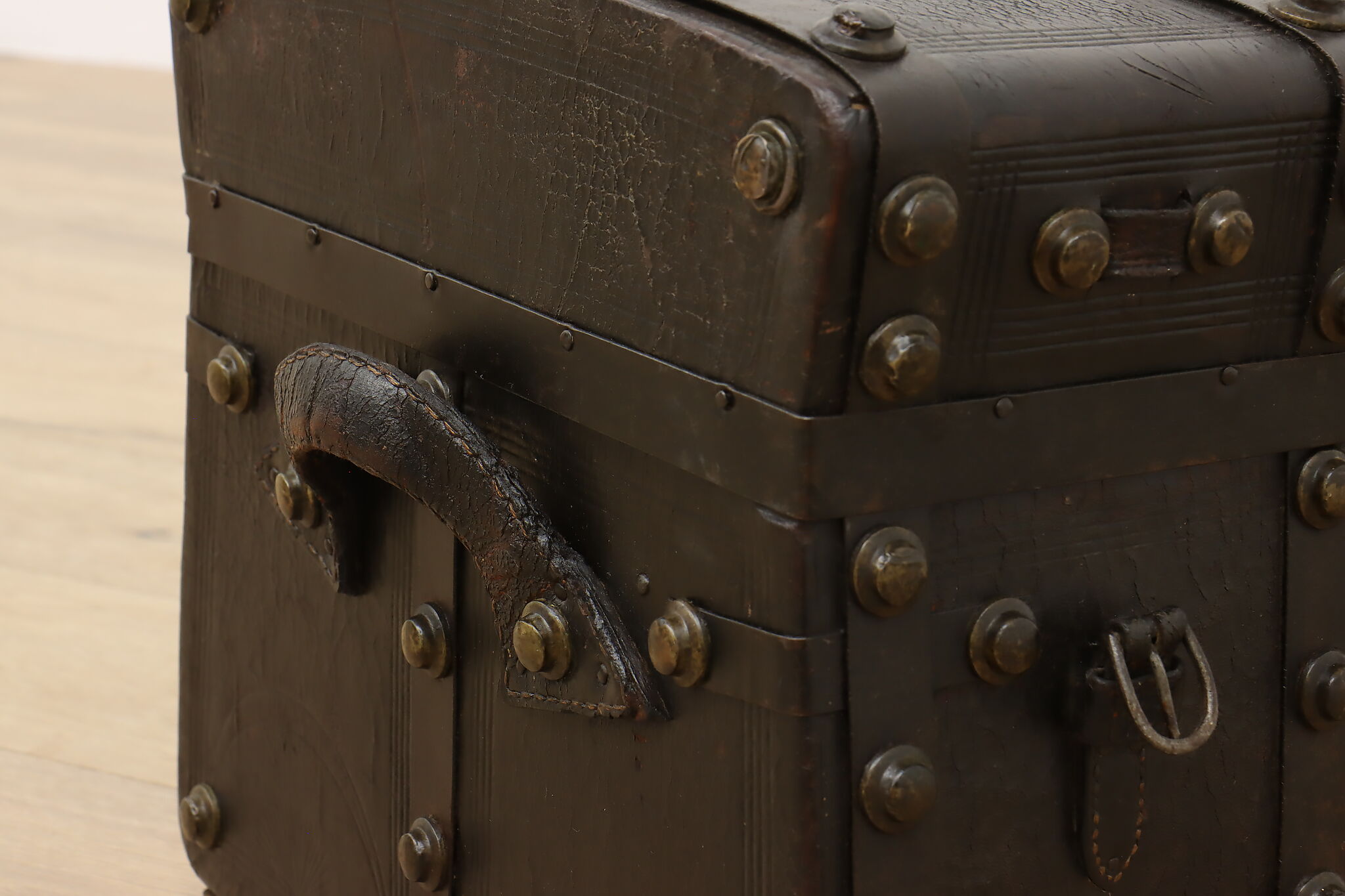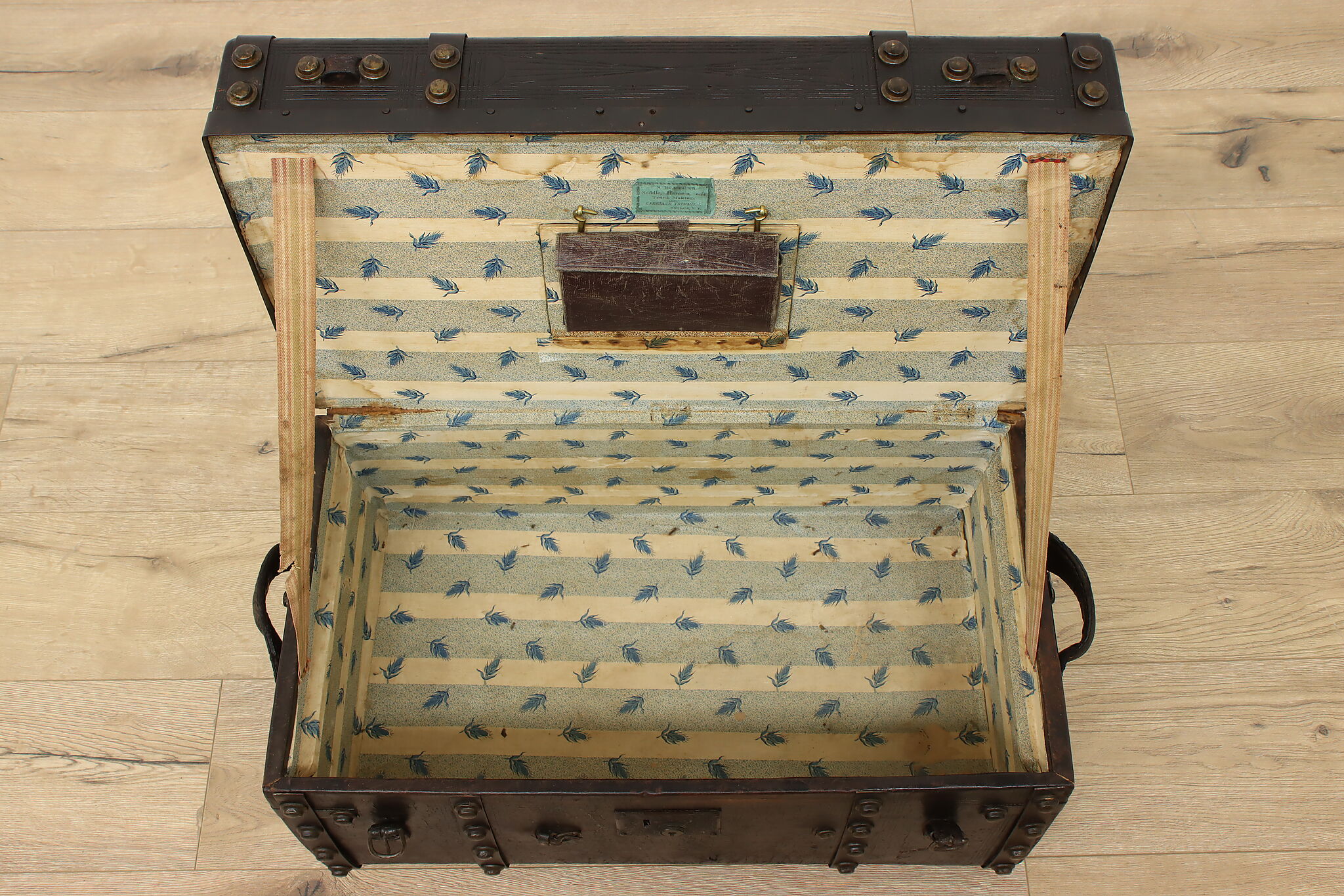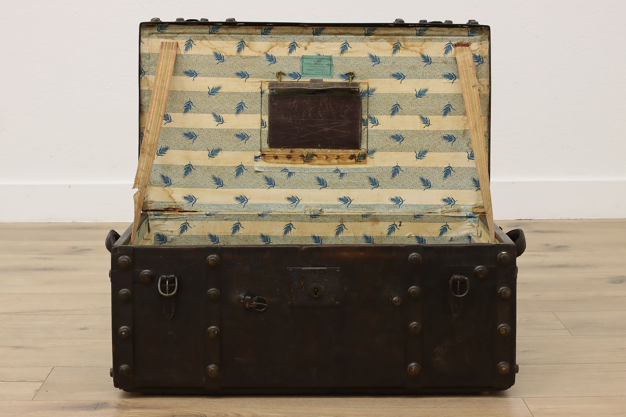 This fabulous stage coach or steamer trunk has a unique interior pocket and door on the lid for storing valuables!
