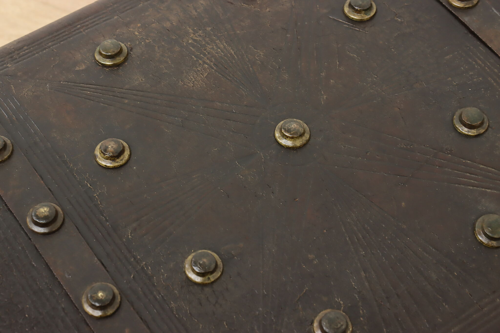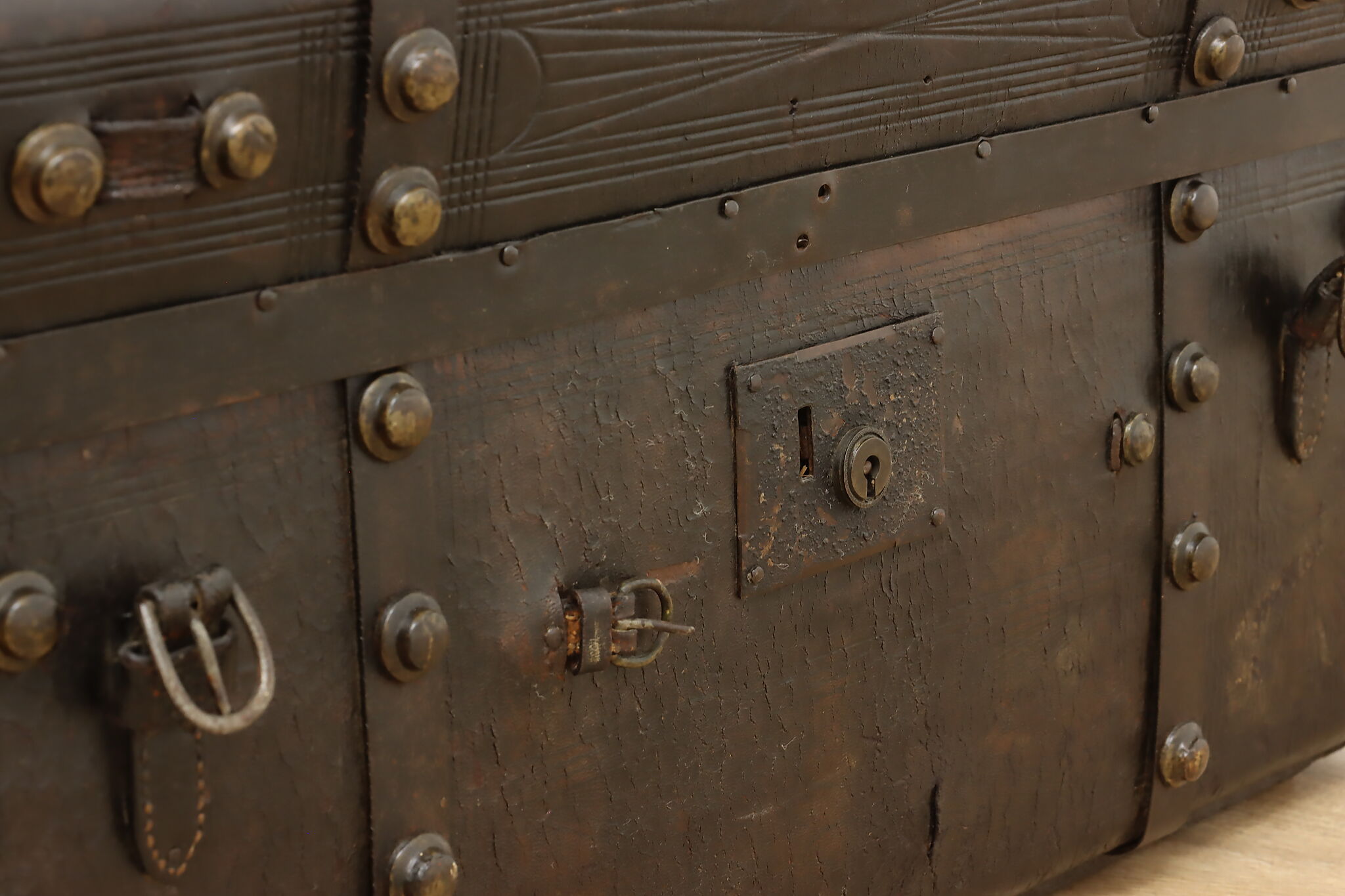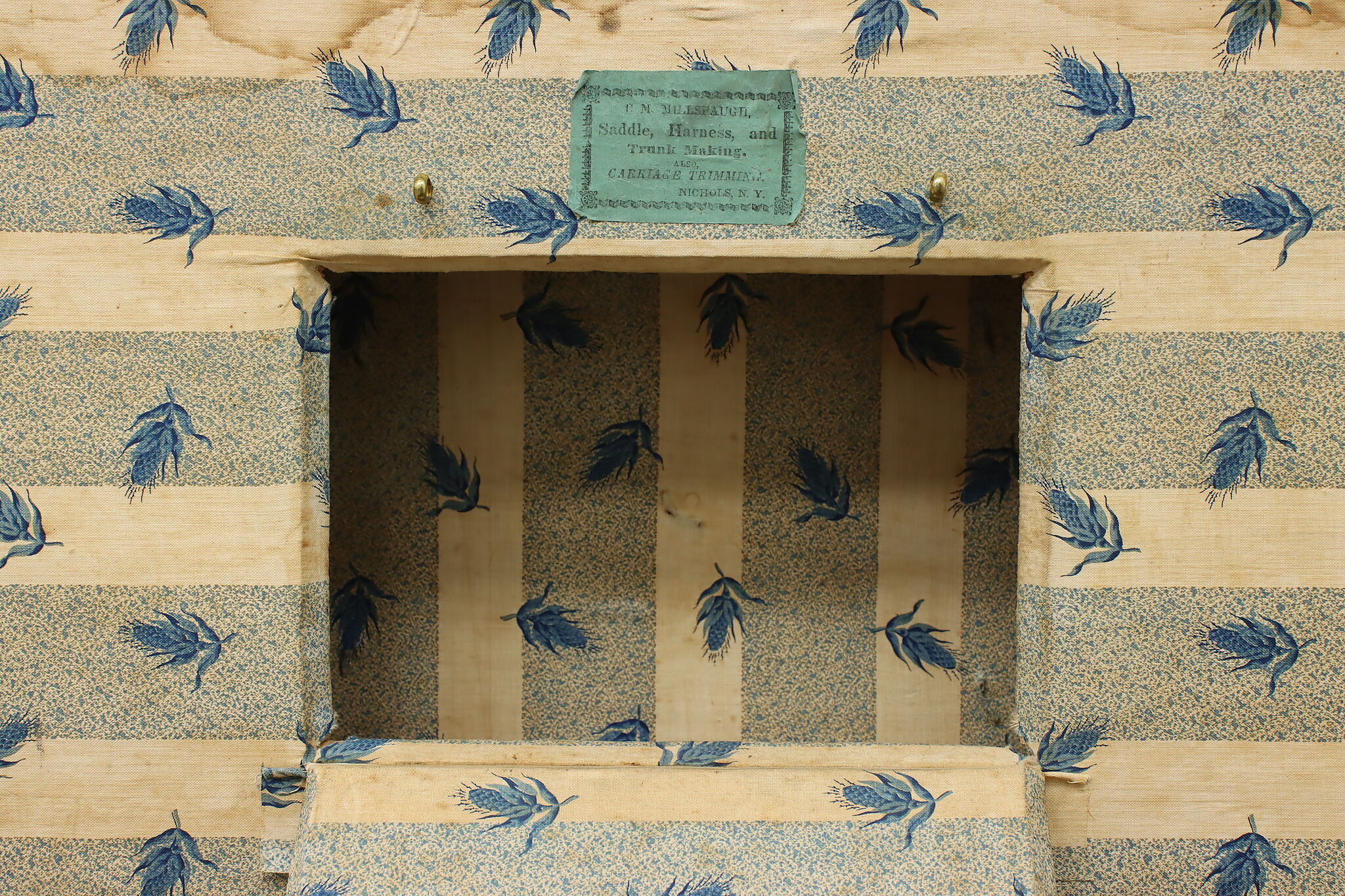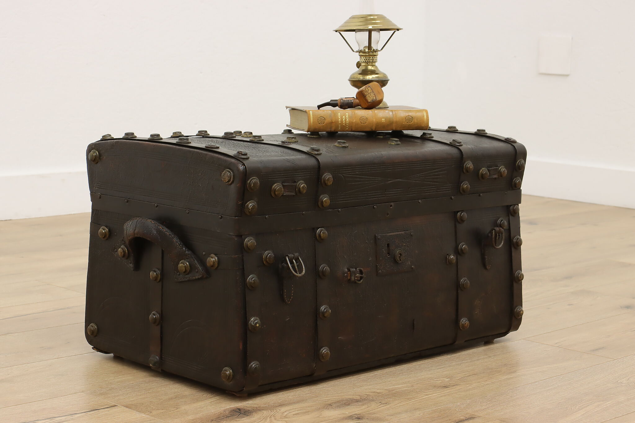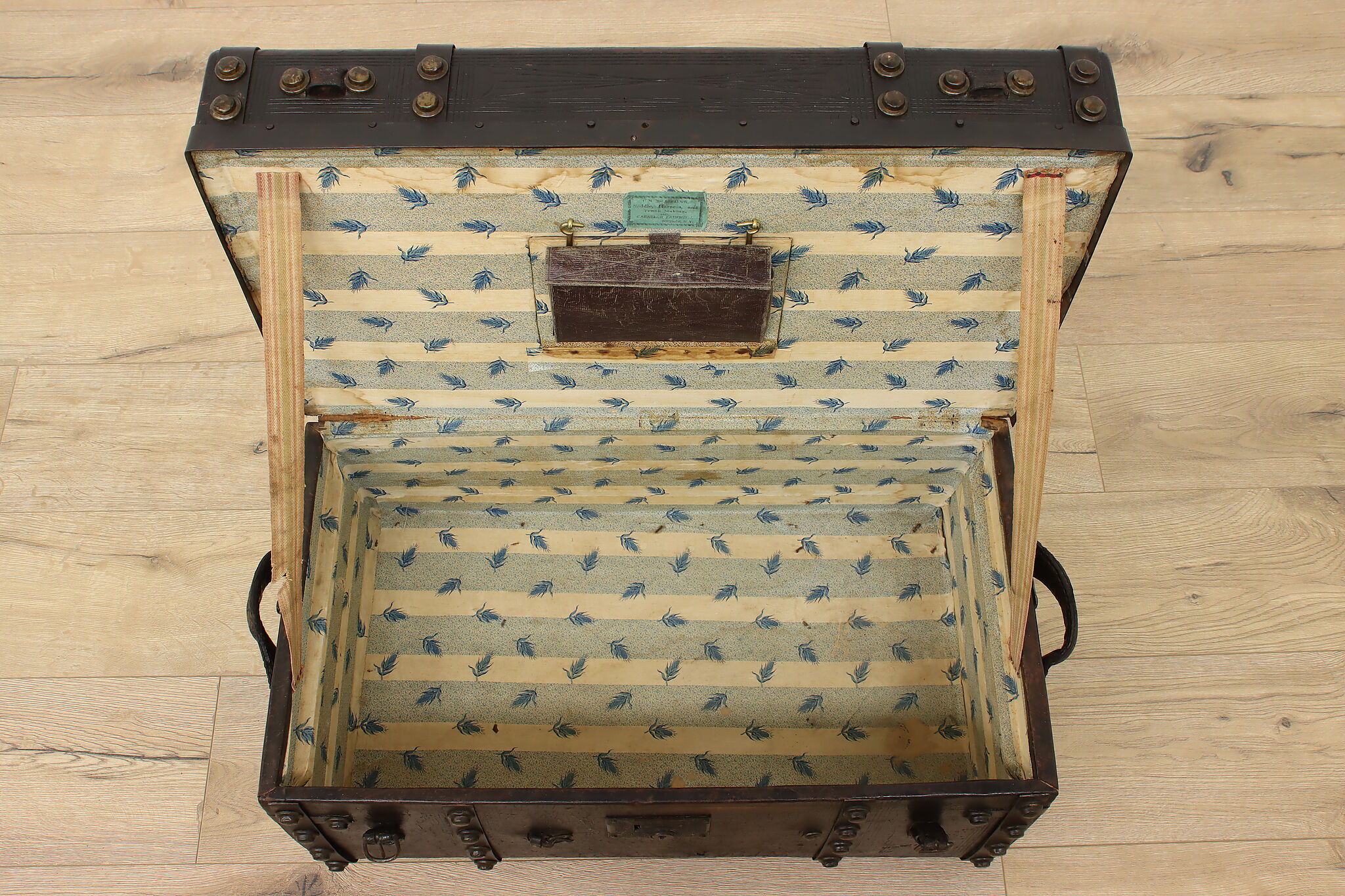This fabulous stage coach or steamer trunk has a unique interior pocket and door on the lid for storing valuables!