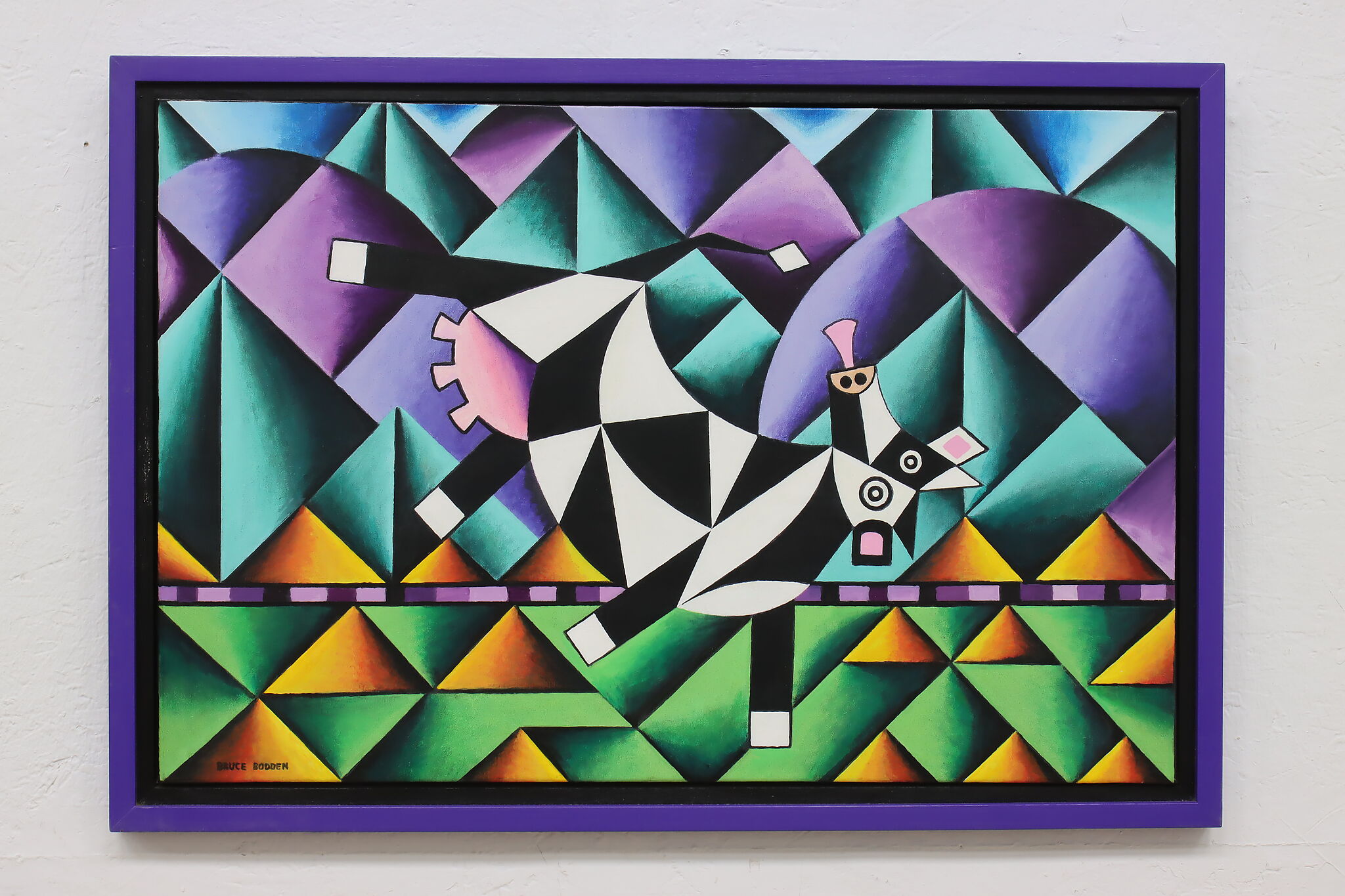This fantastic print by Wisconsin artist, Bruce Bodden, is of a spinning cow appropriately titled "Mad Cow."