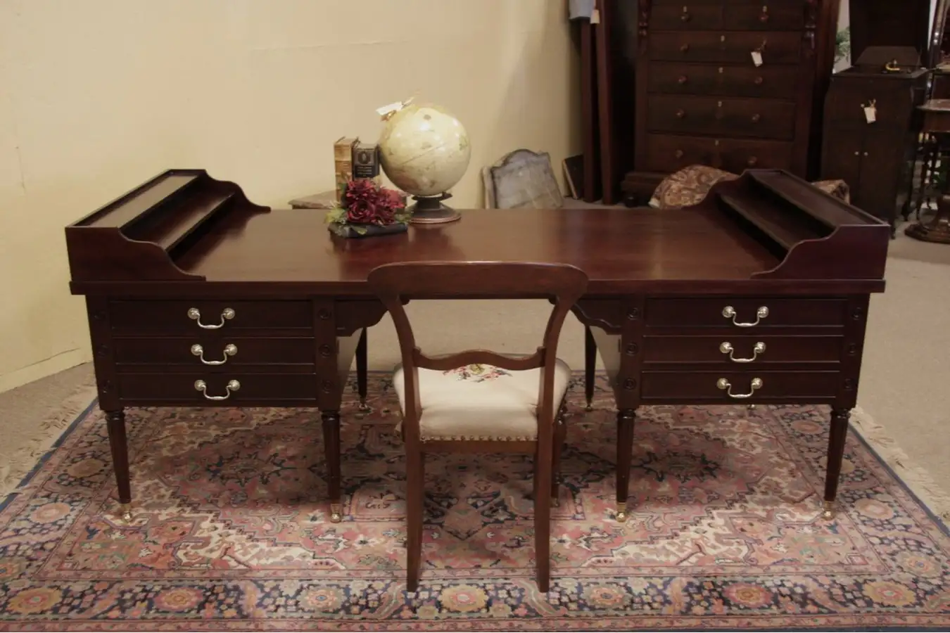 The lustrous finish is superb, and all drawers fit well and slide smoothly. Famous maker "Kittinger" also copied this desk, and one was used by President Franklin Delano Roosevelt.