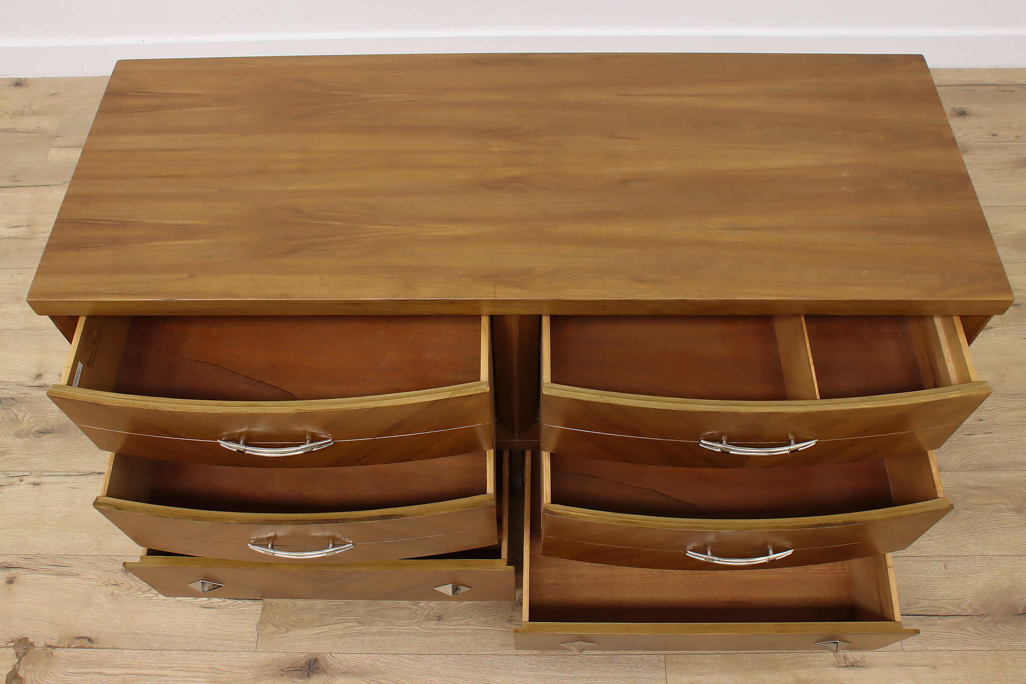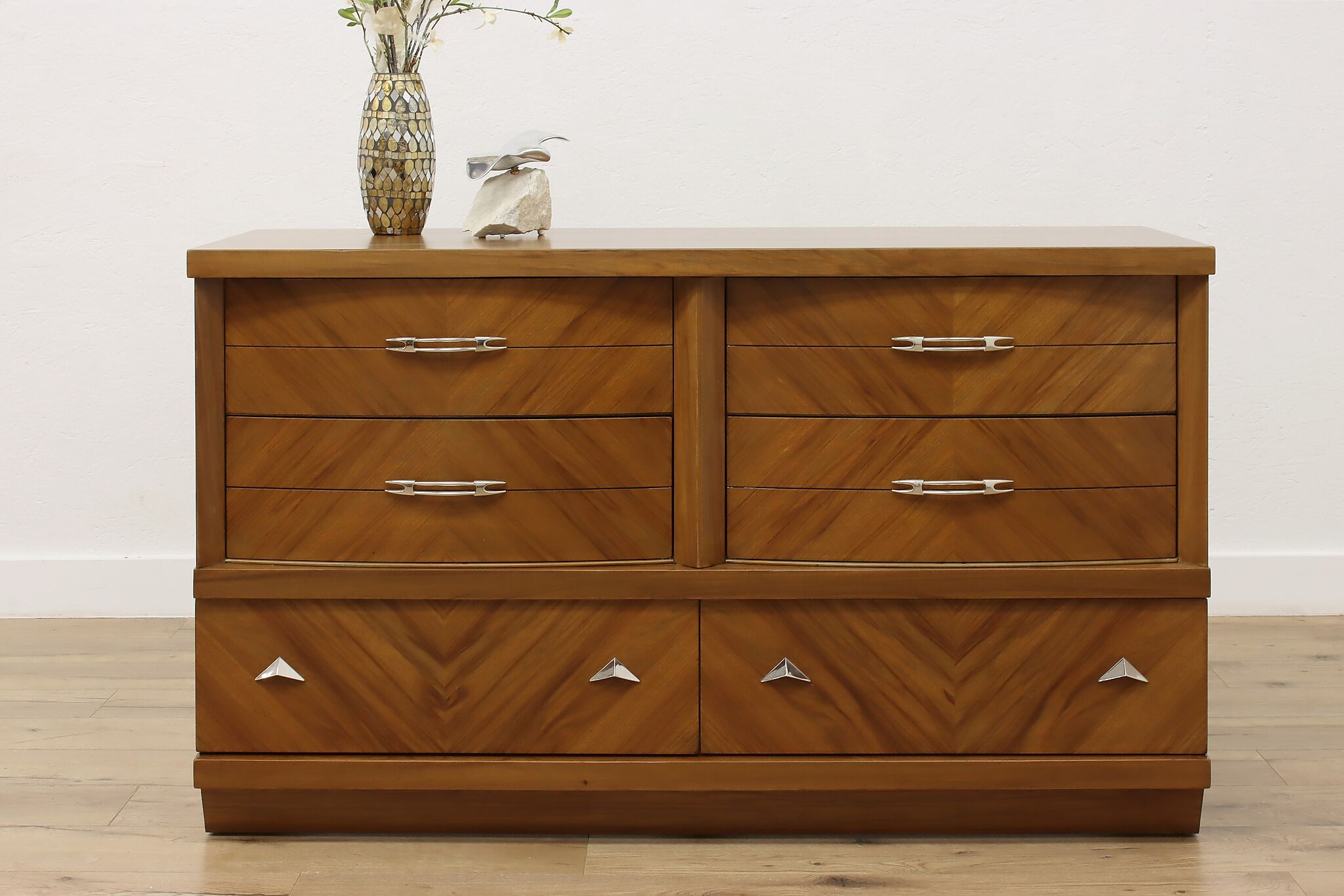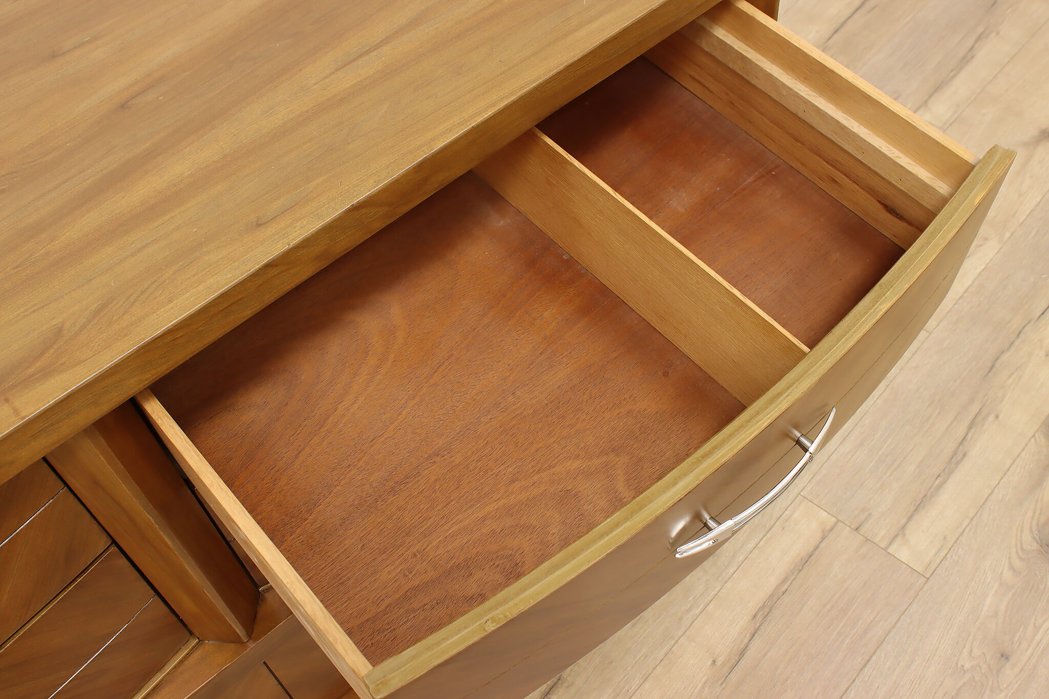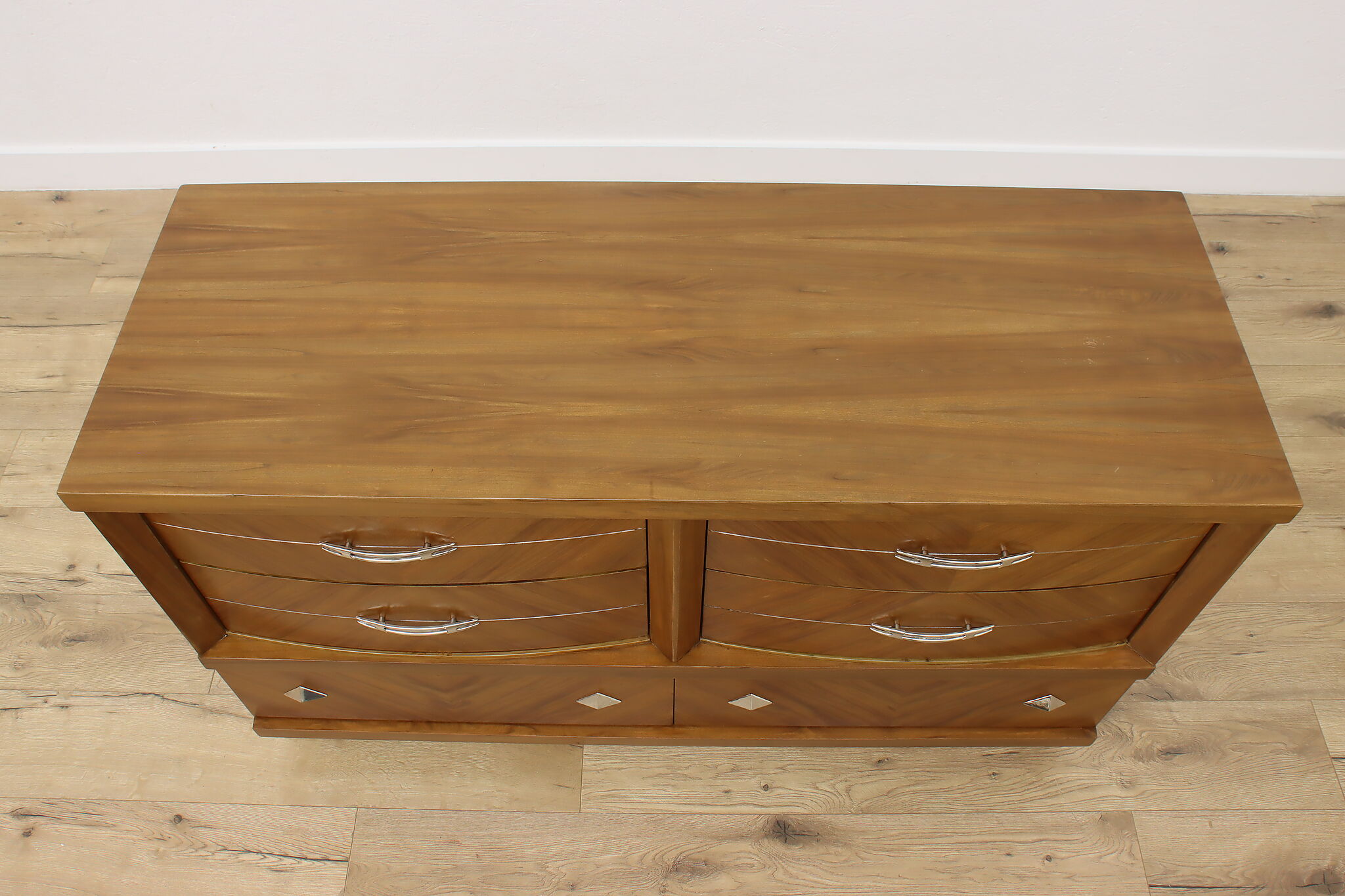 The polished nickel drawer pulls give this low chest or dresser marvelous Midcentury Modern charm.