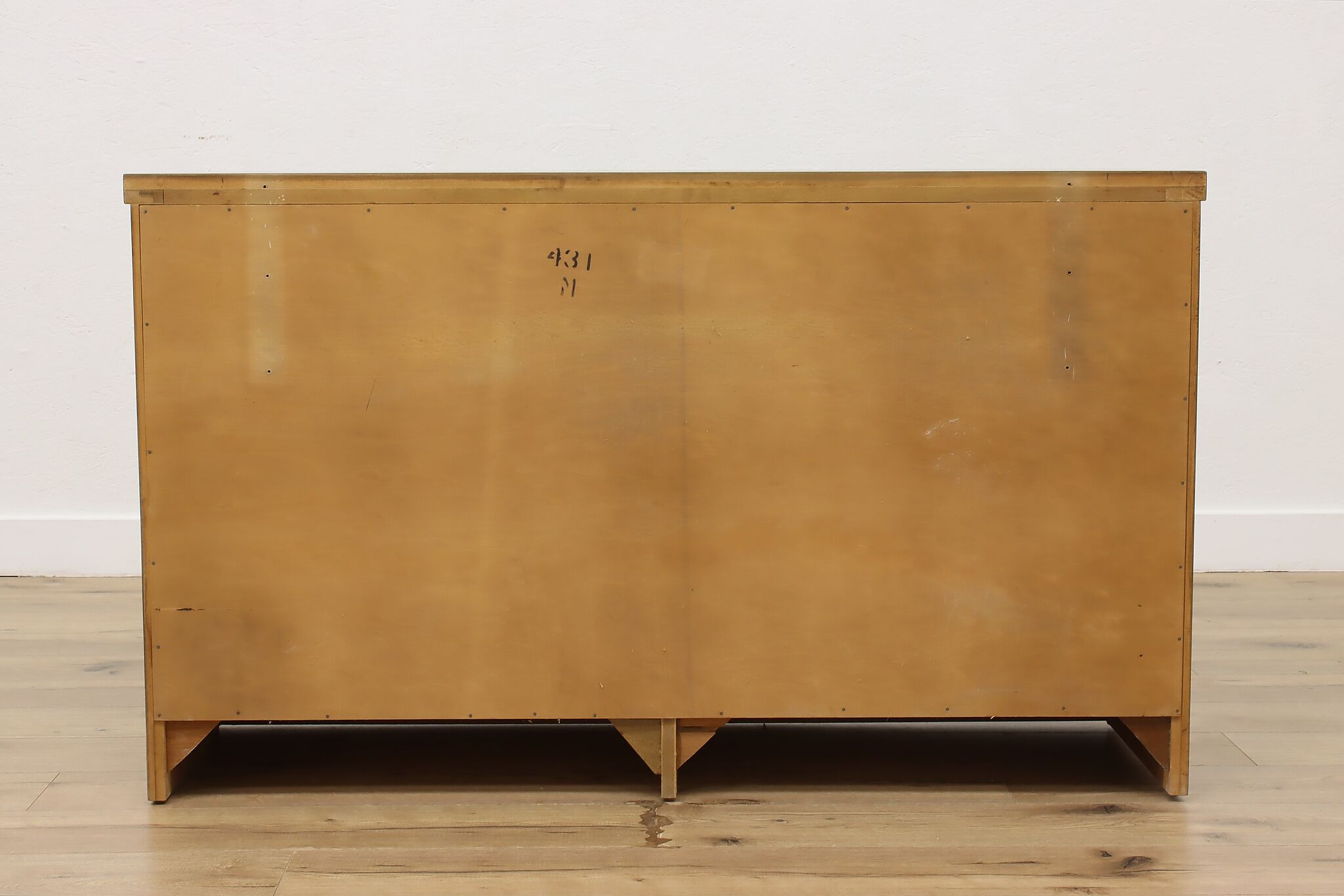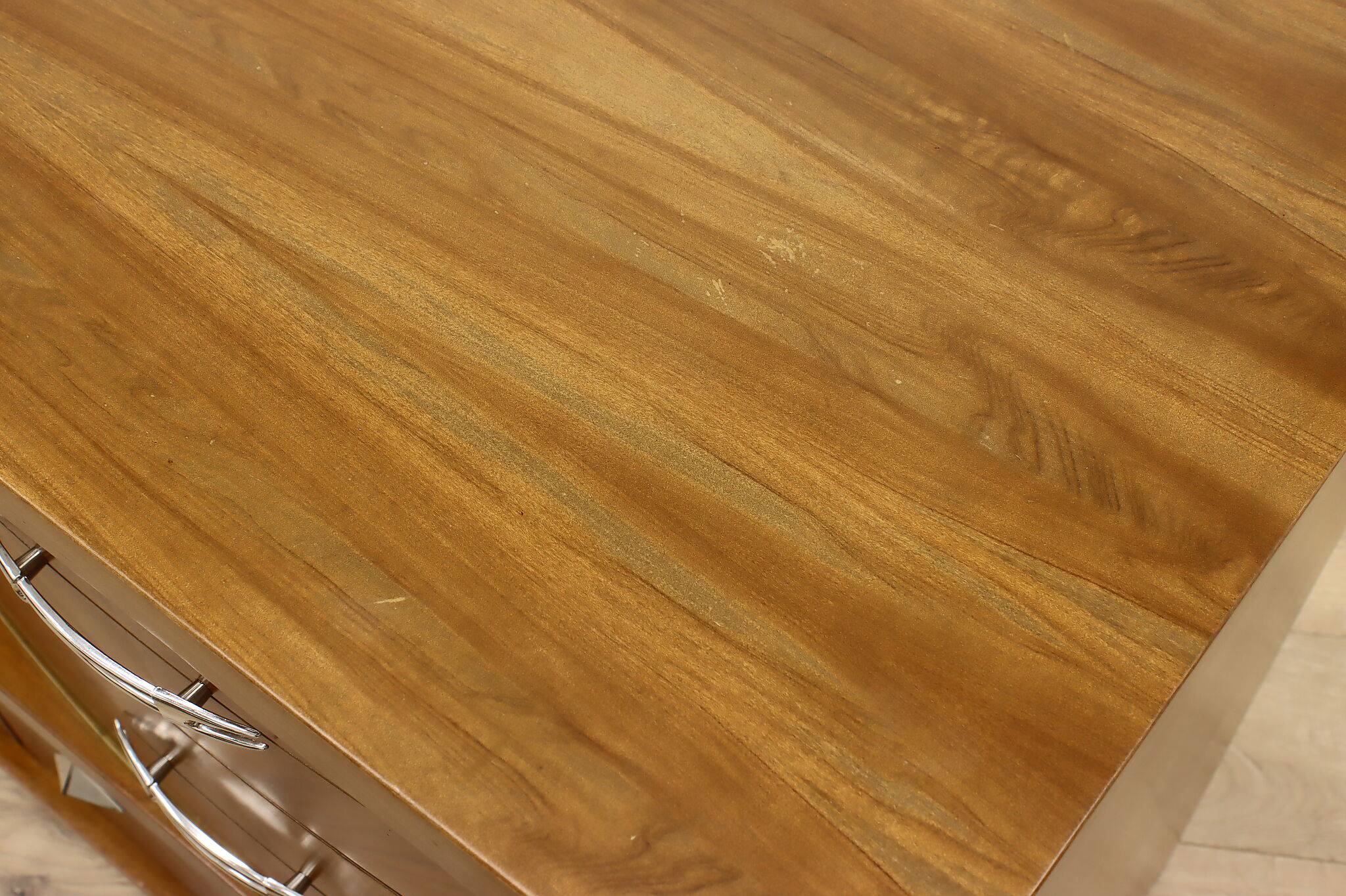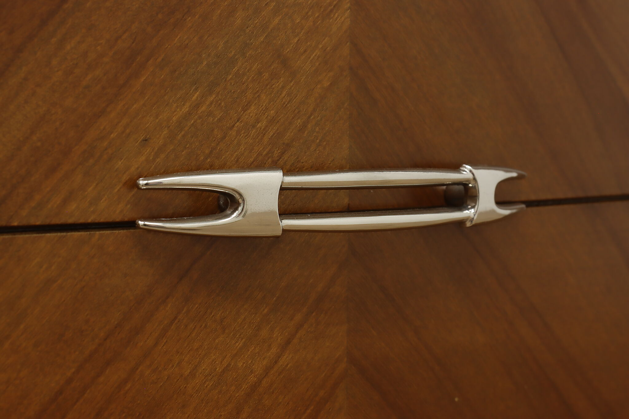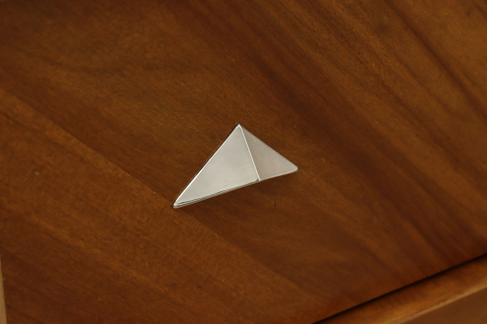The polished nickel drawer pulls give this low chest or dresser marvelous Midcentury Modern charm.