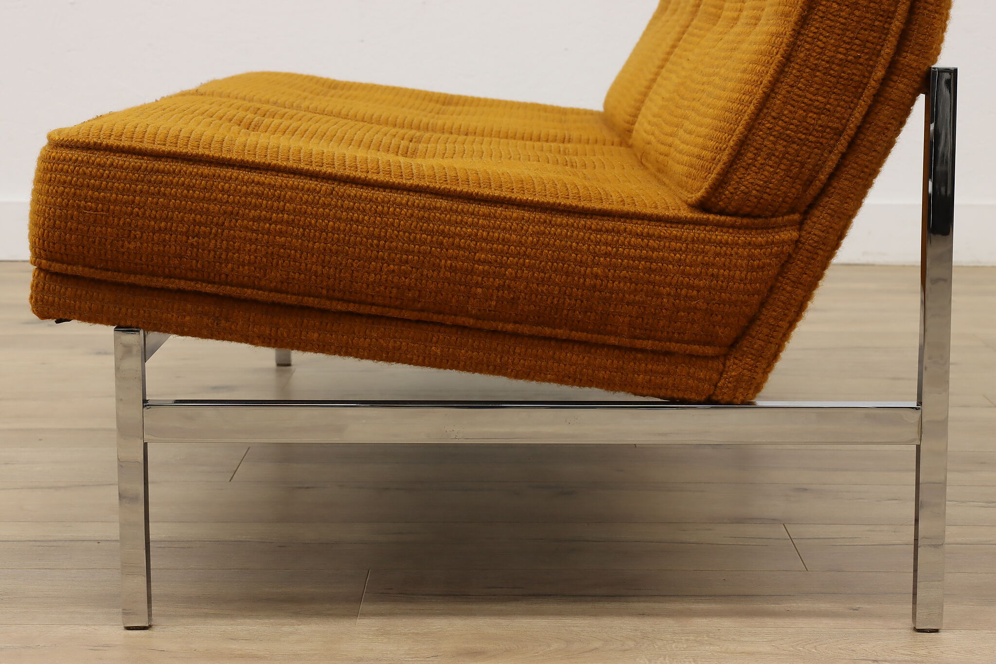 A gorgeous Midcentury Modern loveseat or small sofa has original orange upholstery.