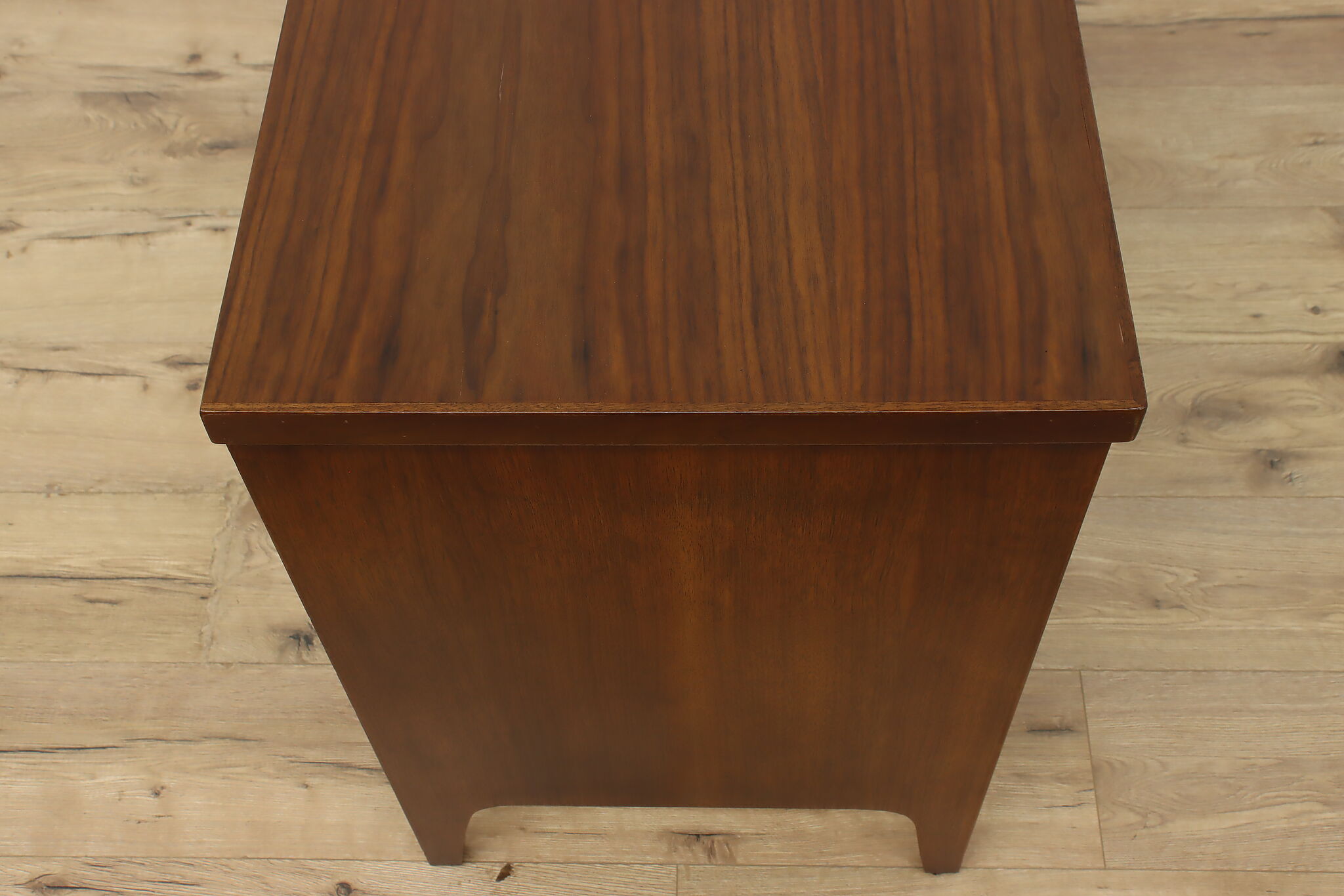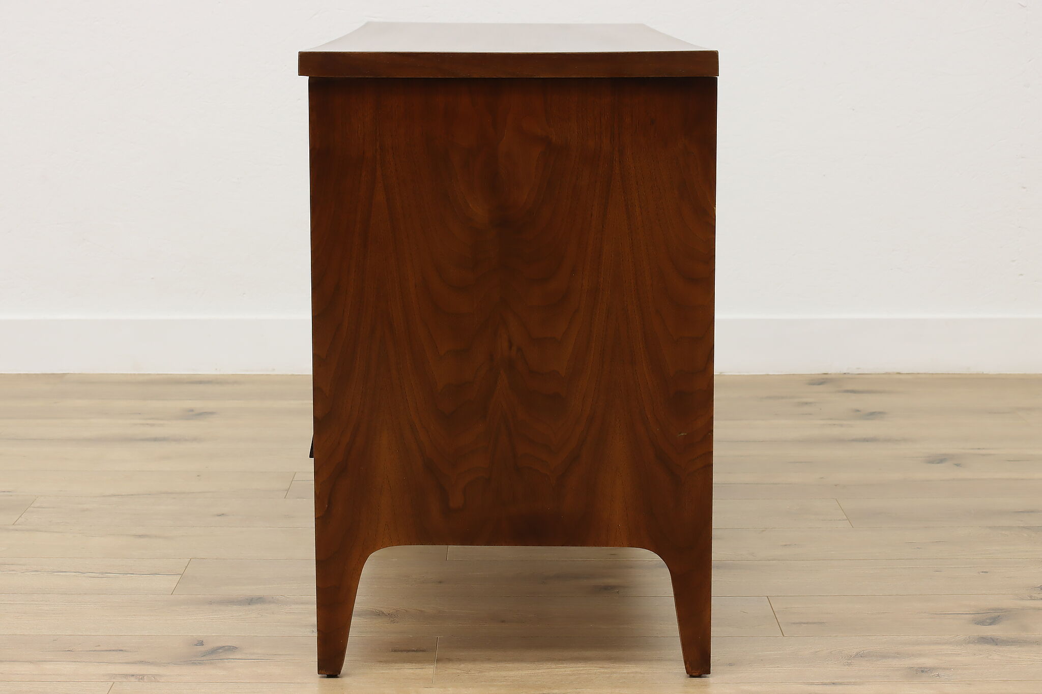 A Midcentury Modern six drawer chest or dresser has slanted drawer fronts.