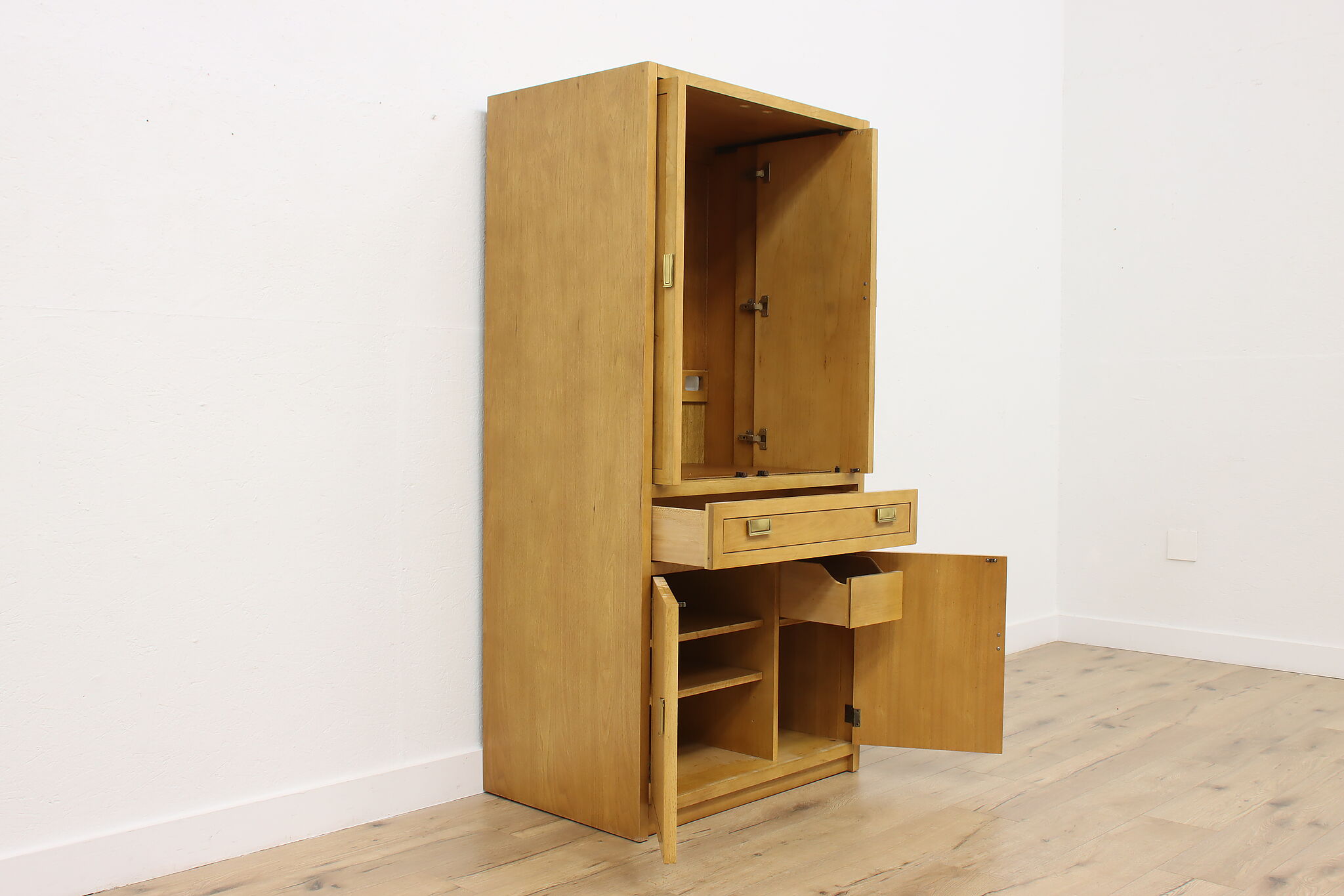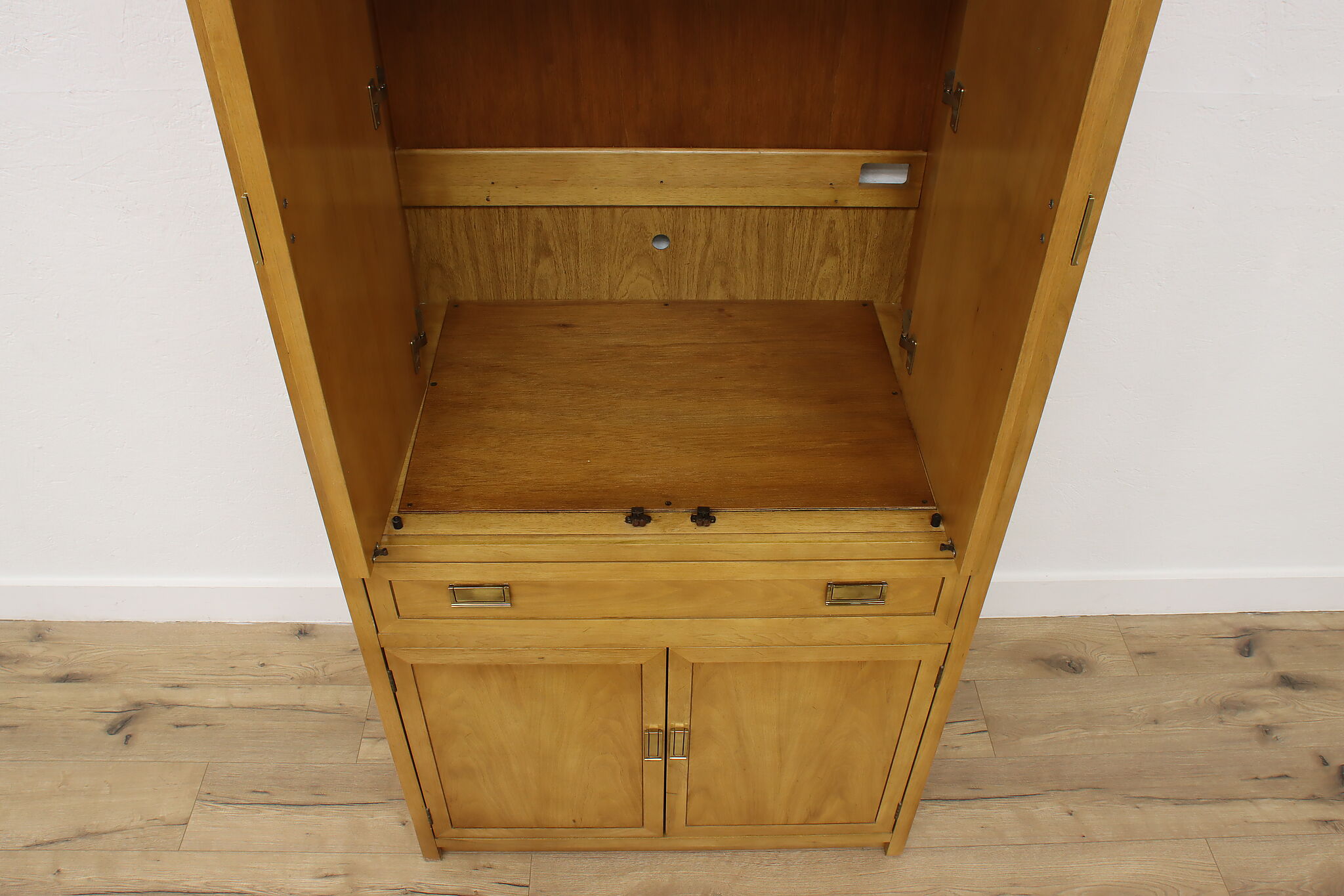 Once used to store a TV in a bedroom, this armoire or closet is an excellent option for those looking for a beautiful storage solution.