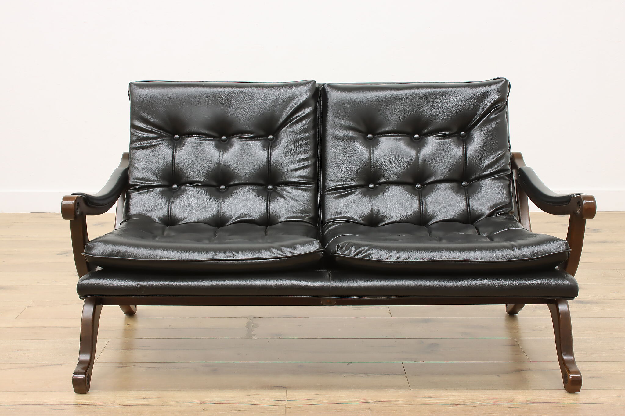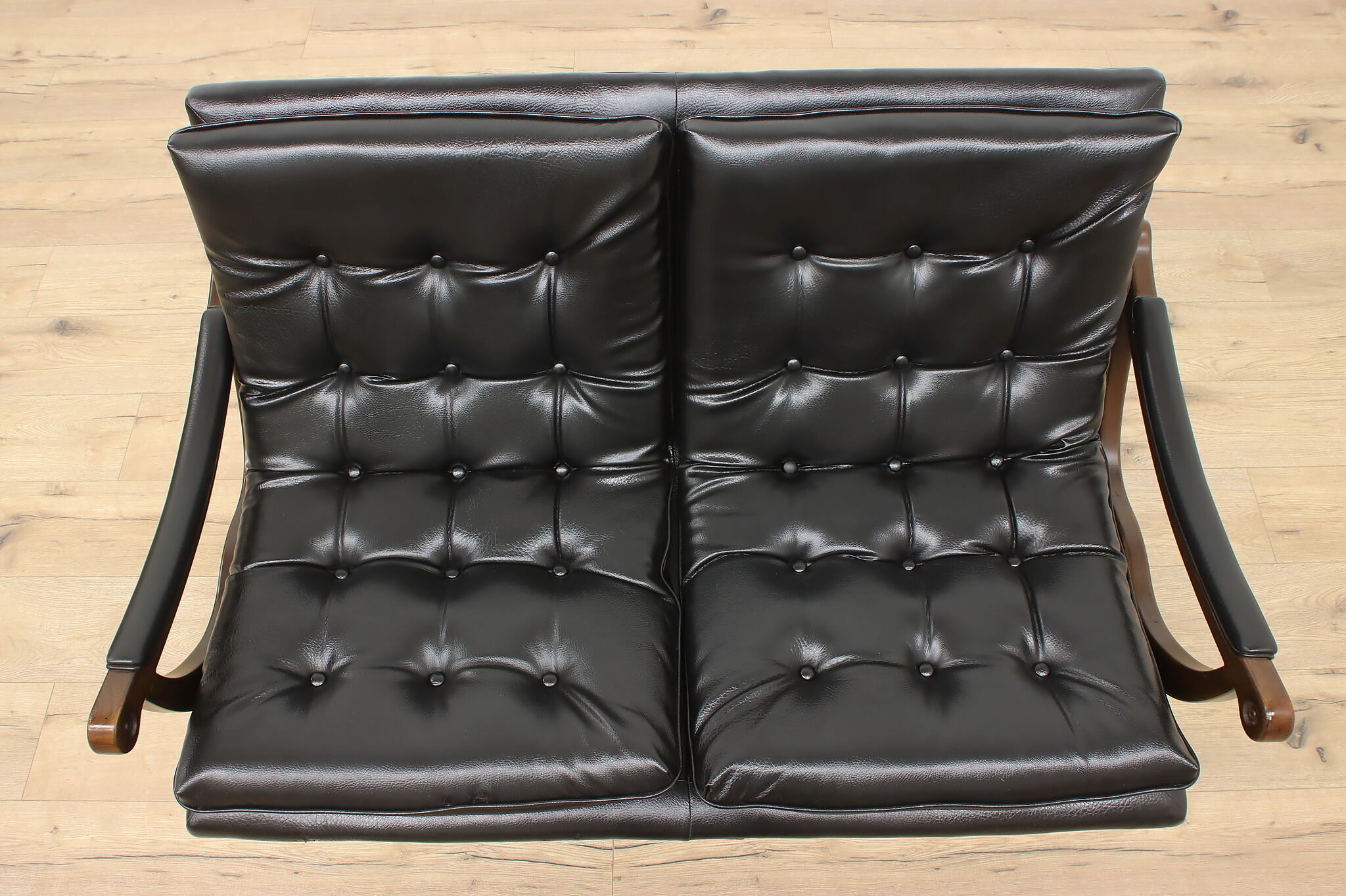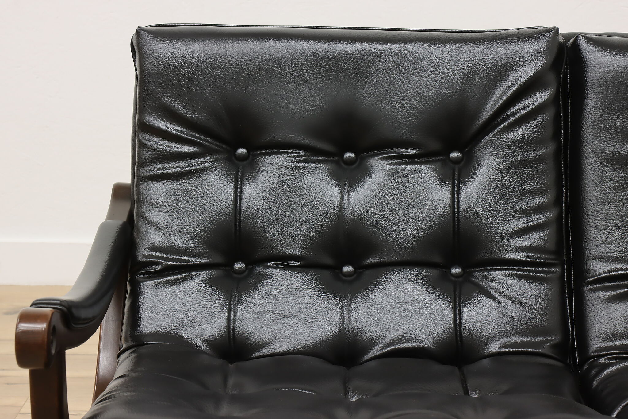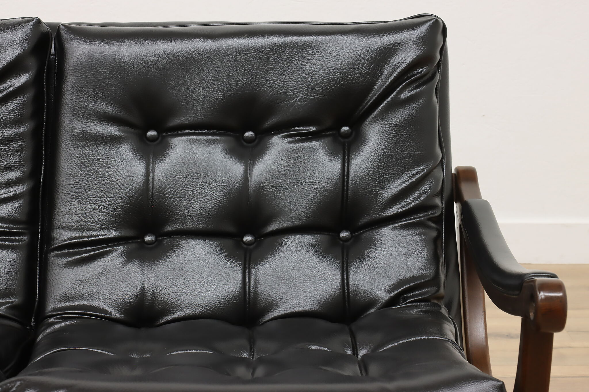 This fantastic Midcentury Modern loveseat or settee has midnight black tufted vinyl upholstery for a sleek look.