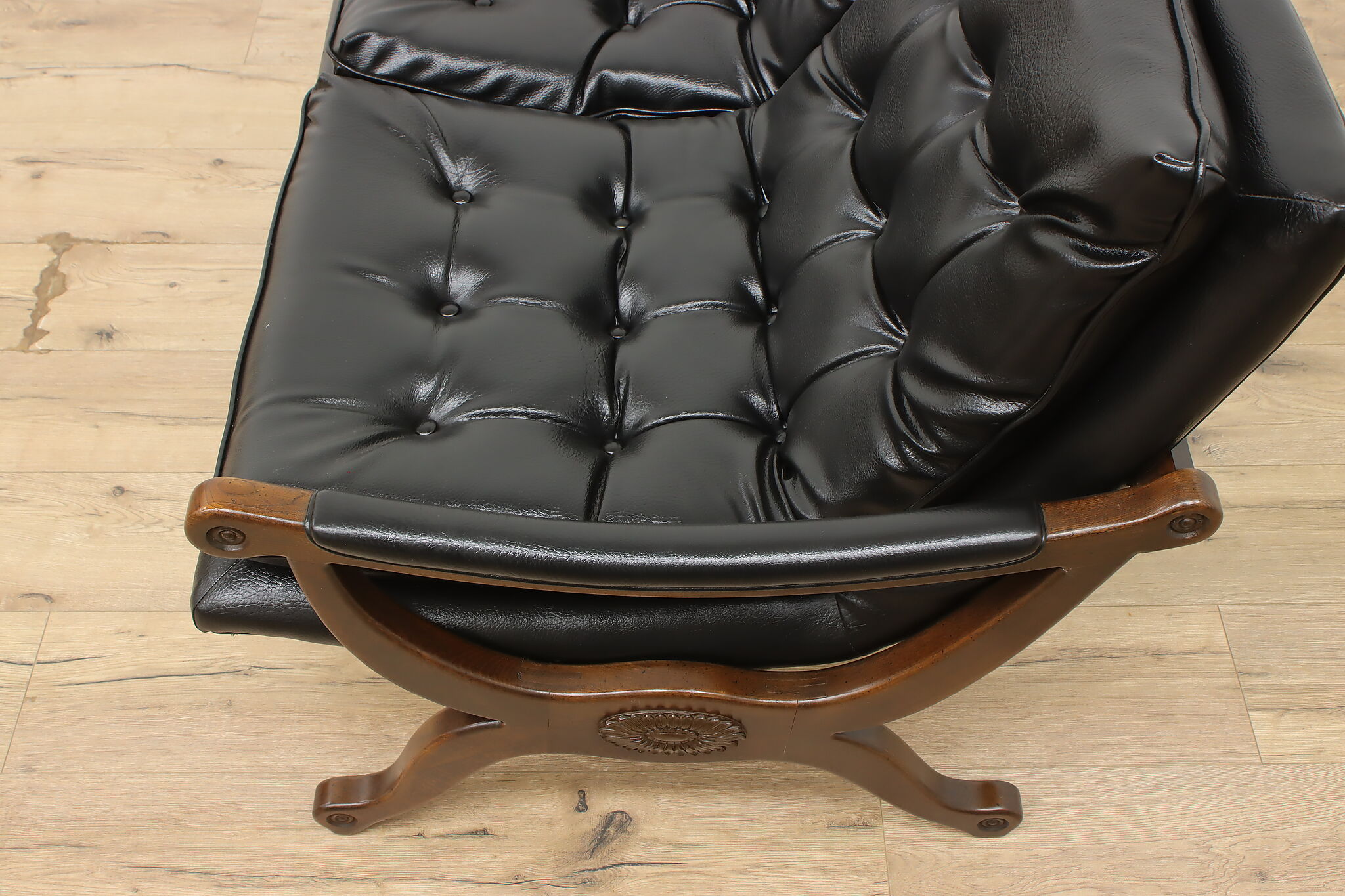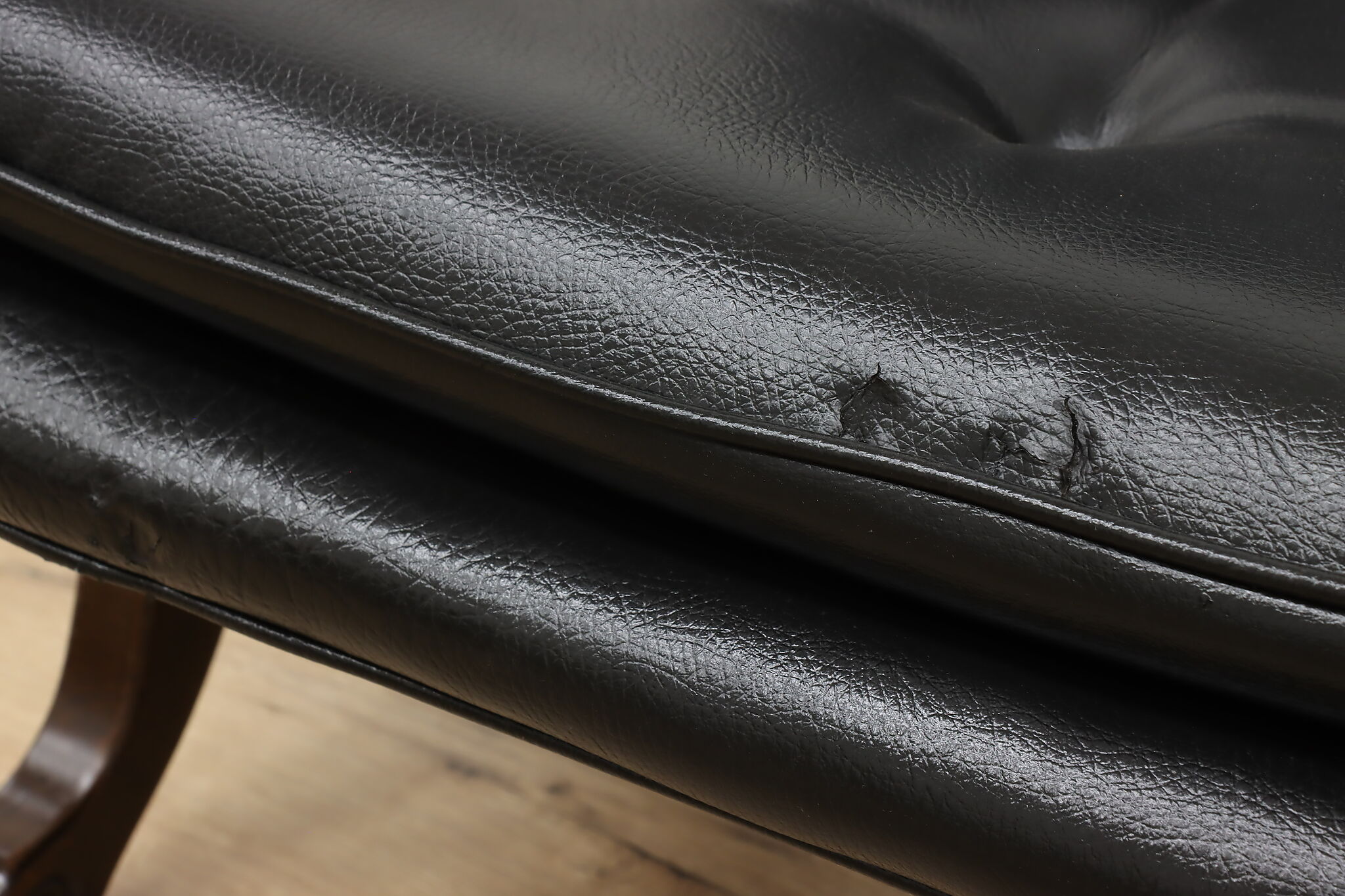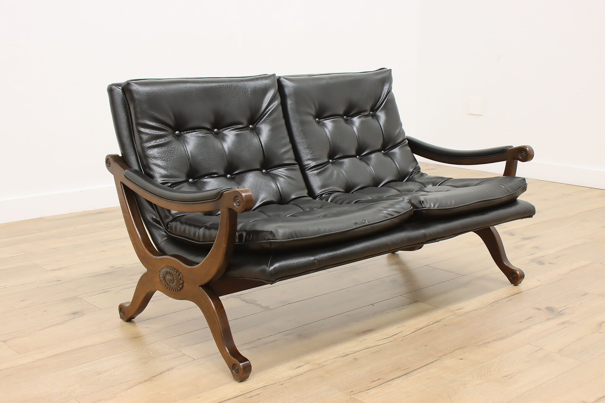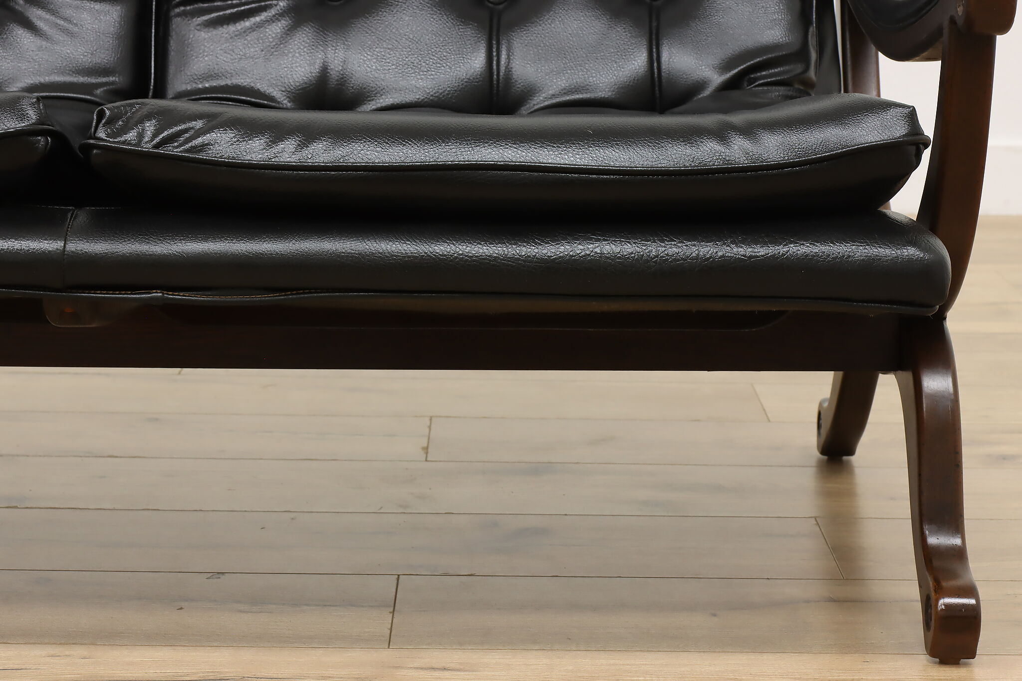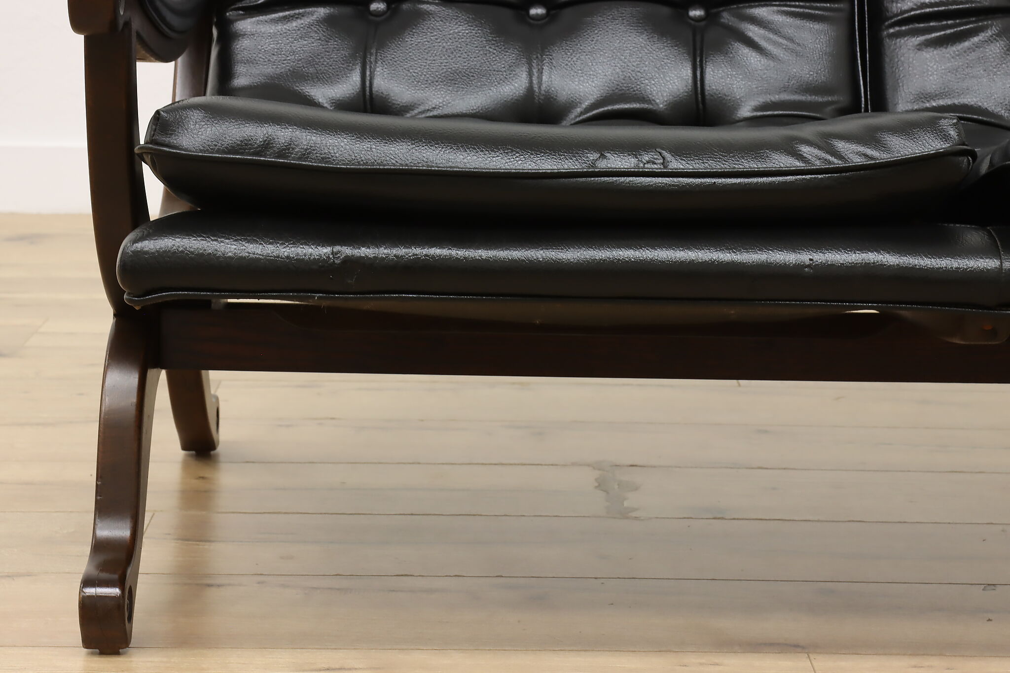 This fantastic Midcentury Modern loveseat or settee has midnight black tufted vinyl upholstery for a sleek look.