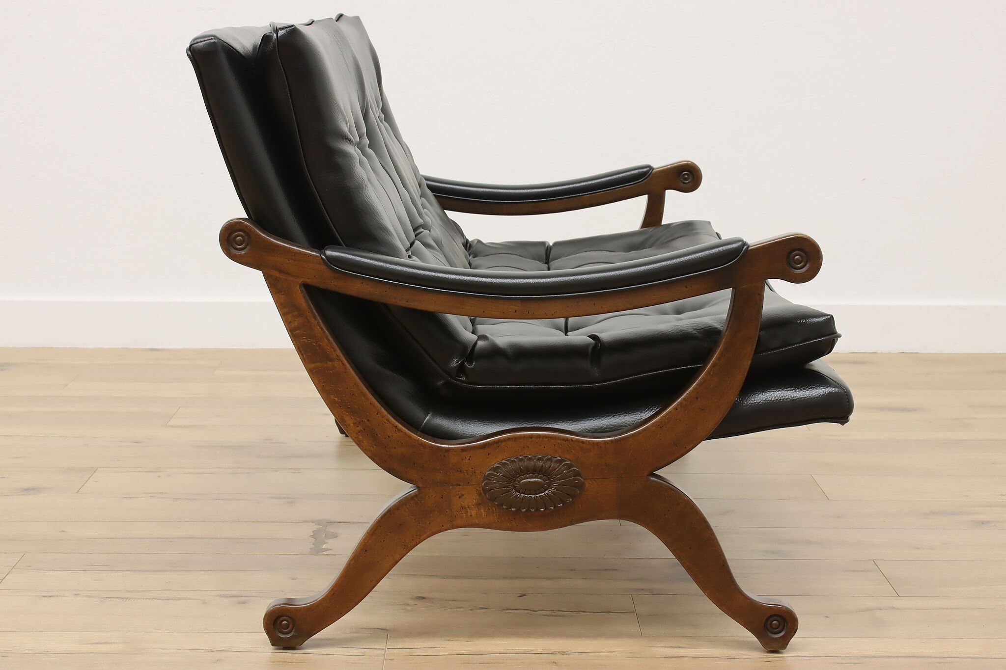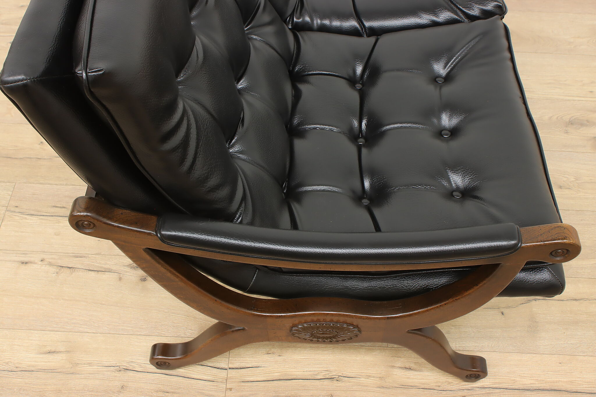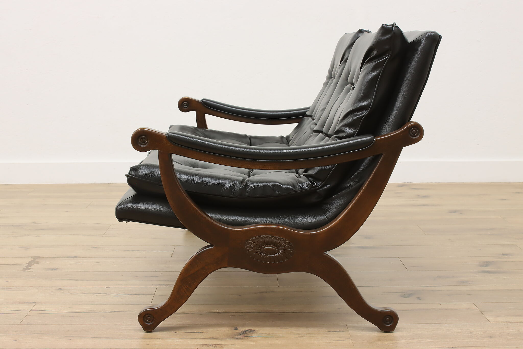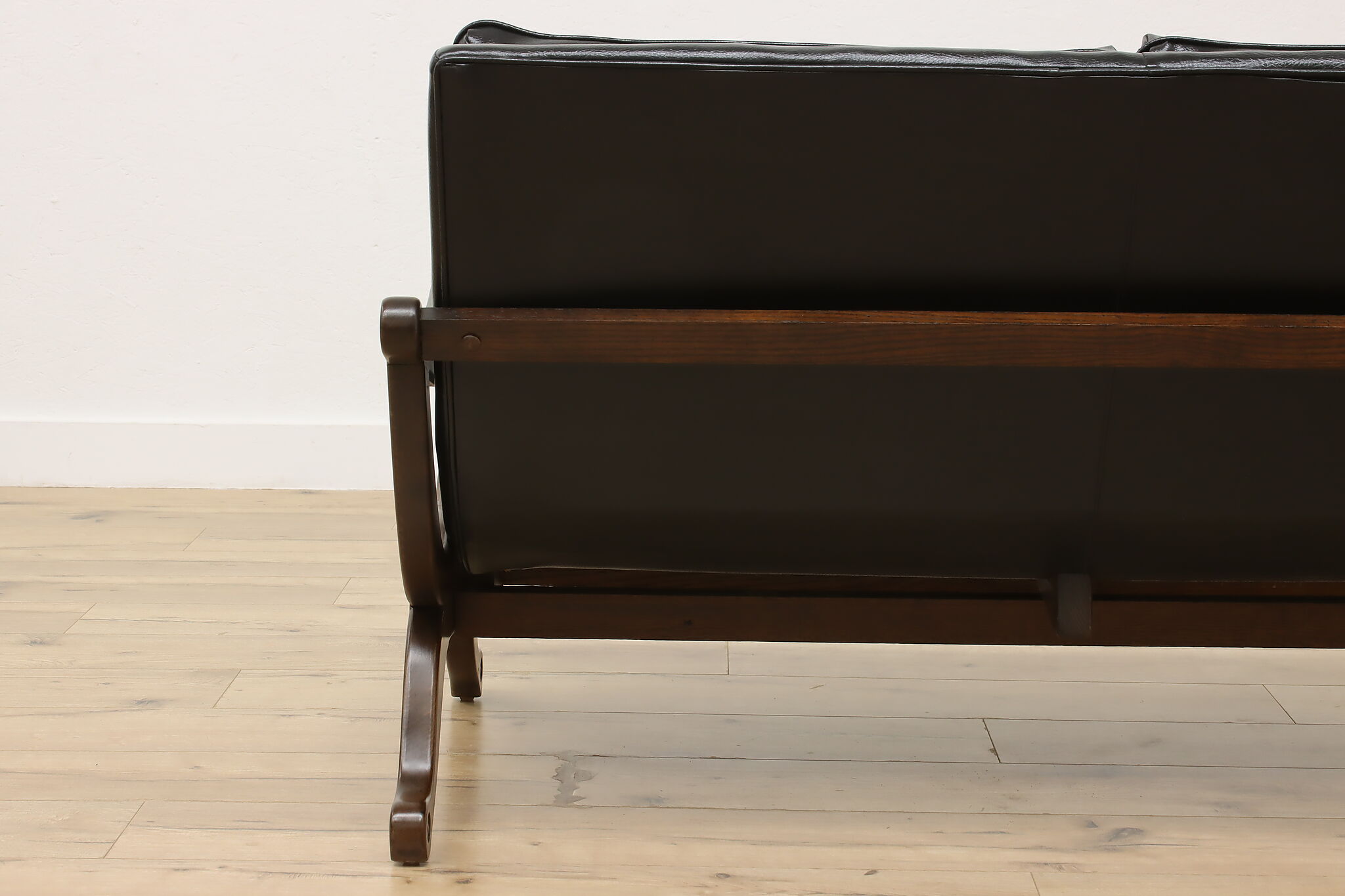 This fantastic Midcentury Modern loveseat or settee has midnight black tufted vinyl upholstery for a sleek look.