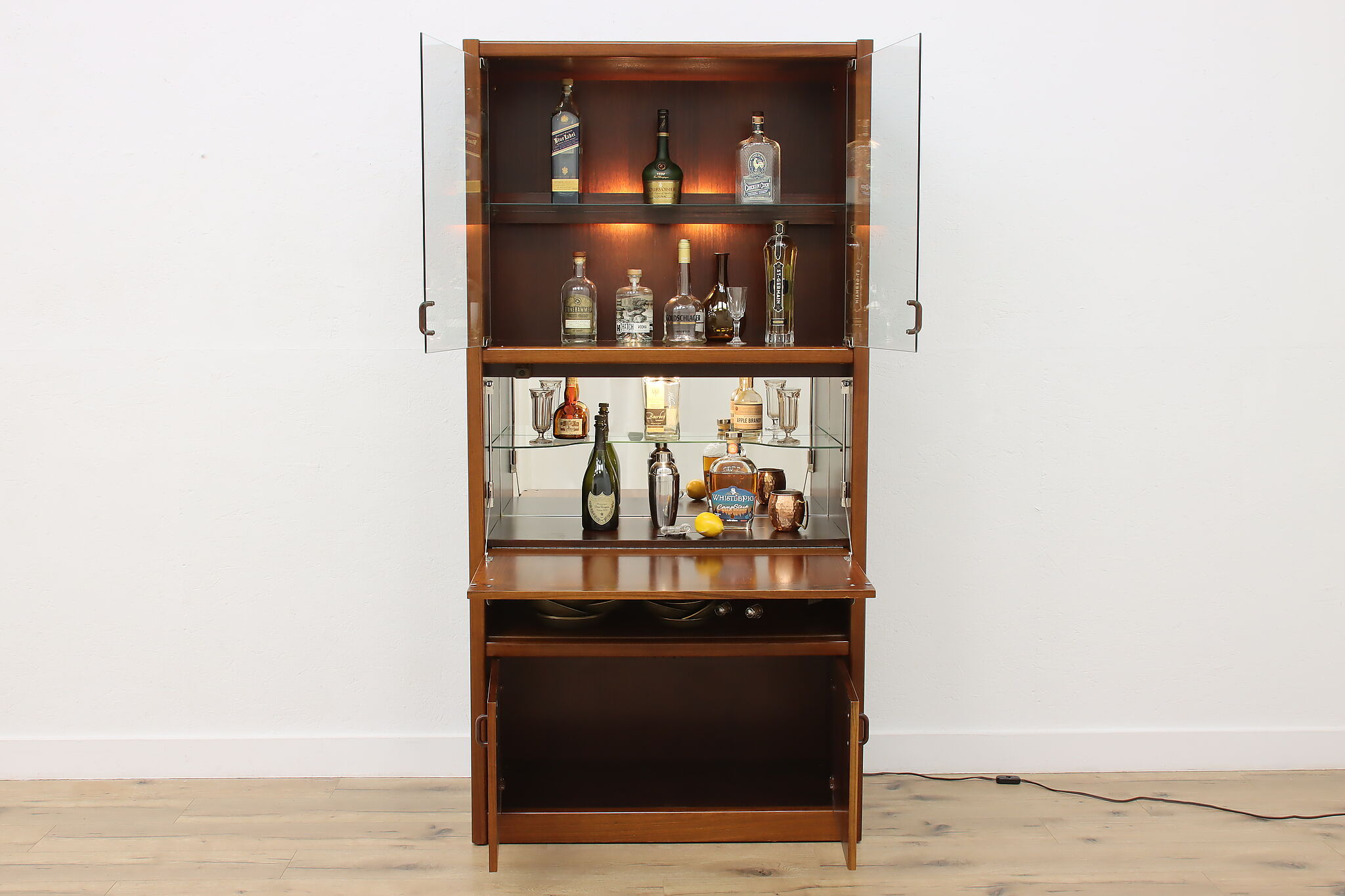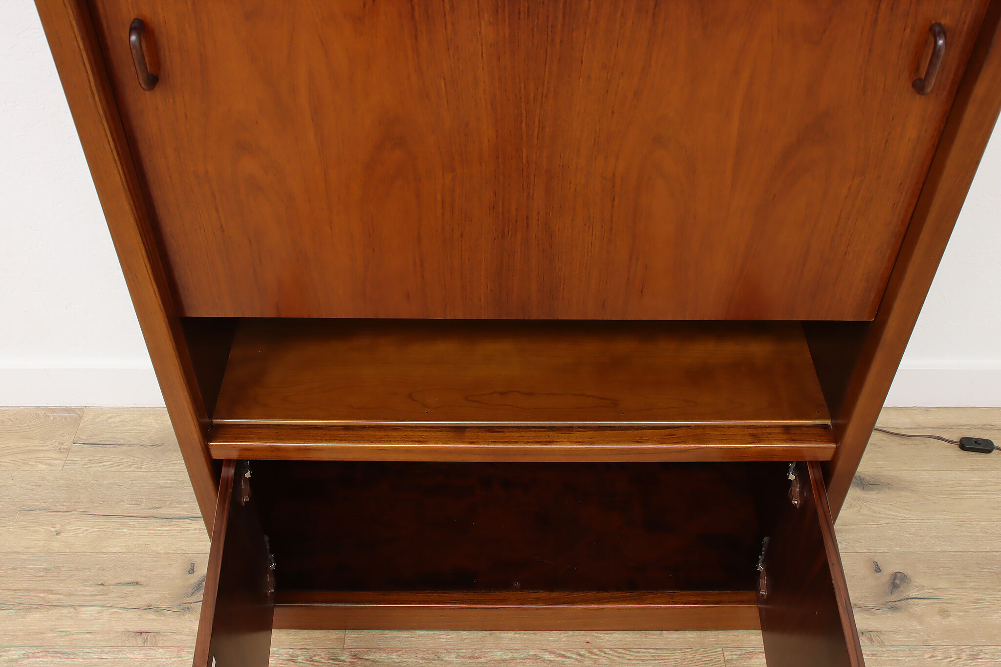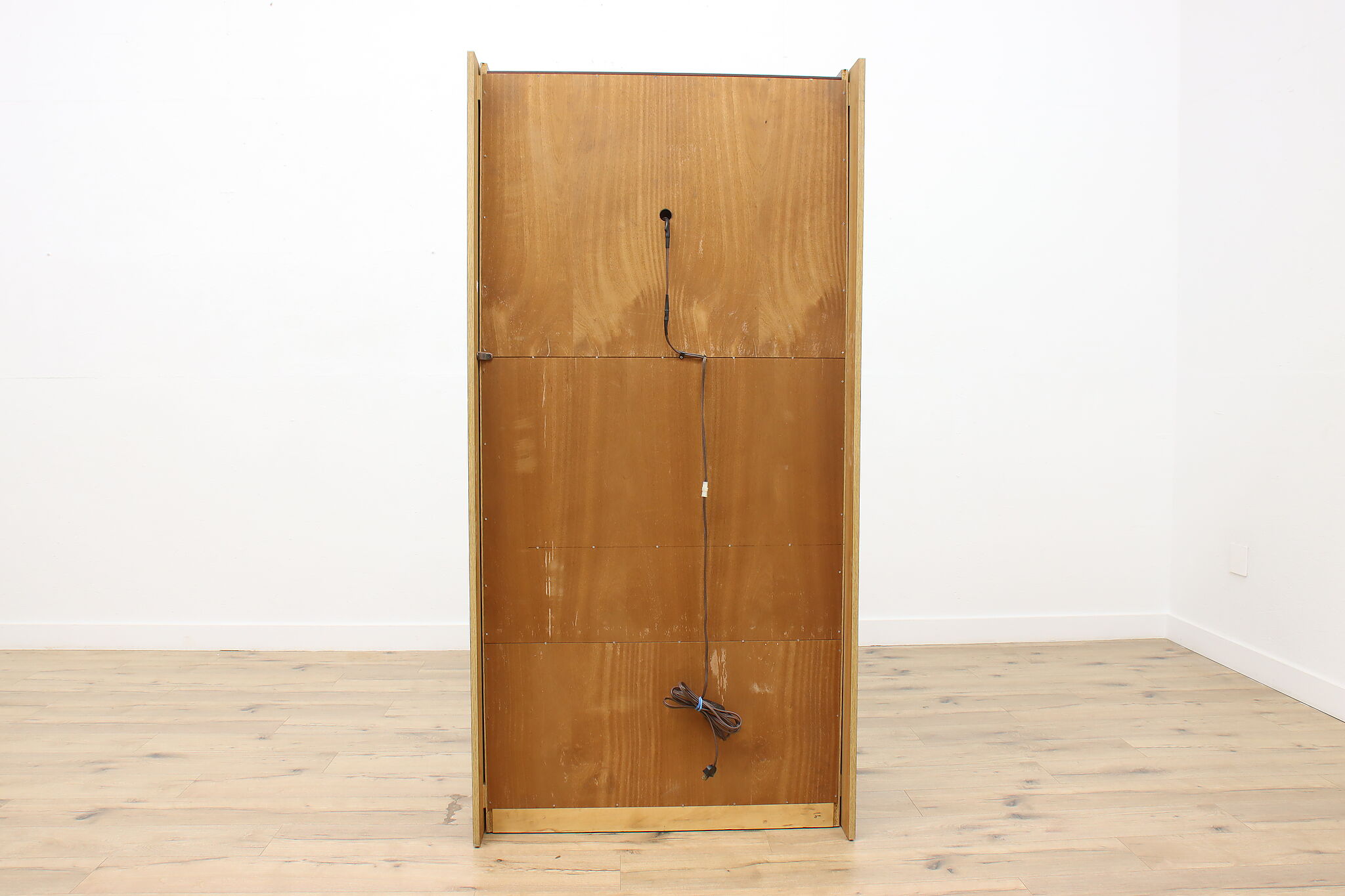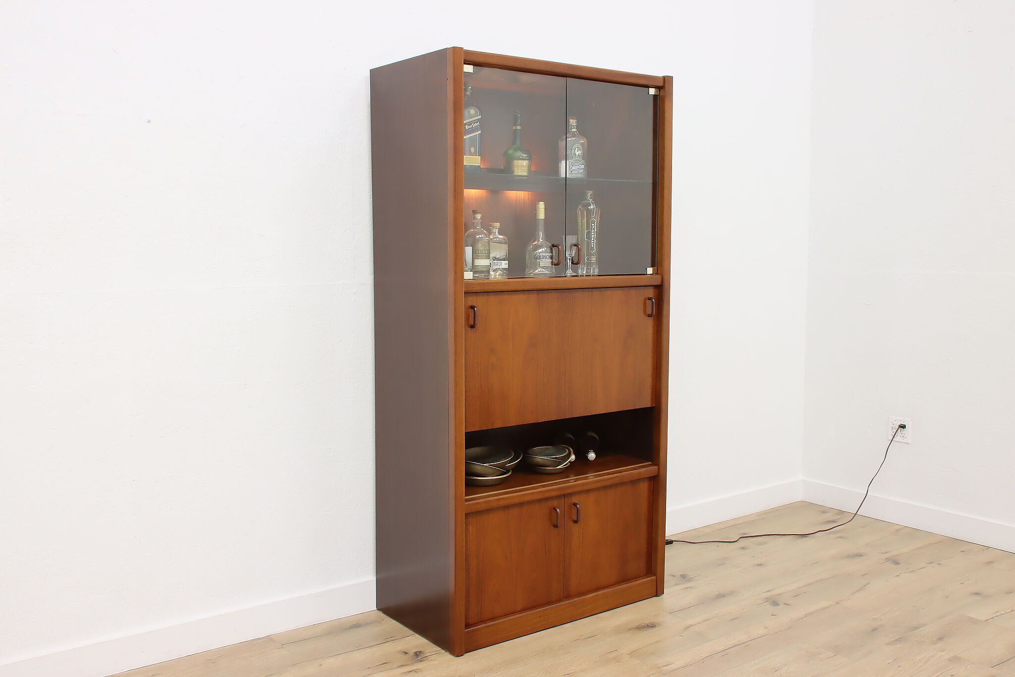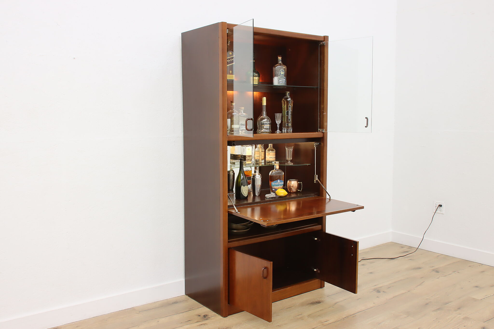 A charming Midcentury Modern bar or display cabinet has a lit interior to showcase your excellent taste in liquors and art pieces.