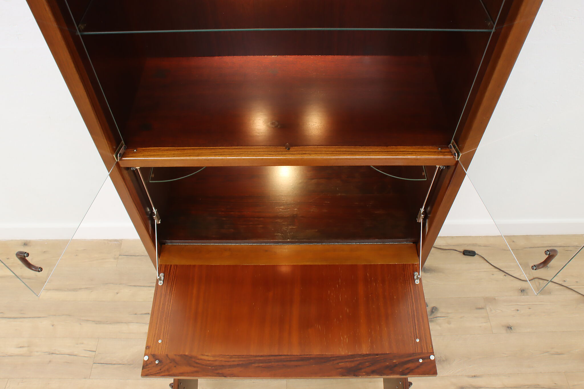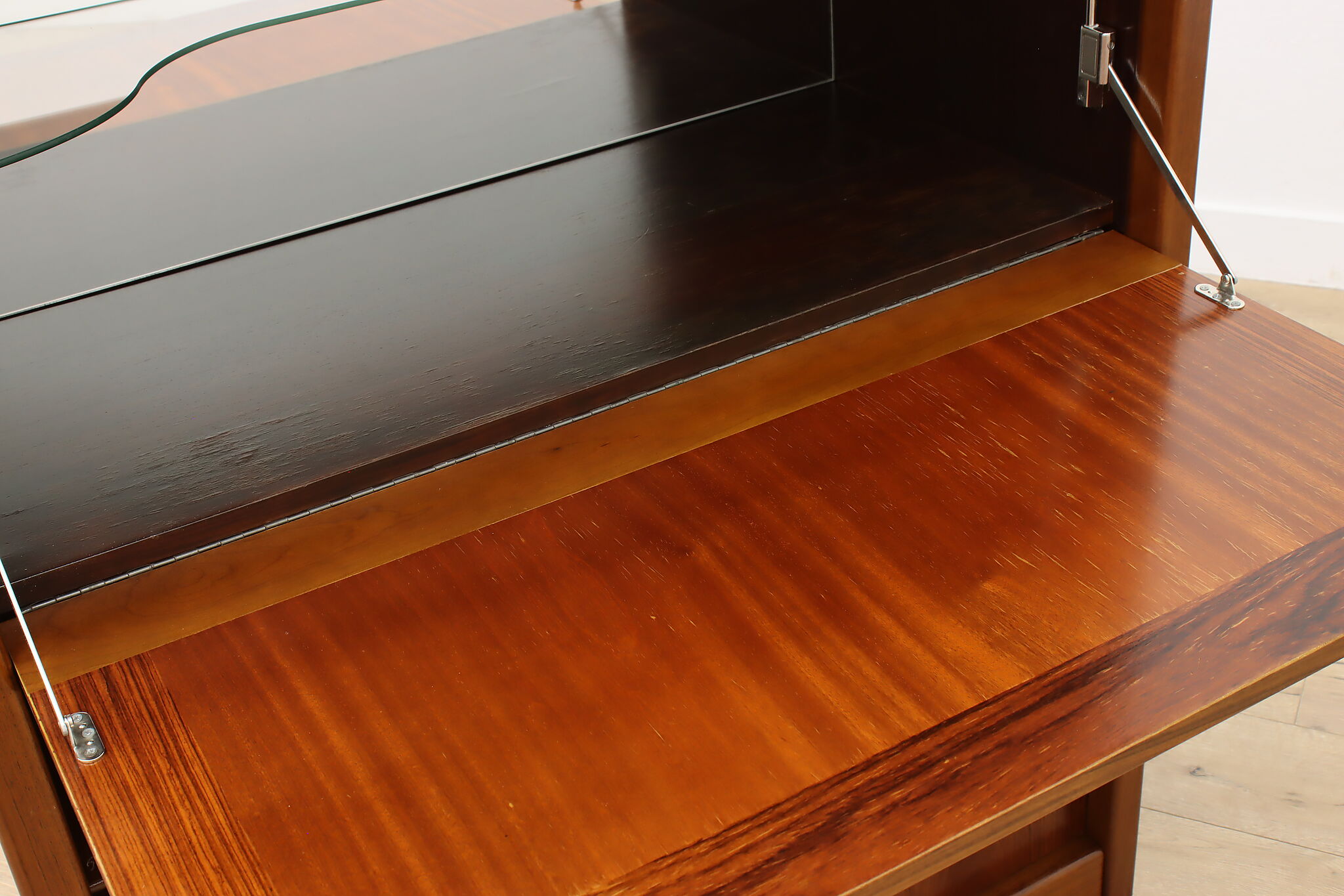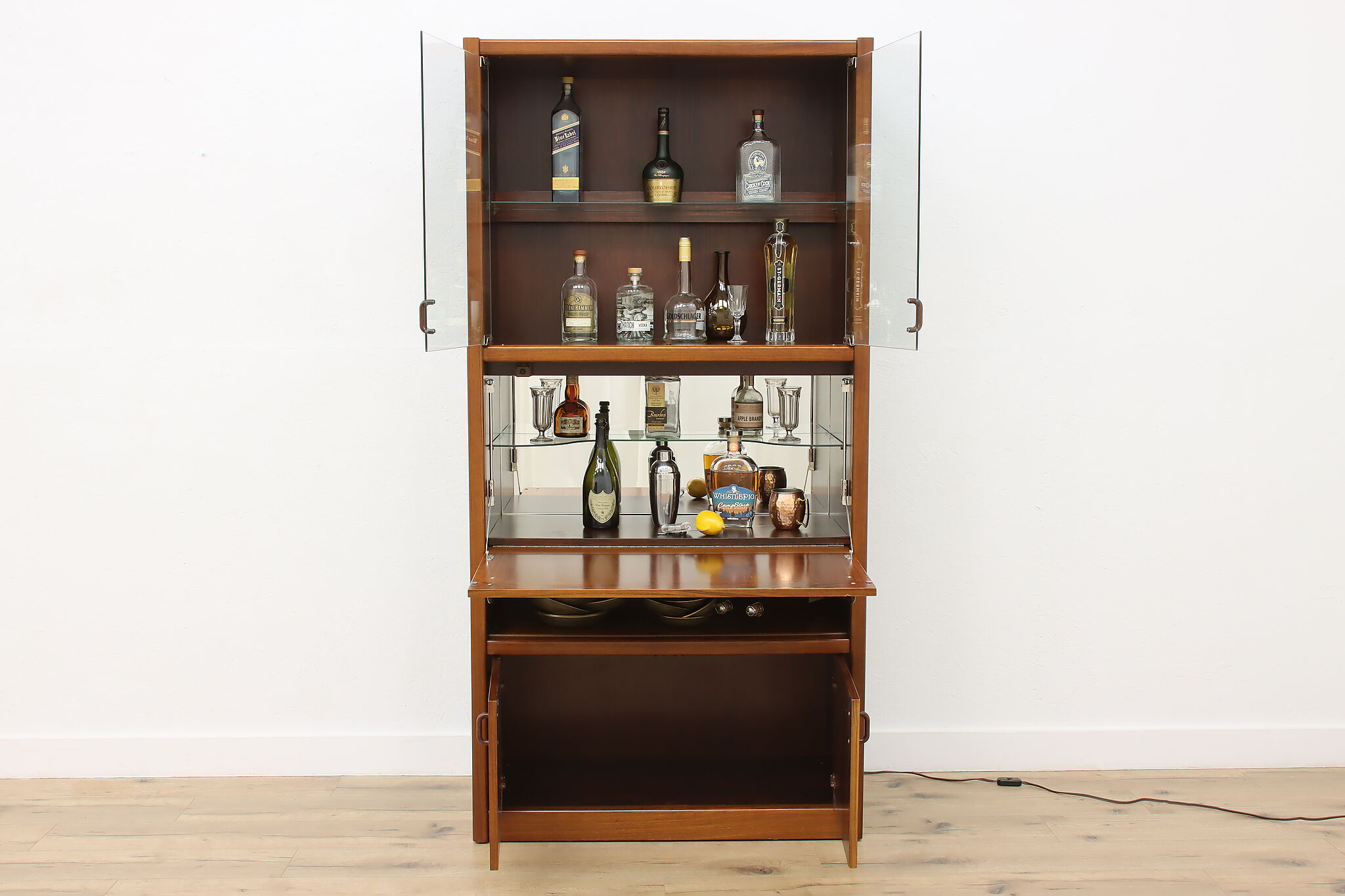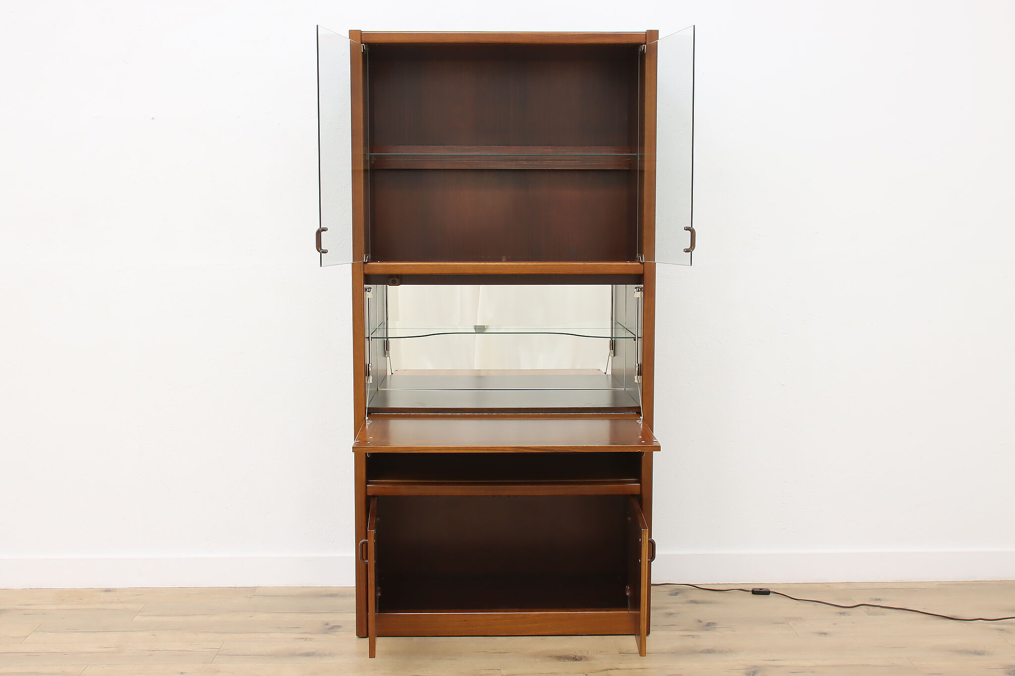 A charming Midcentury Modern bar or display cabinet has a lit interior to showcase your excellent taste in liquors and art pieces.