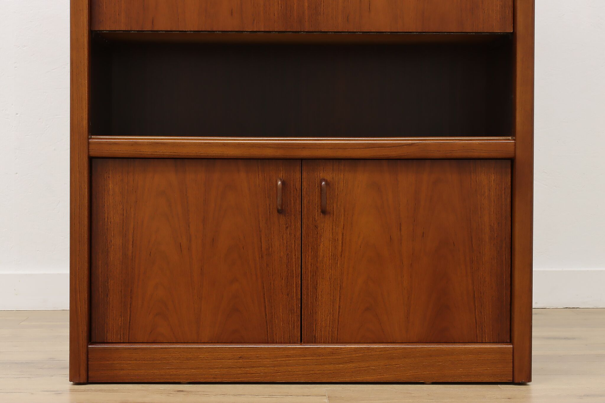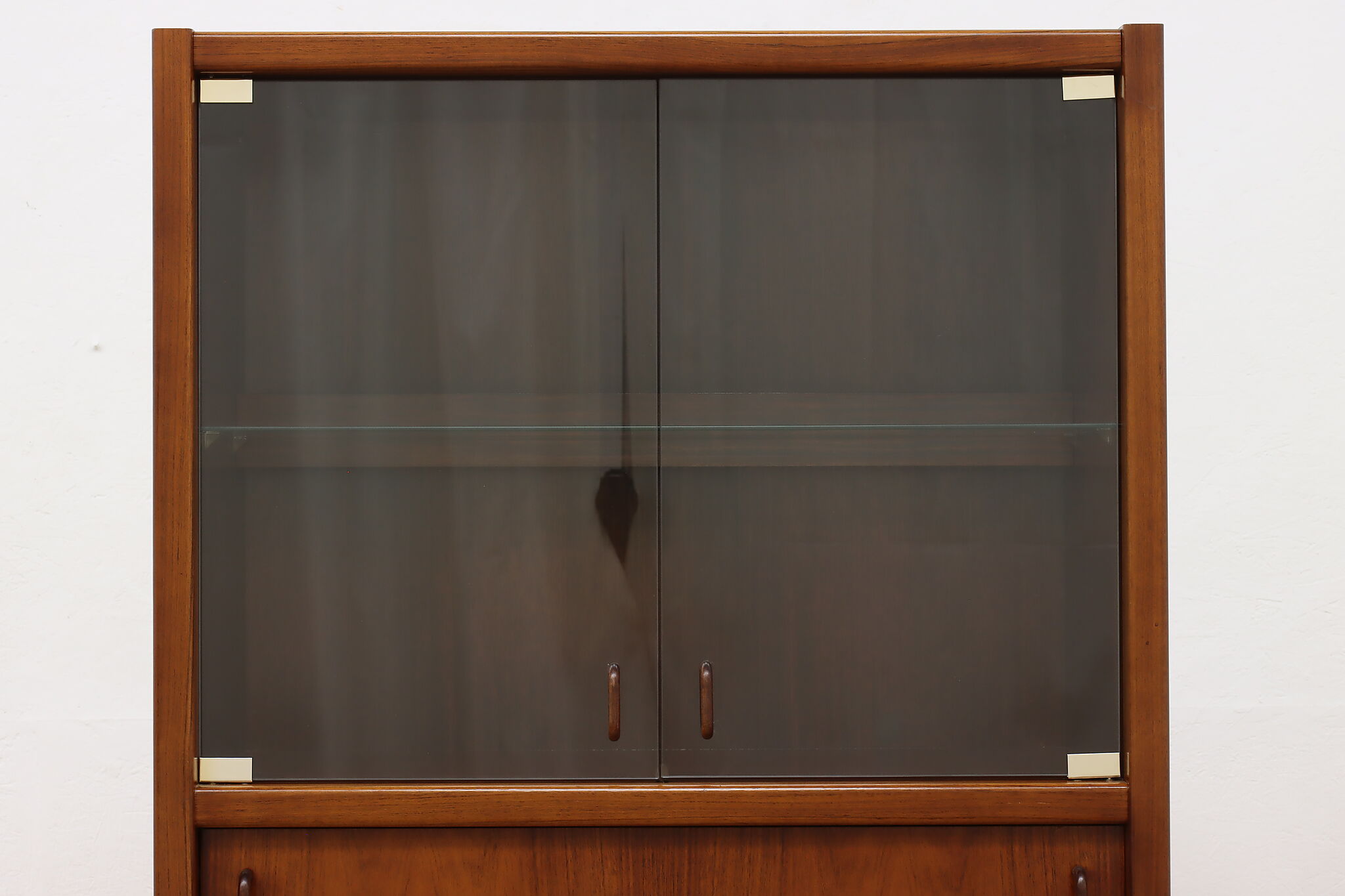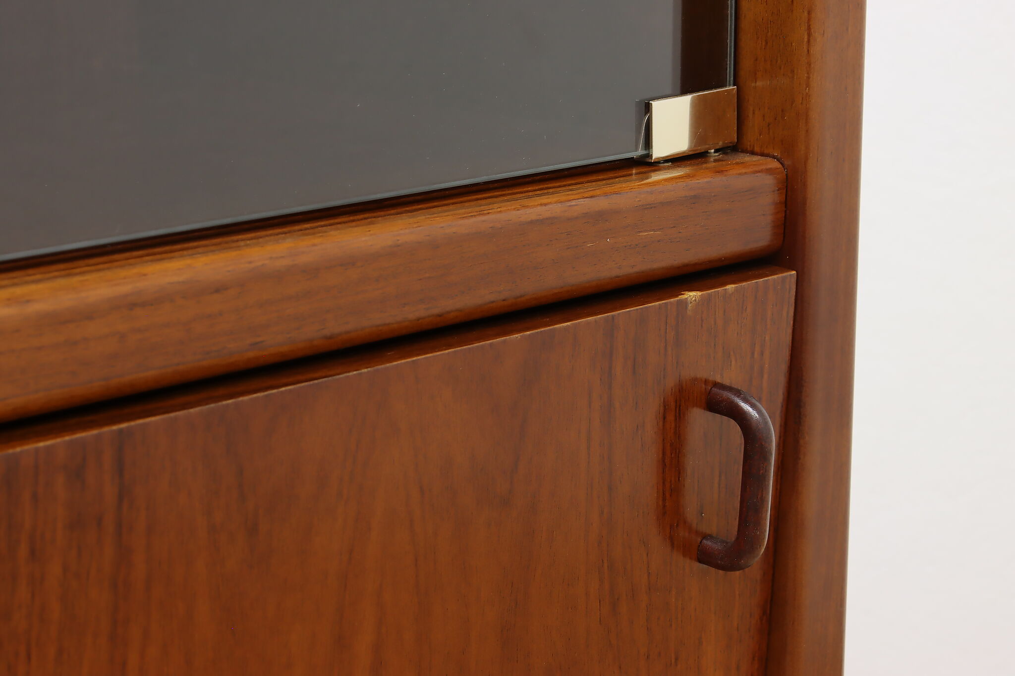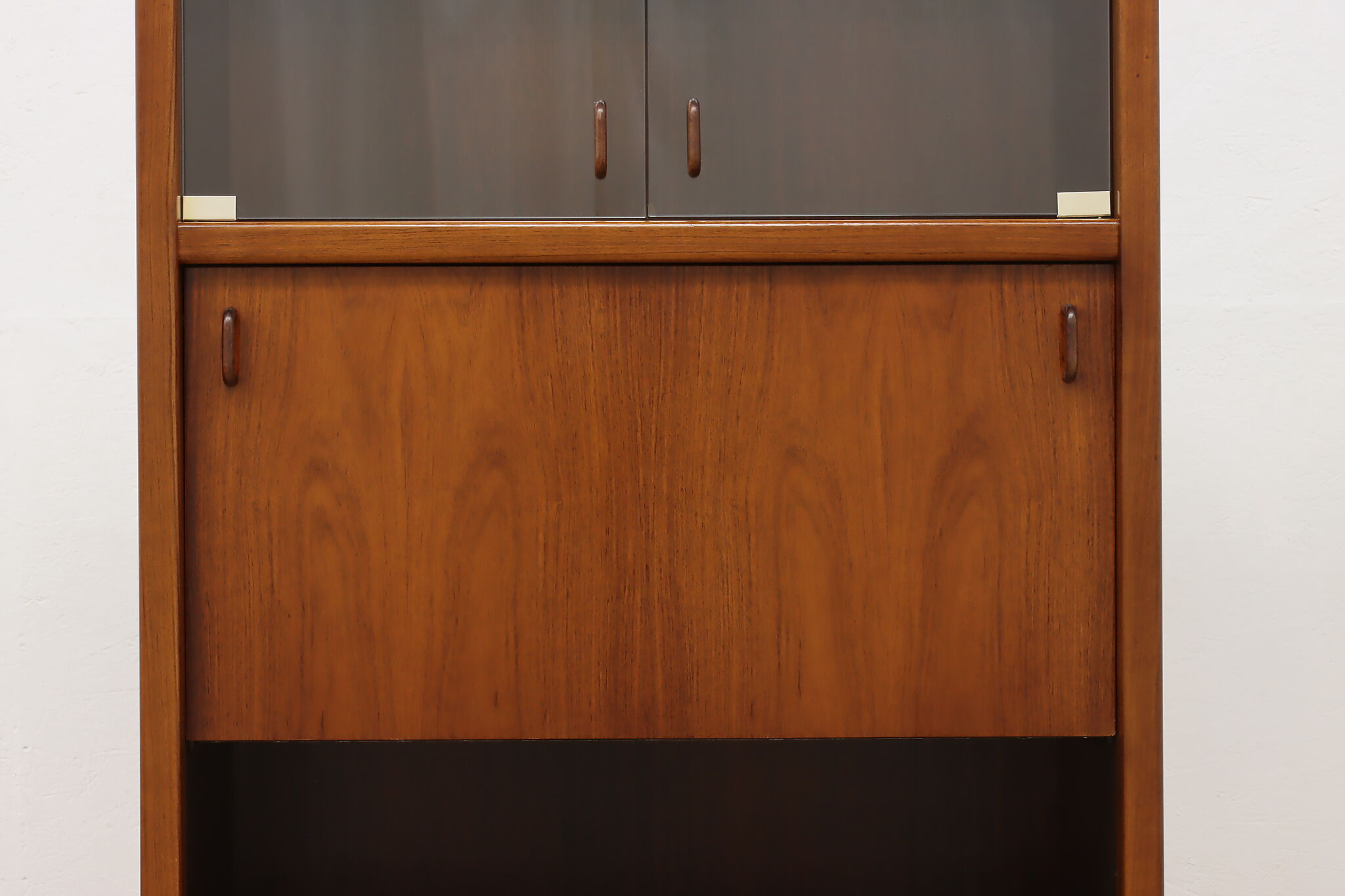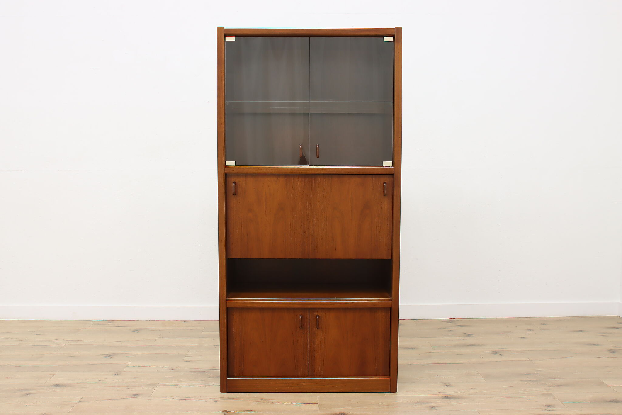 A charming Midcentury Modern bar or display cabinet has a lit interior to showcase your excellent taste in liquors and art pieces.