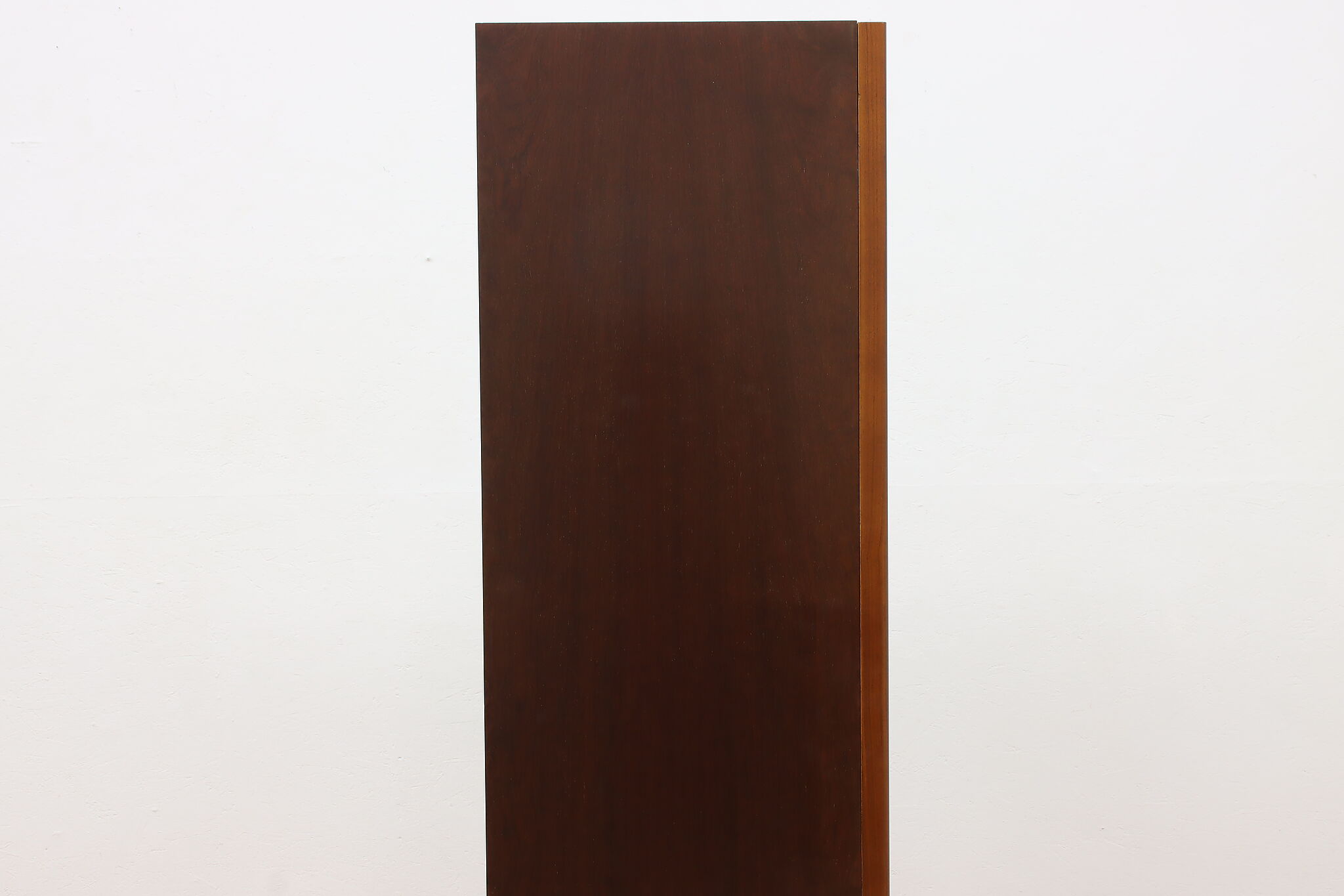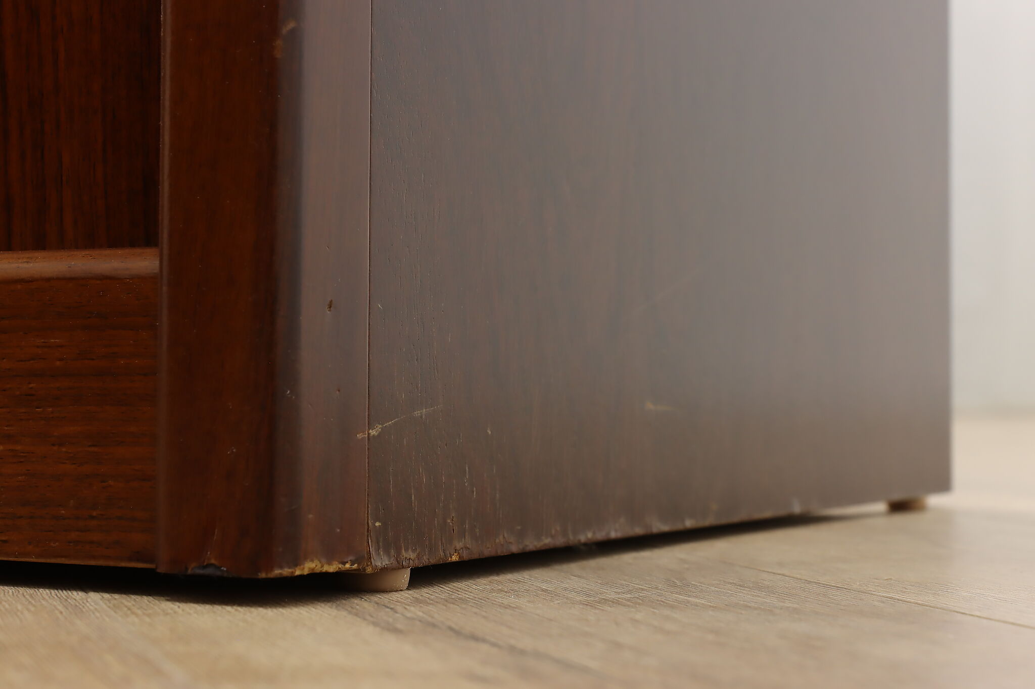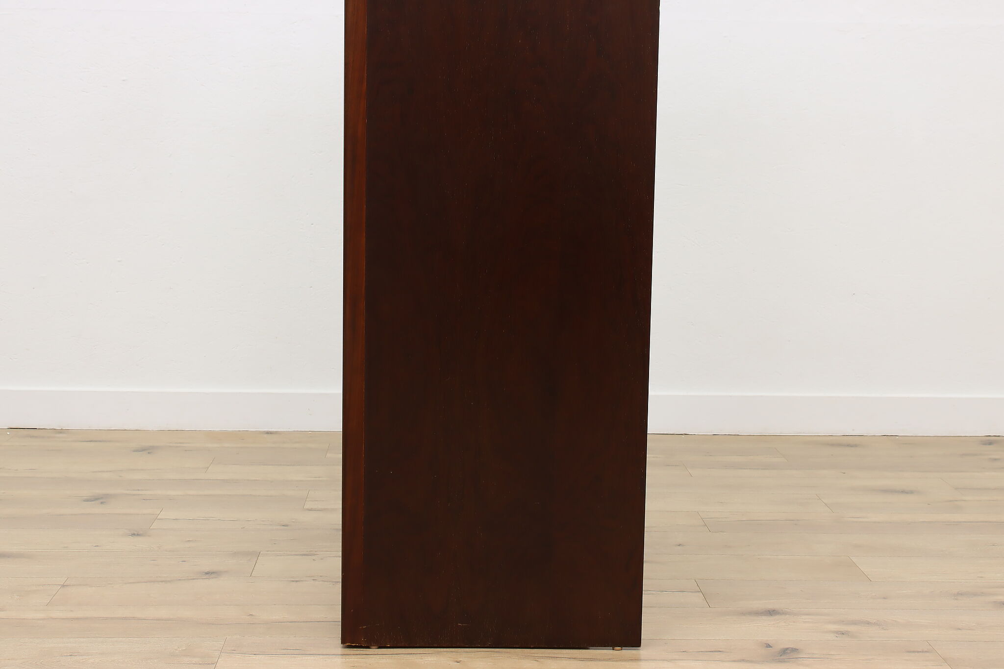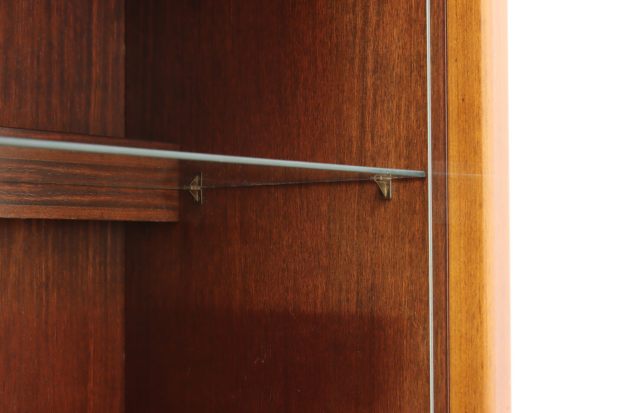 A charming Midcentury Modern bar or display cabinet has a lit interior to showcase your excellent taste in liquors and art pieces.