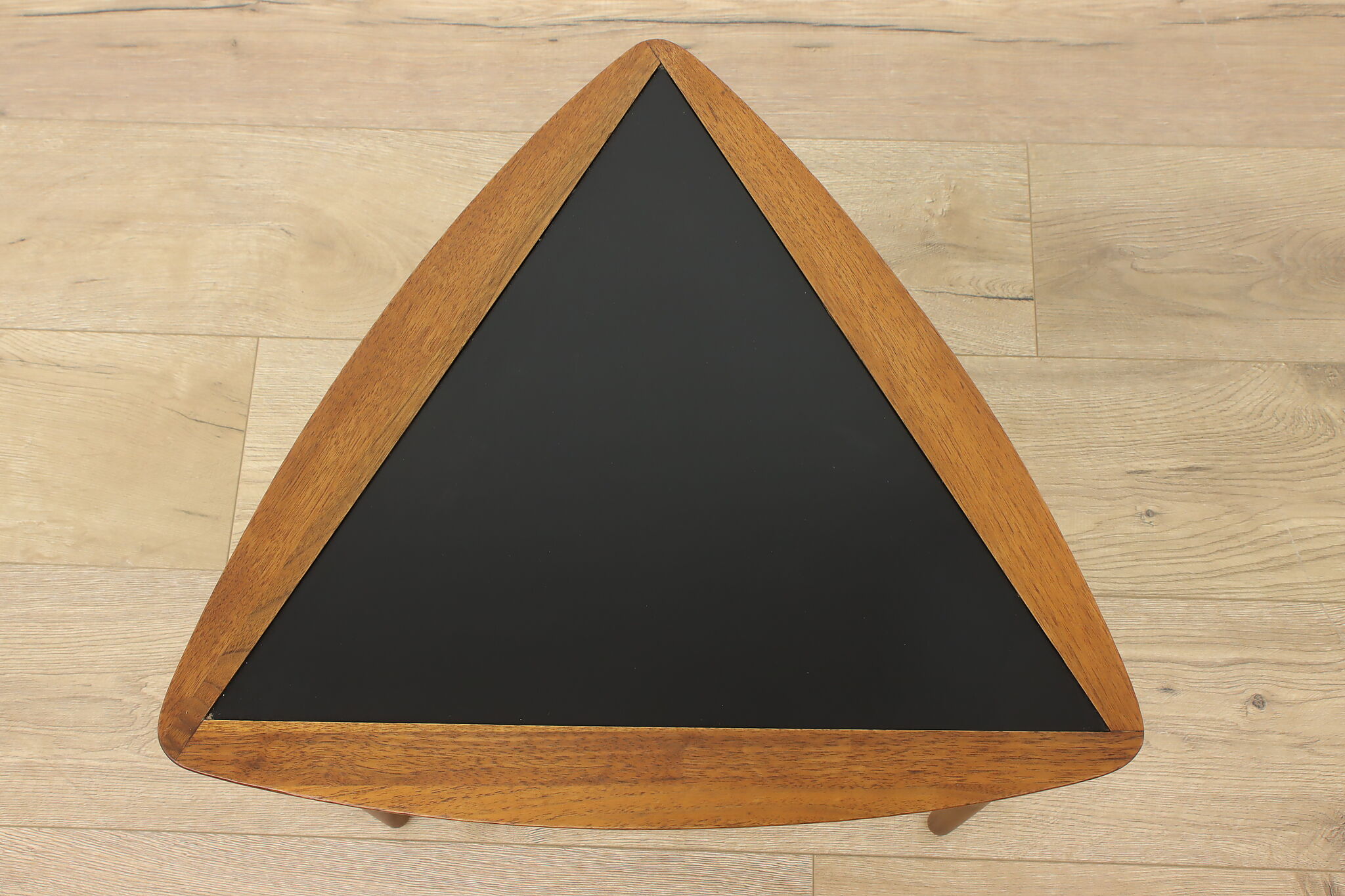Add a little Midcentury Modern decor to your home with this delightful triangle-shaped side or end table!