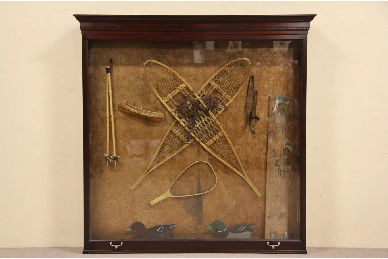Made for a Milwaukee museum about 1910, this shadow box or wall display case is solid mahogany.