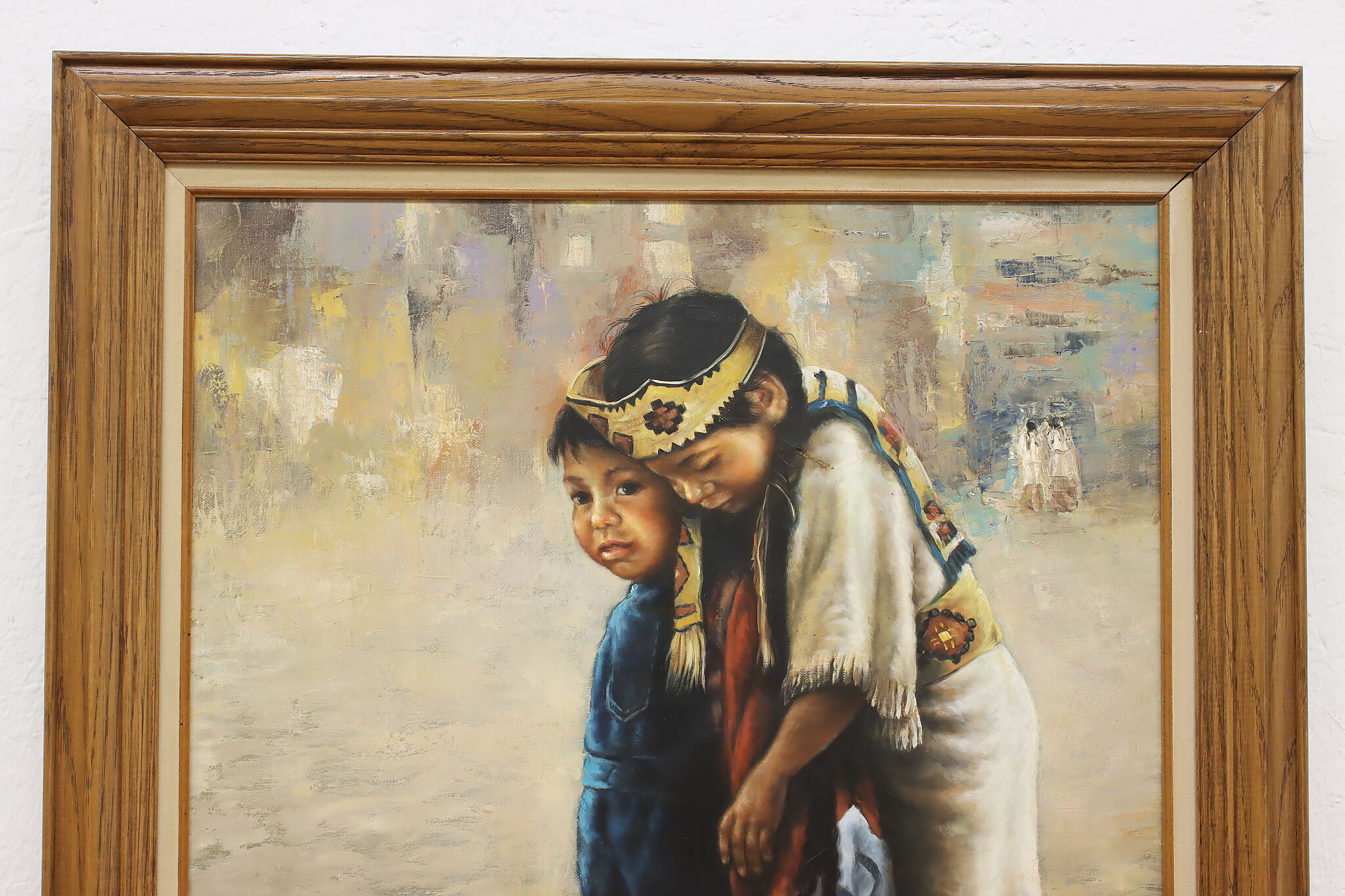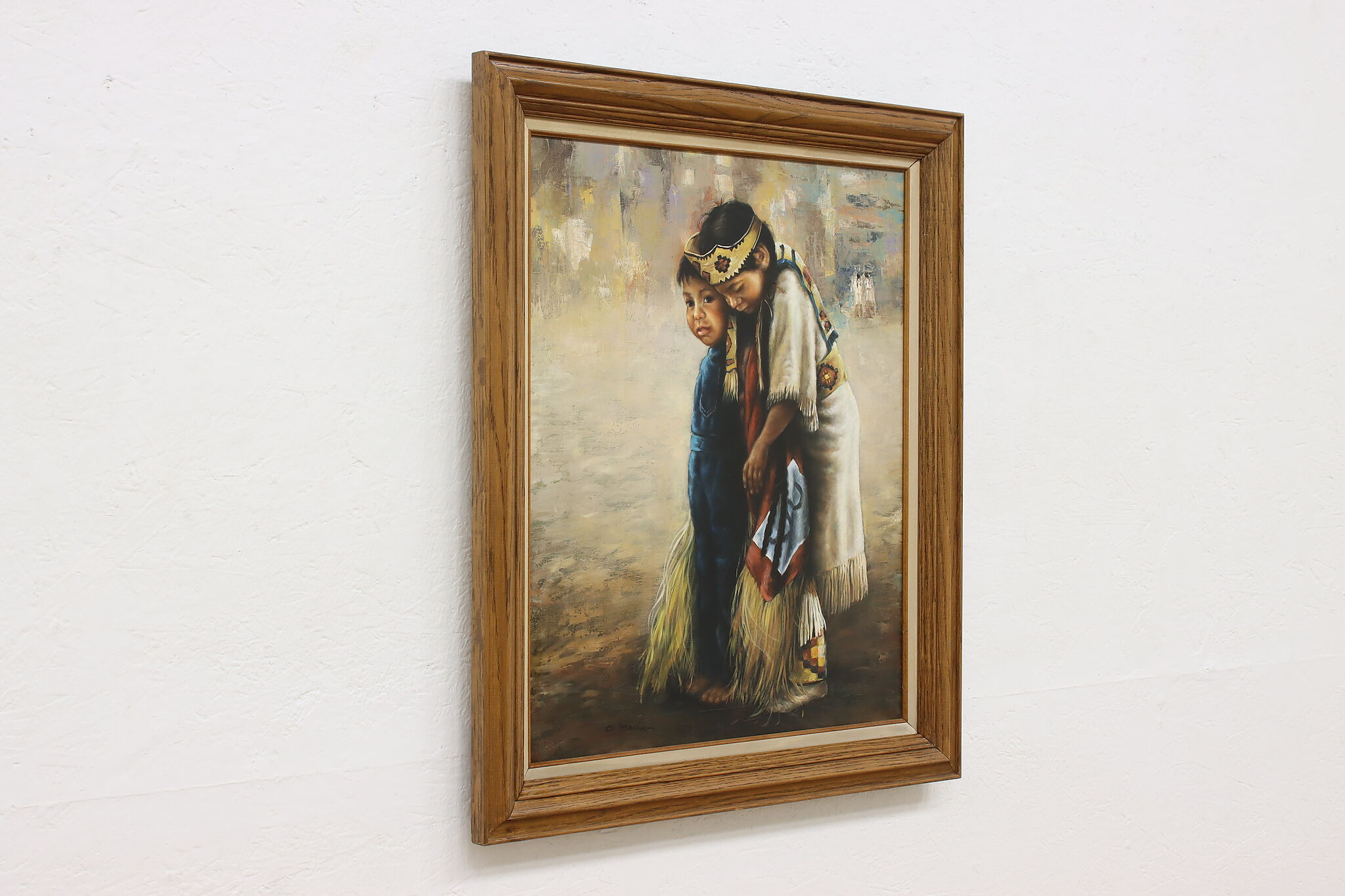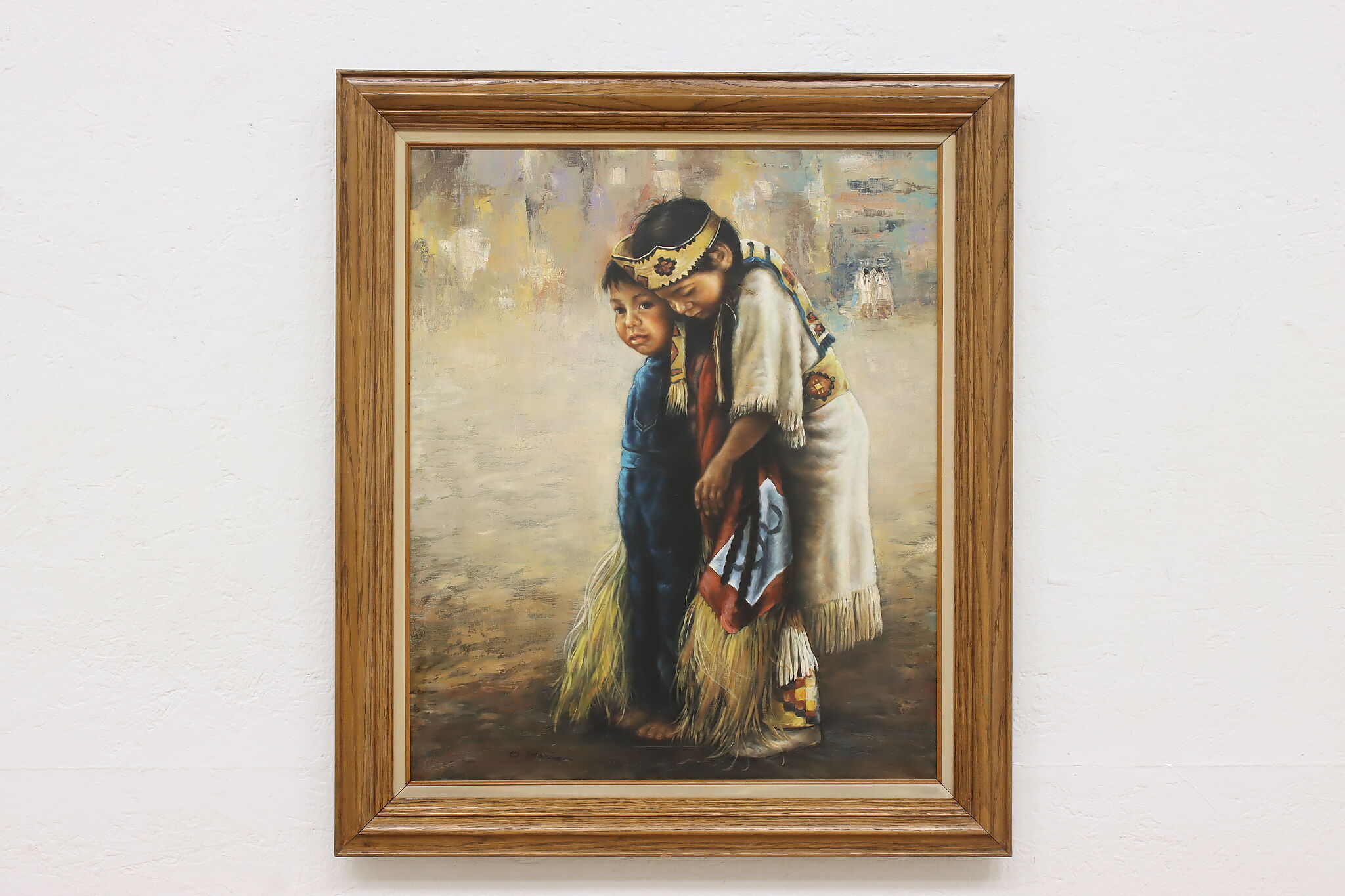 This beautifully detailed painting depicts a pair of young Native American children.