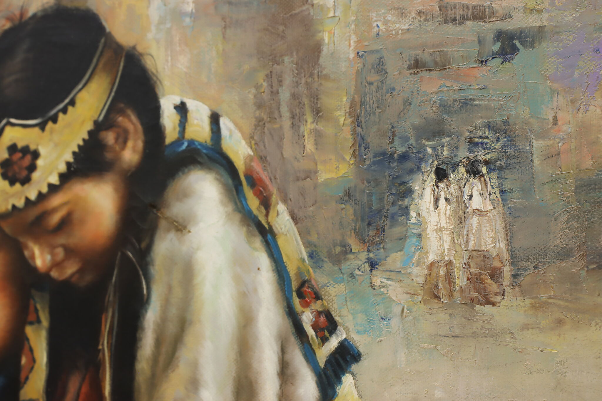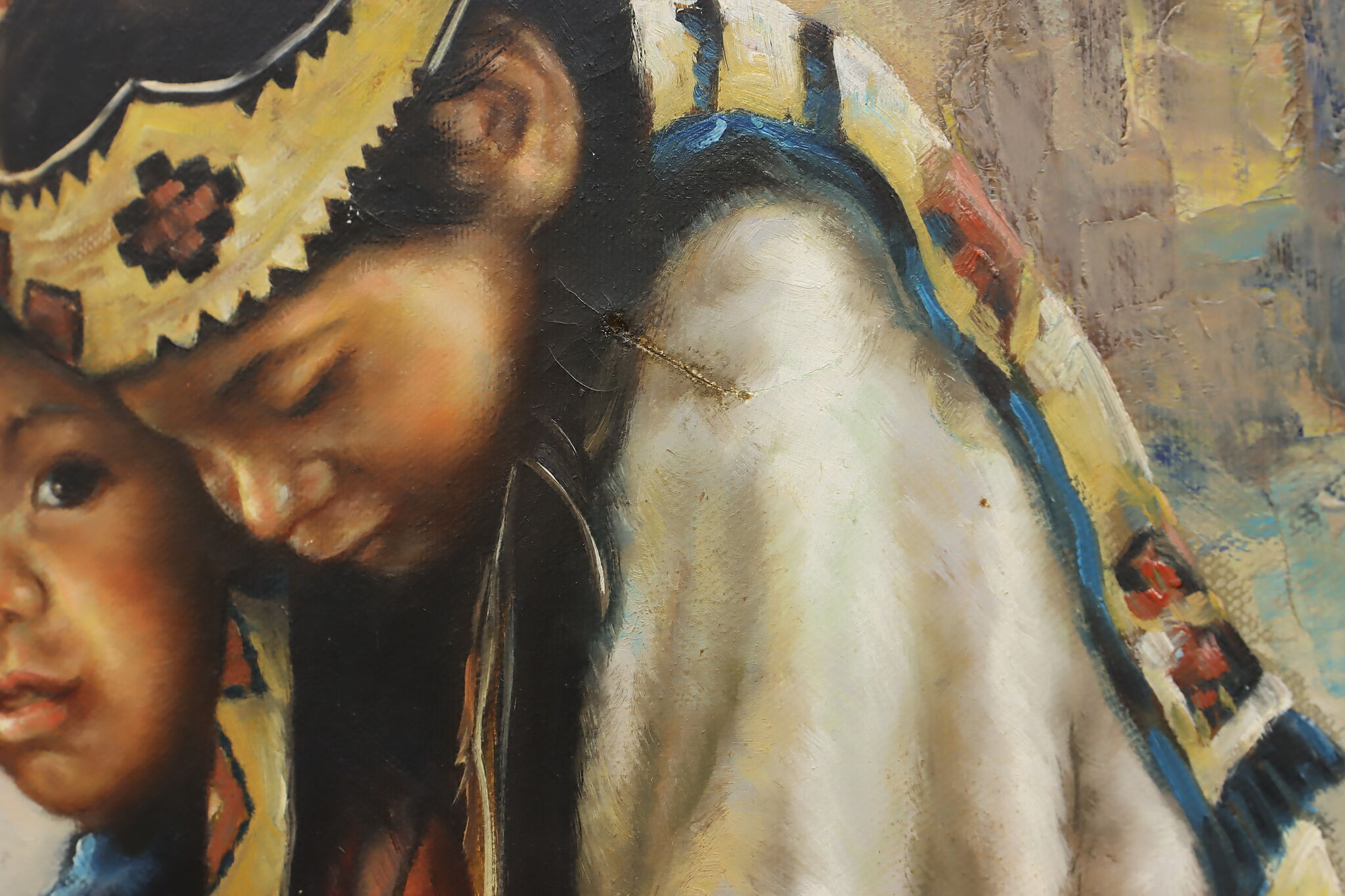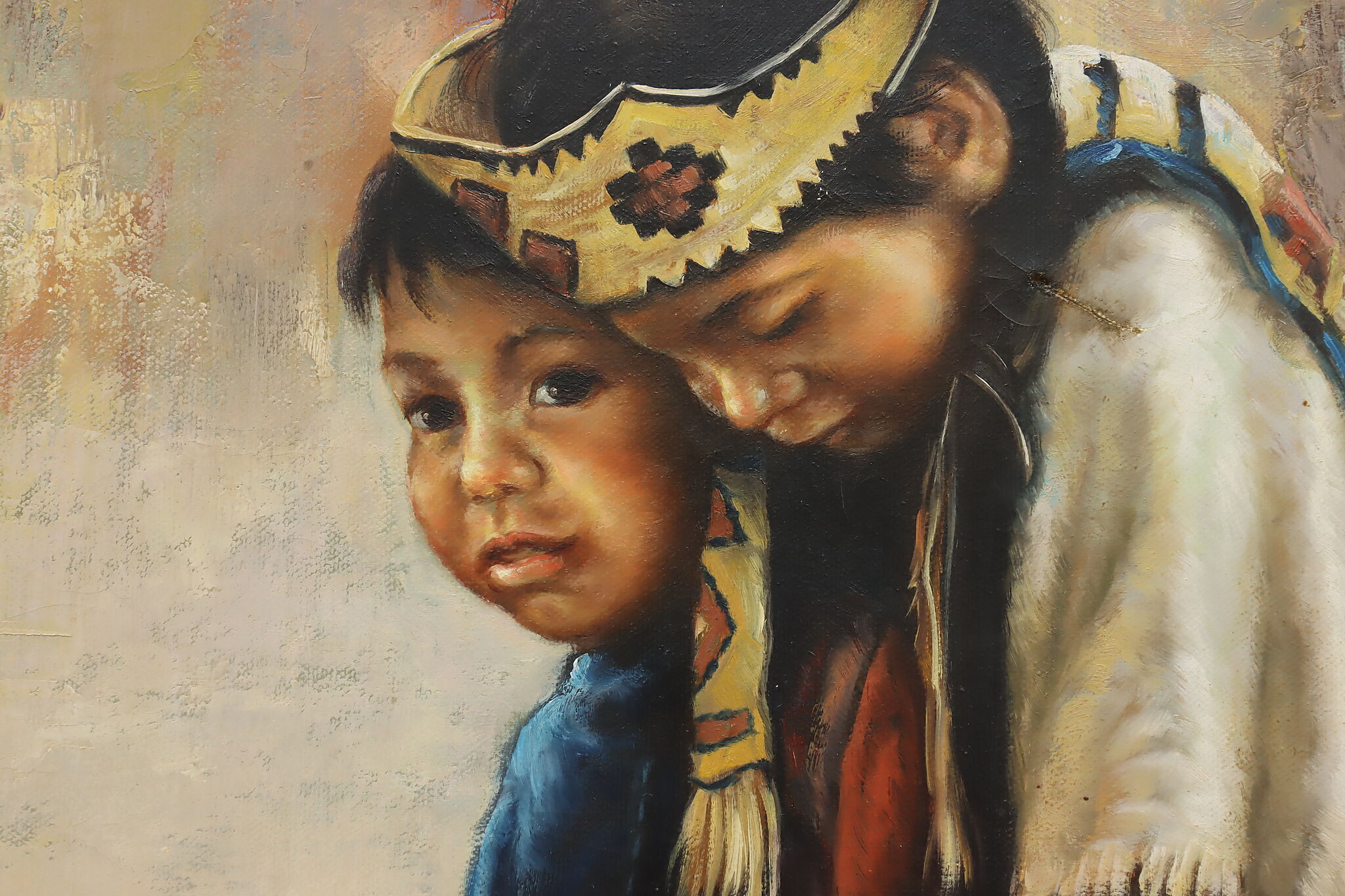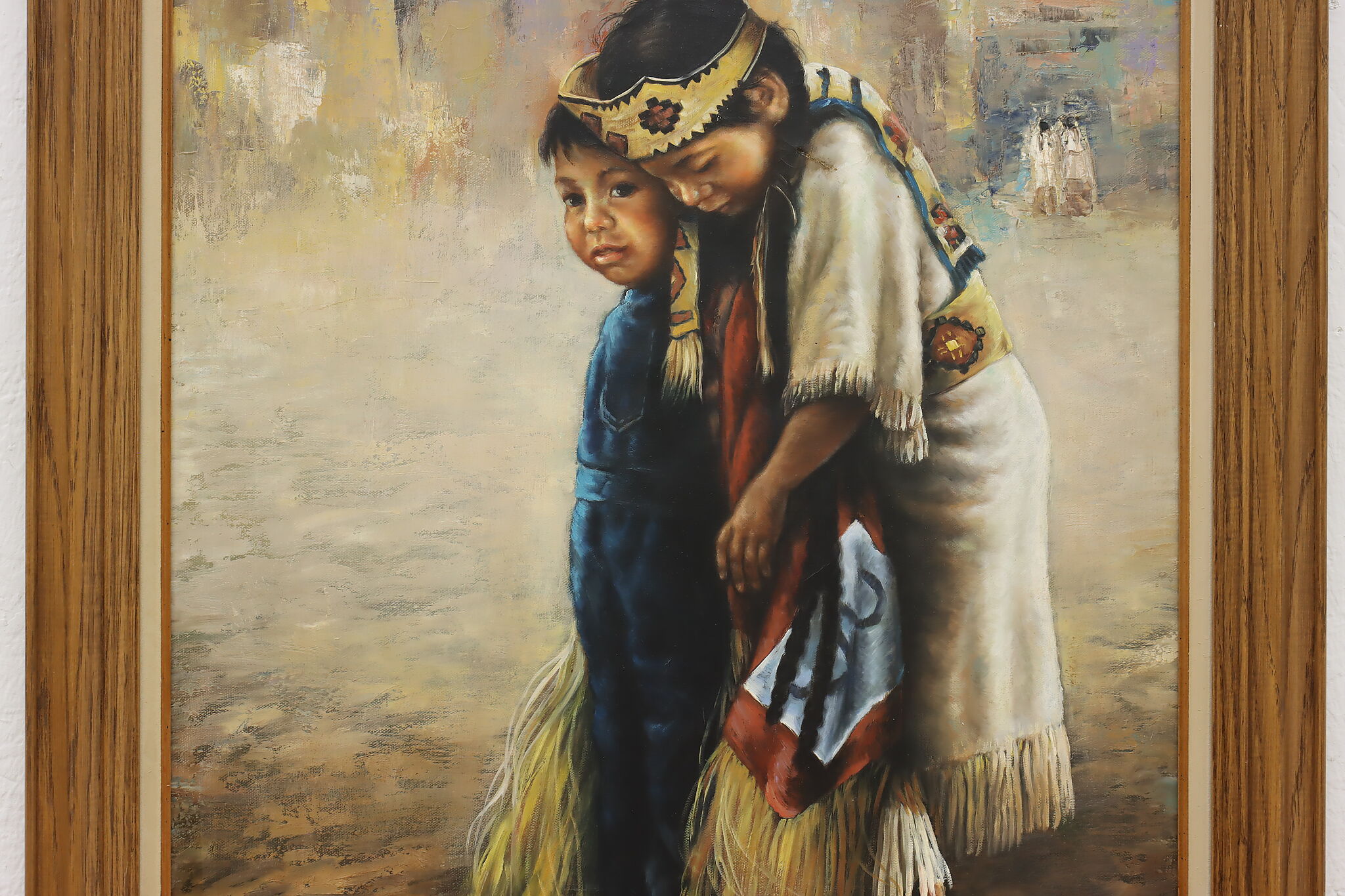 This beautifully detailed painting depicts a pair of young Native American children.