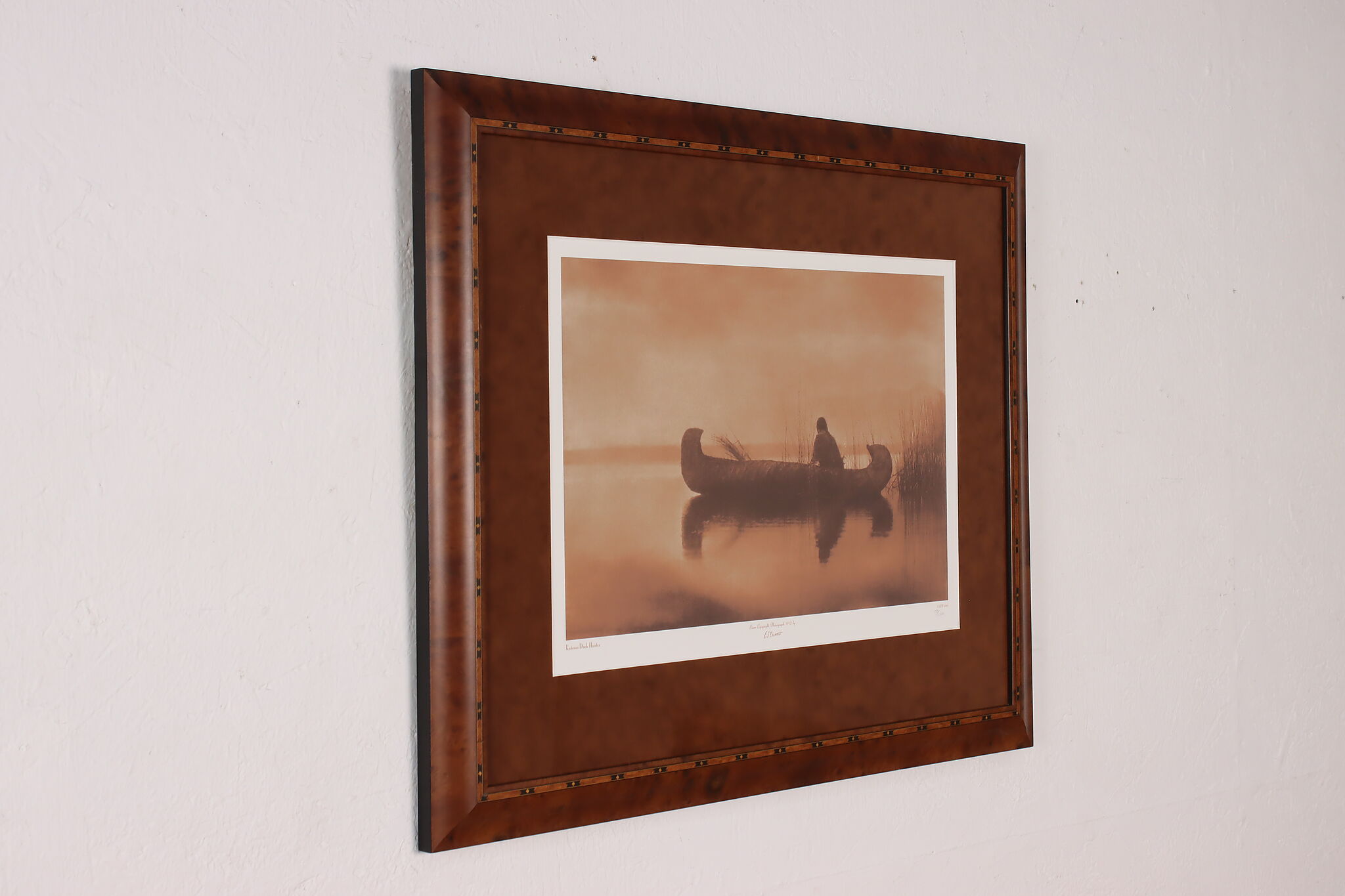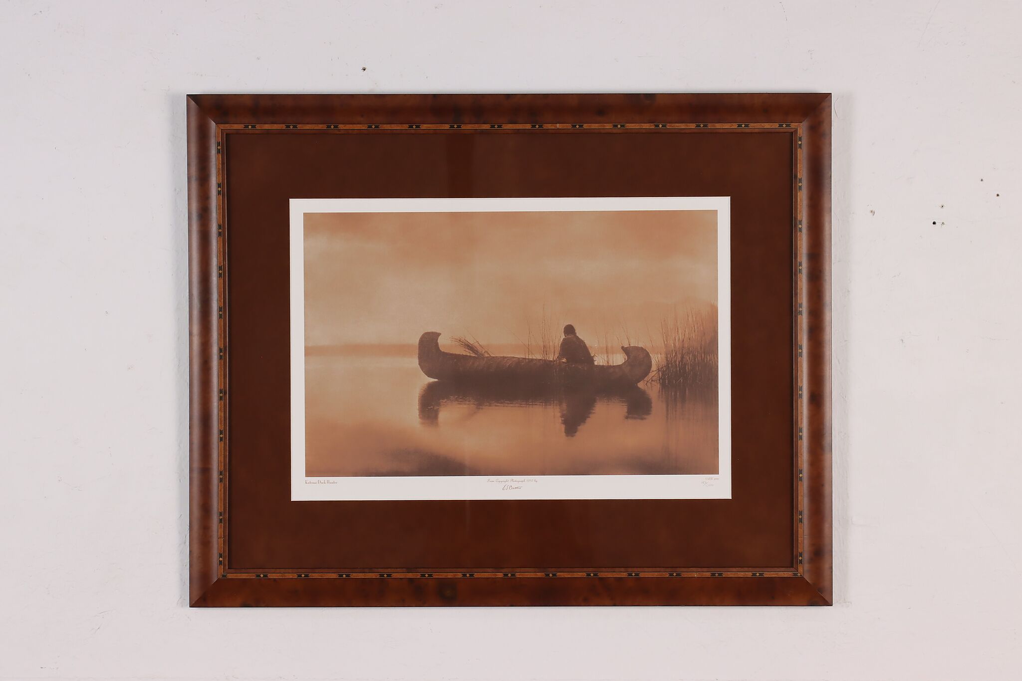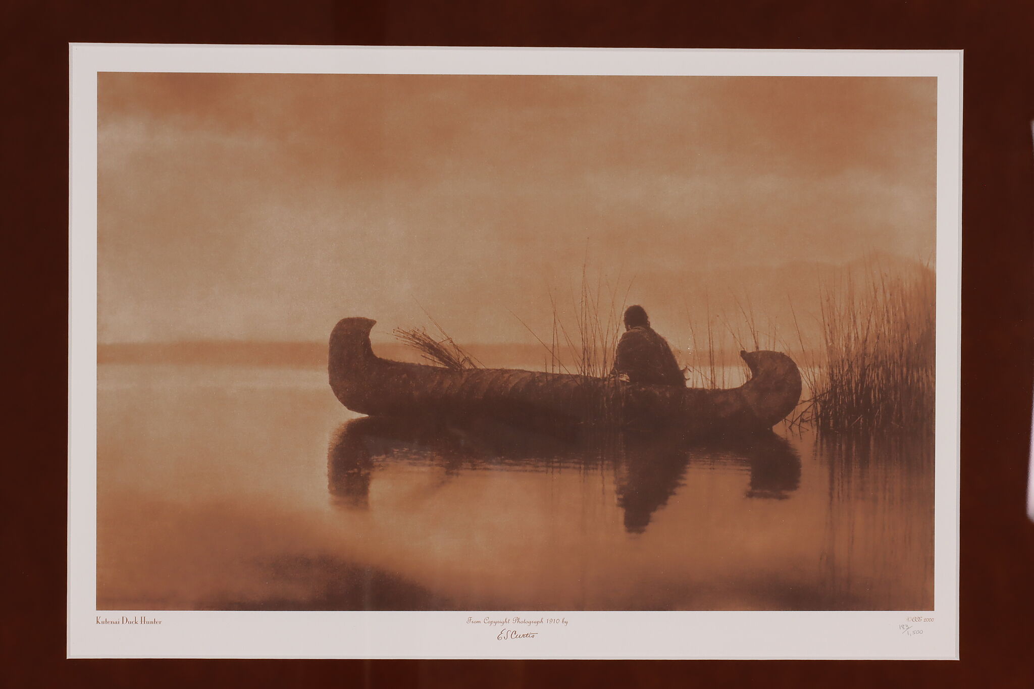 This gorgeous print of a Kutenai Indian is after Edward S. Curtis's original glass-plate negative photographs. Curtis was a famous photographer and ethnographer of North American native nations, capturing the unbreakable spirit of the Native American people.