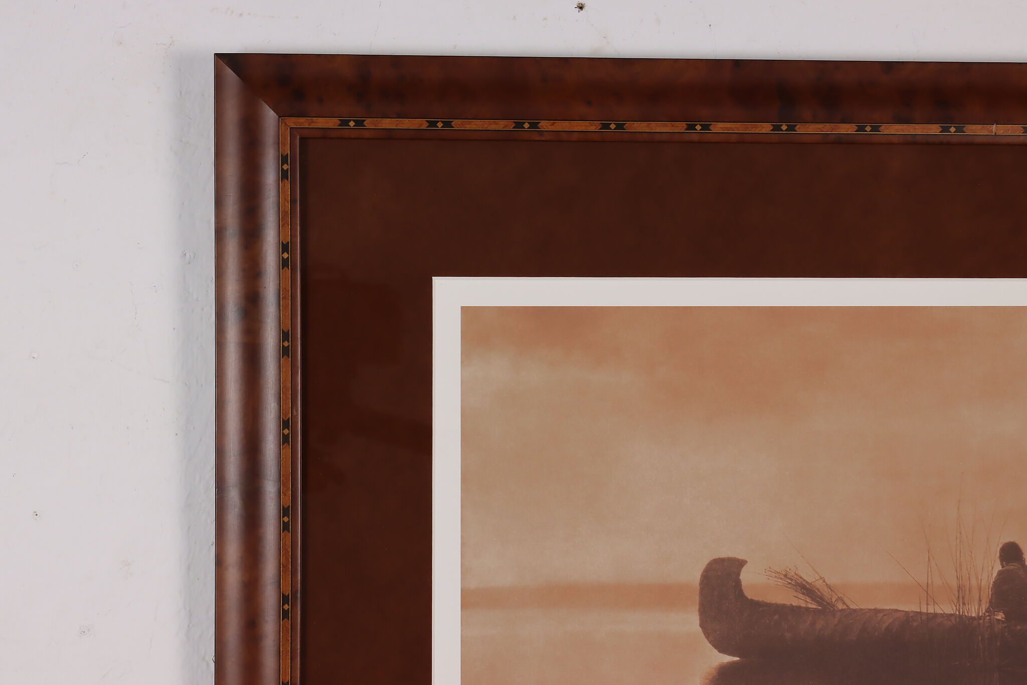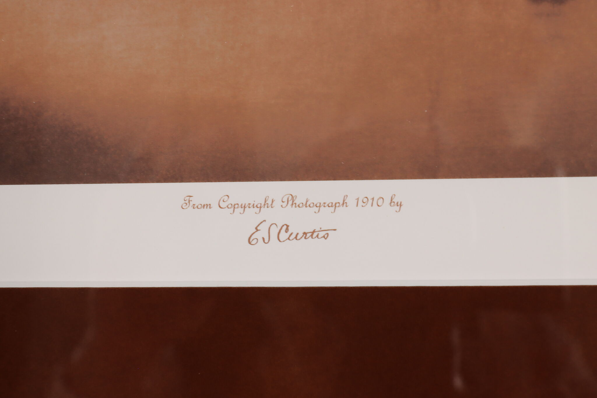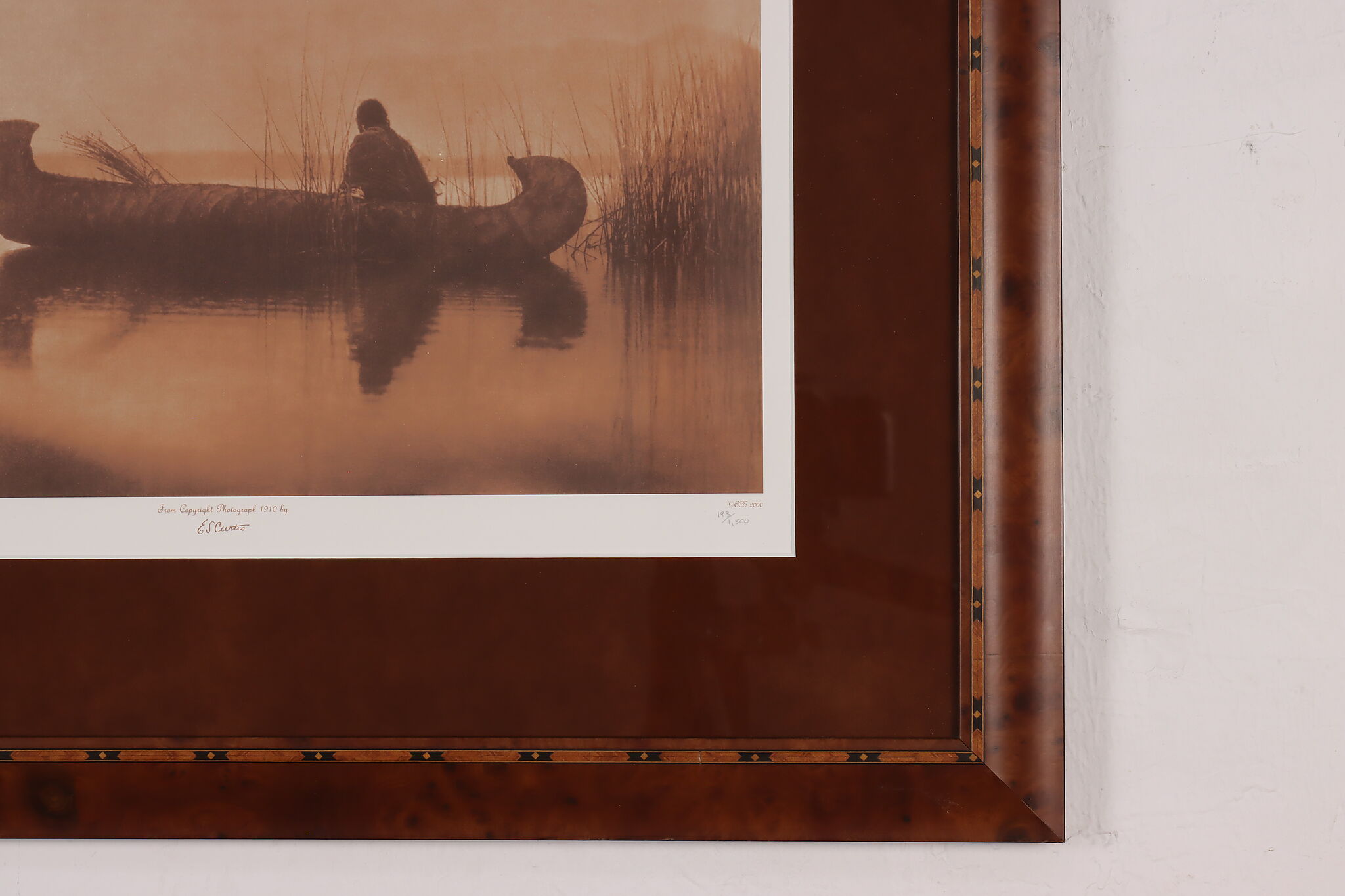 This gorgeous print of a Kutenai Indian is after Edward S. Curtis's original glass-plate negative photographs. Curtis was a famous photographer and ethnographer of North American native nations, capturing the unbreakable spirit of the Native American people.