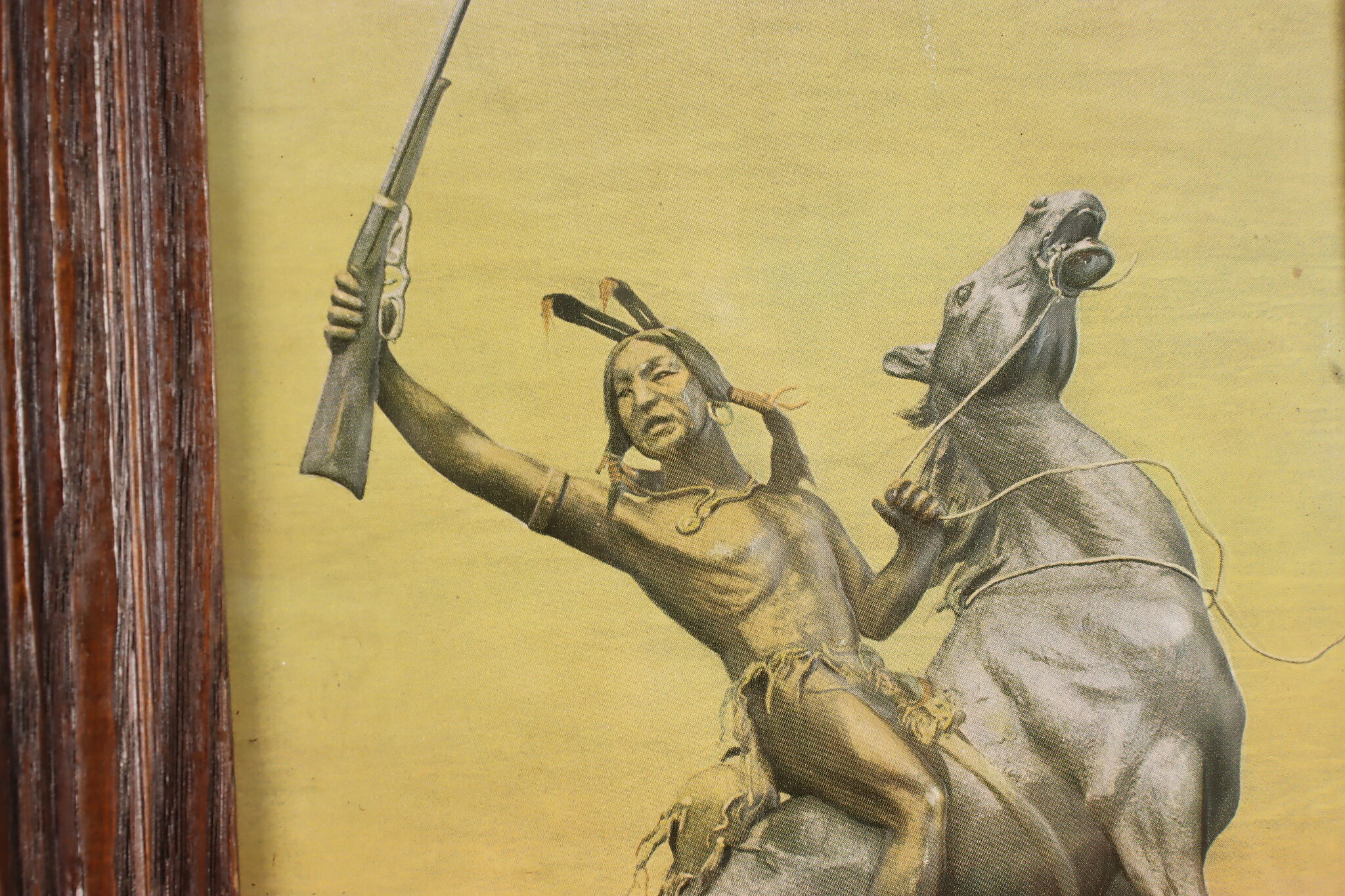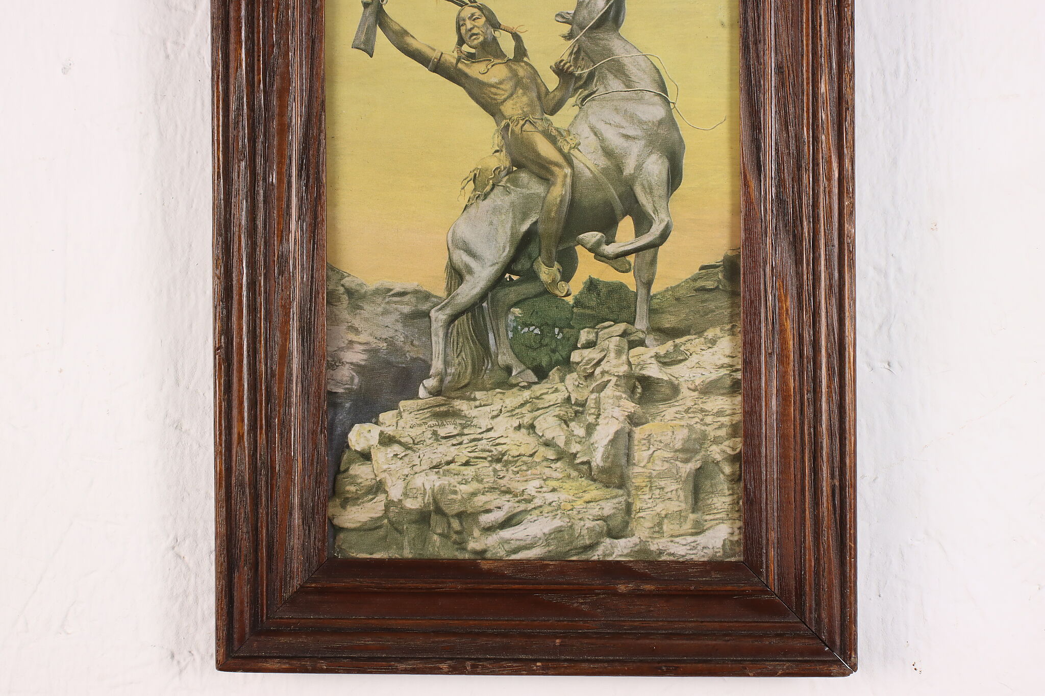 A Native American warrior and his horse are the subject of this beautiful print.