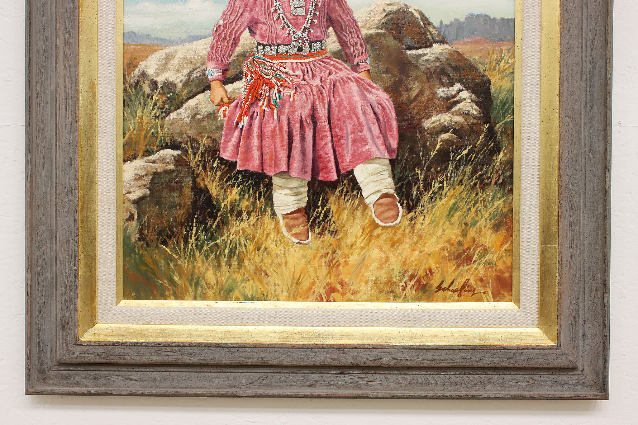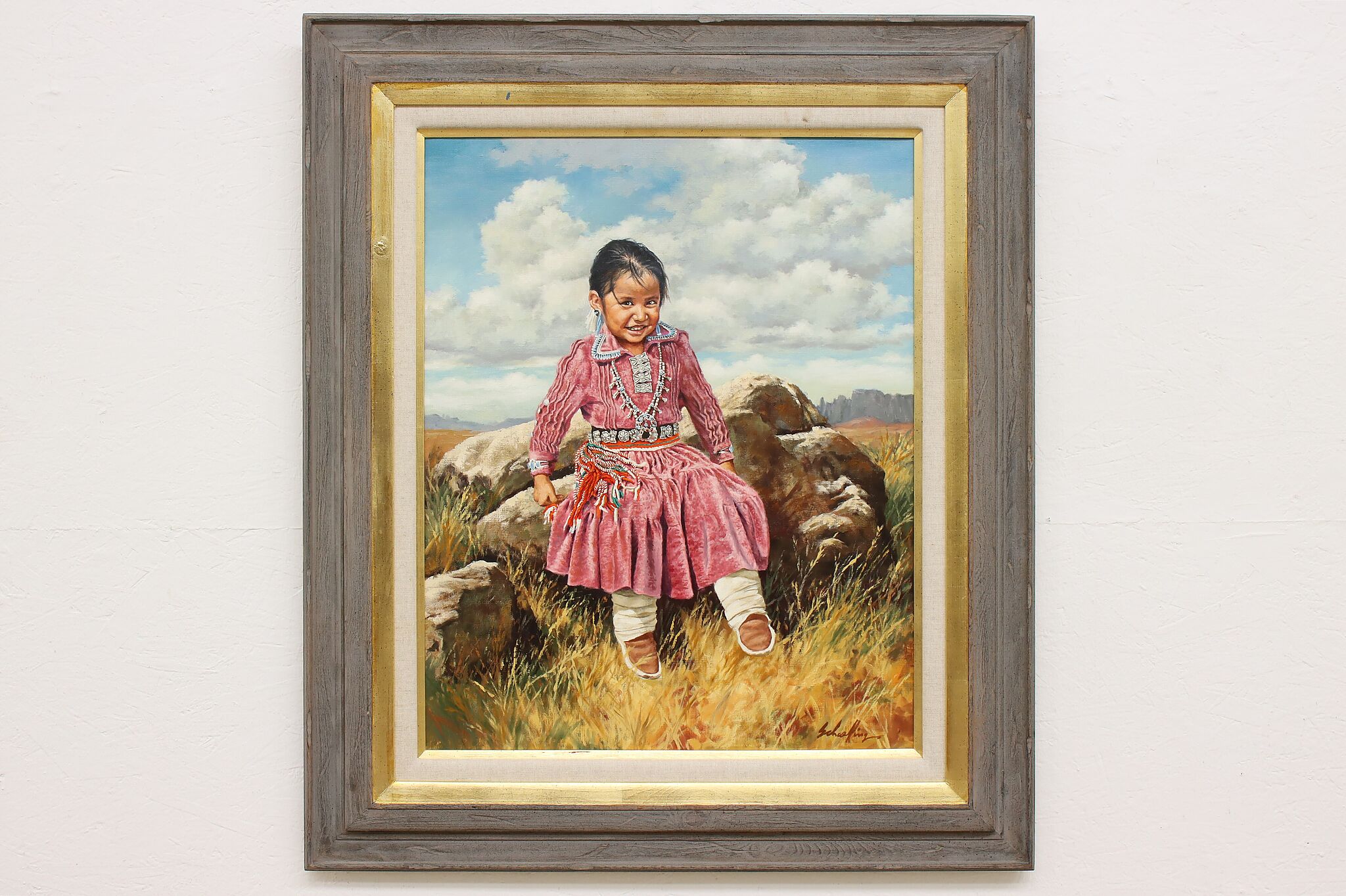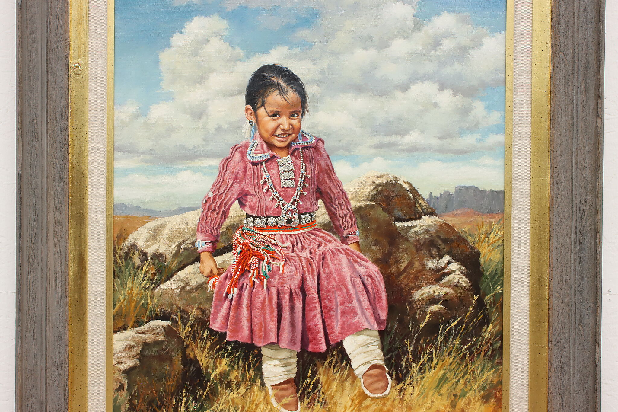 A stunningly detailed Native American girl practically leaps off this painting titled "Ready to Go!"