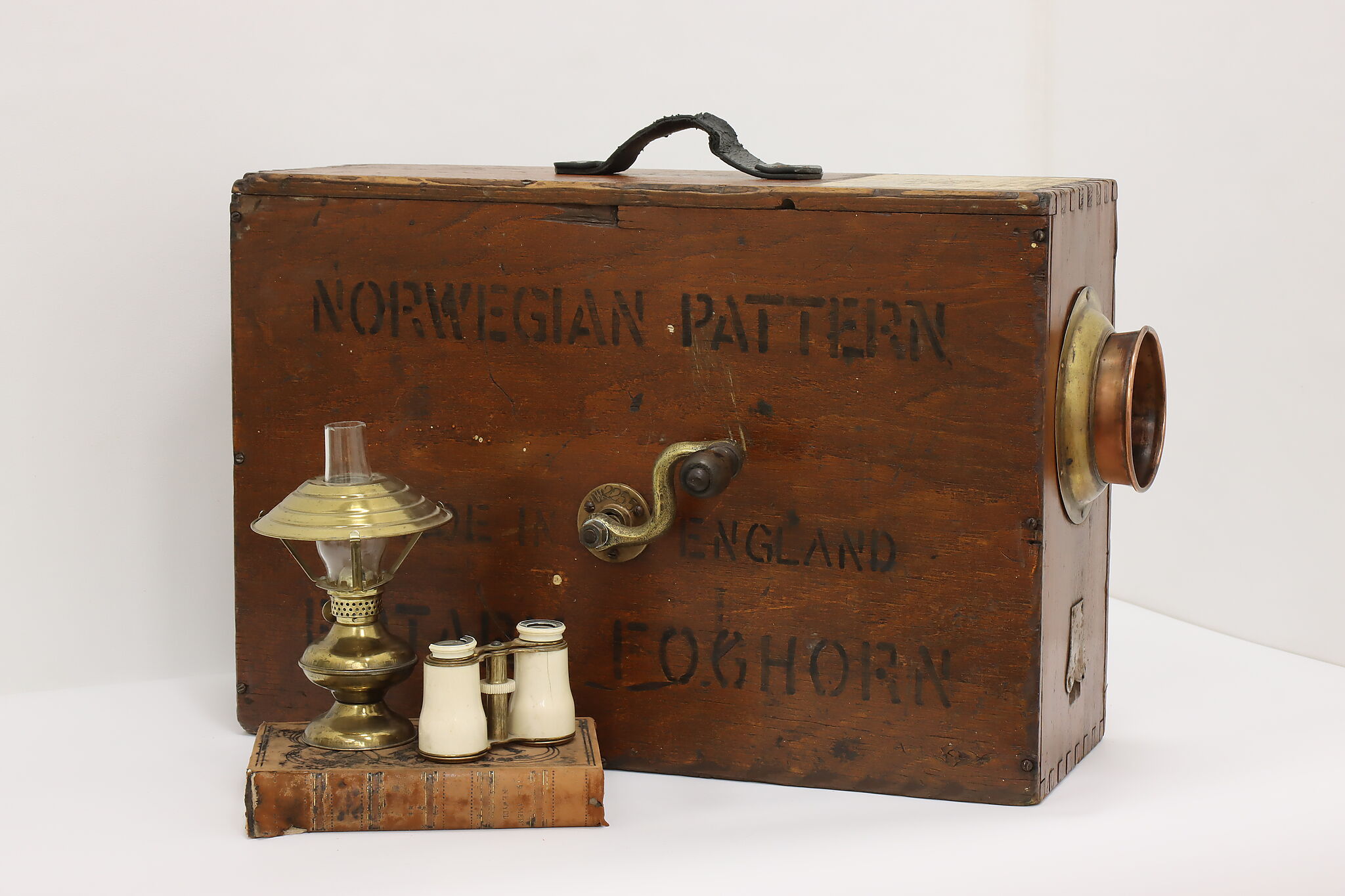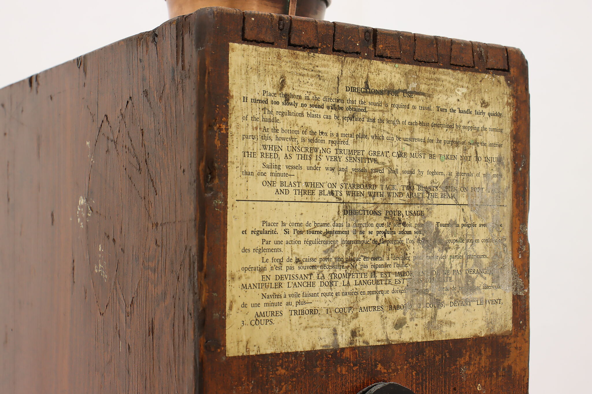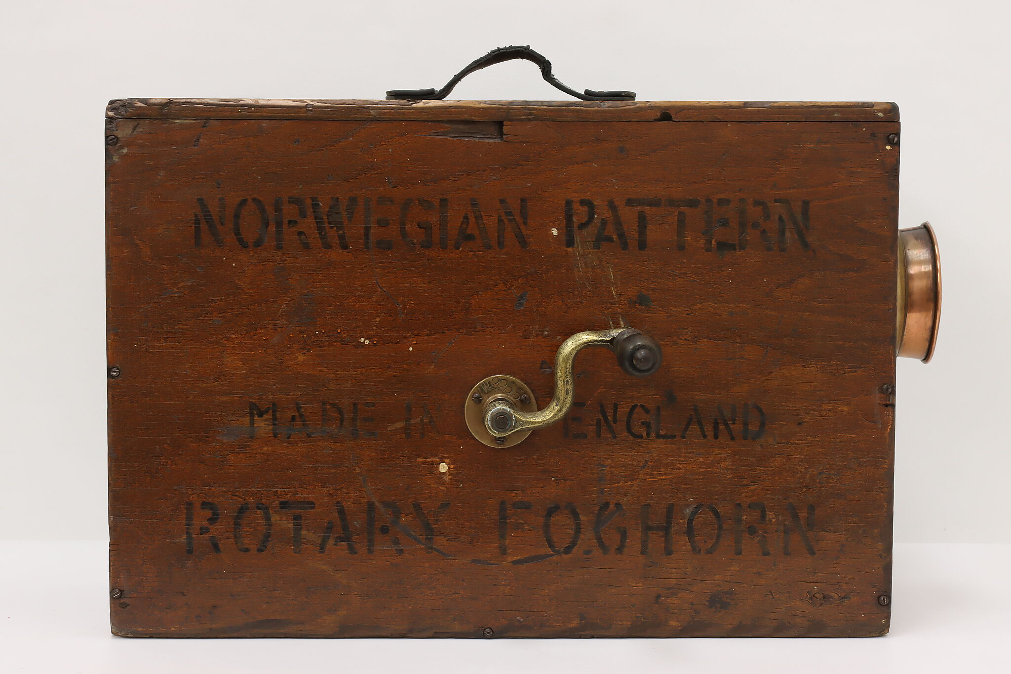 This manual crank operated very loud foghorn would've been an important tool on ships, signaling their position during foggy weather.
