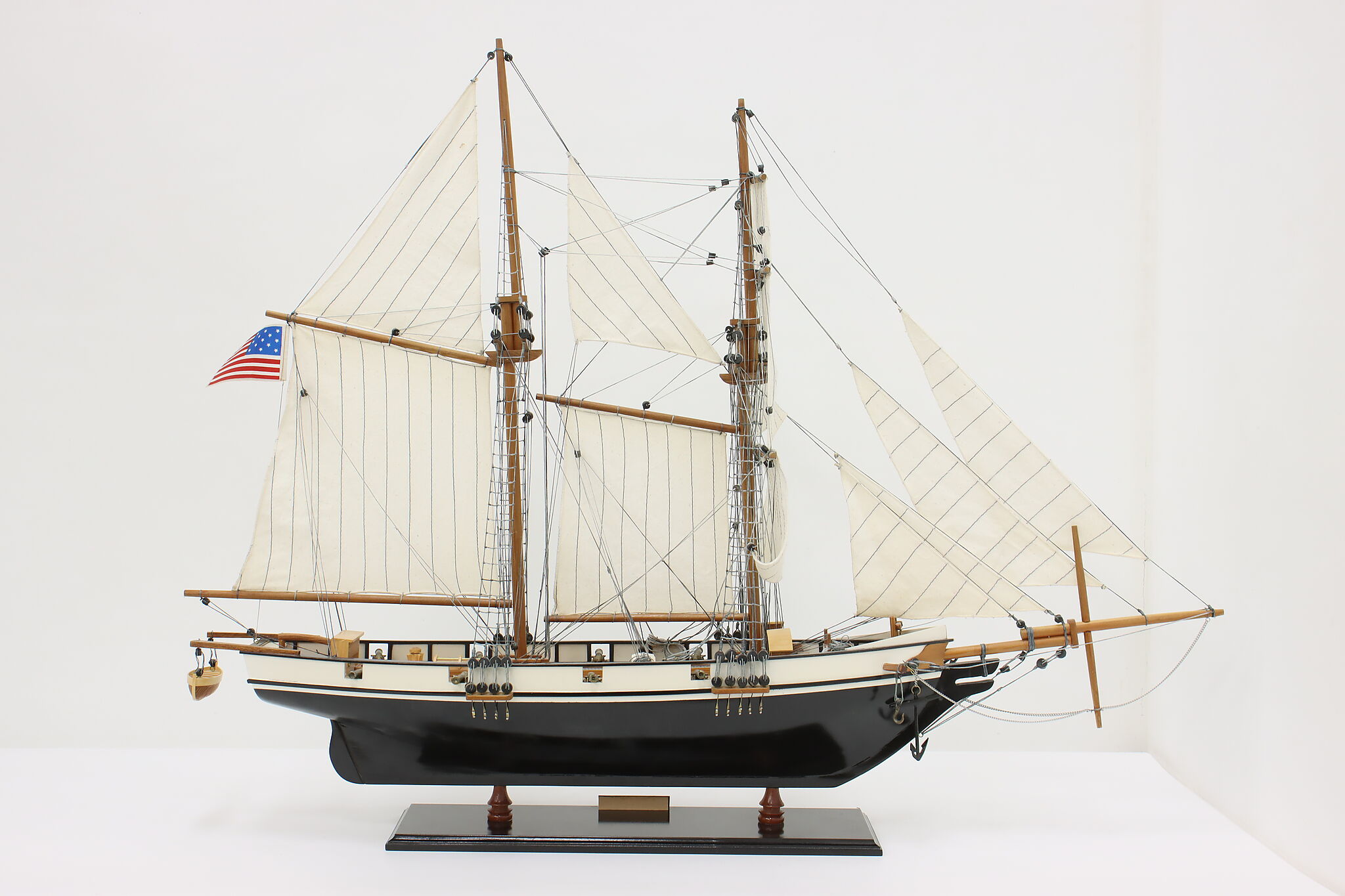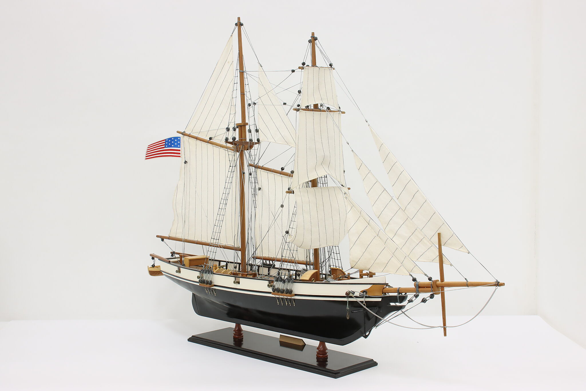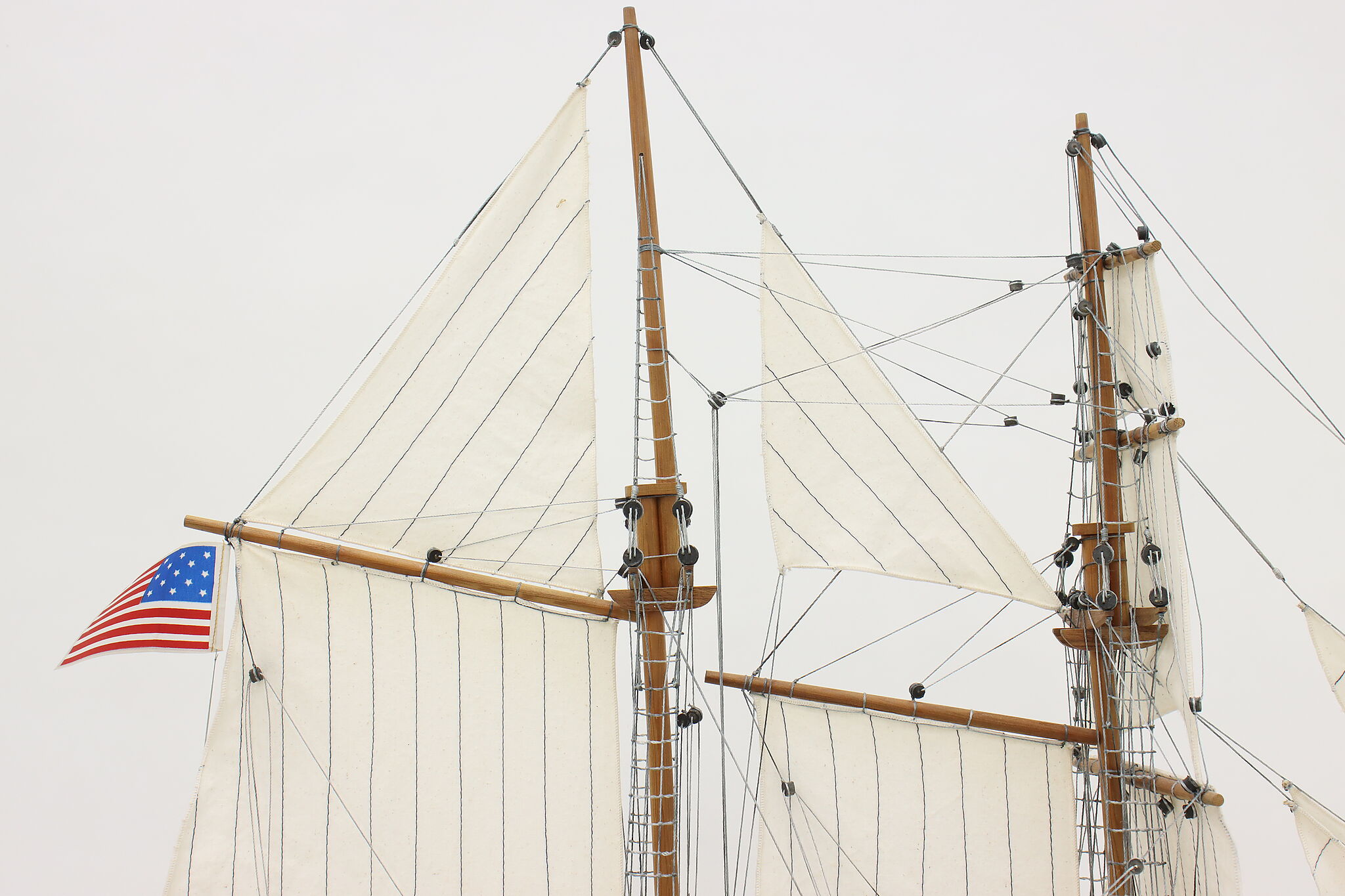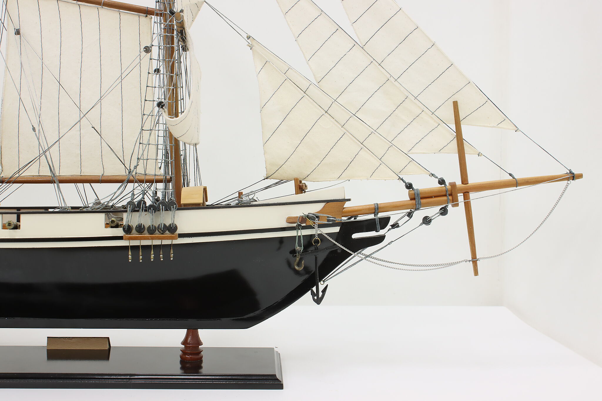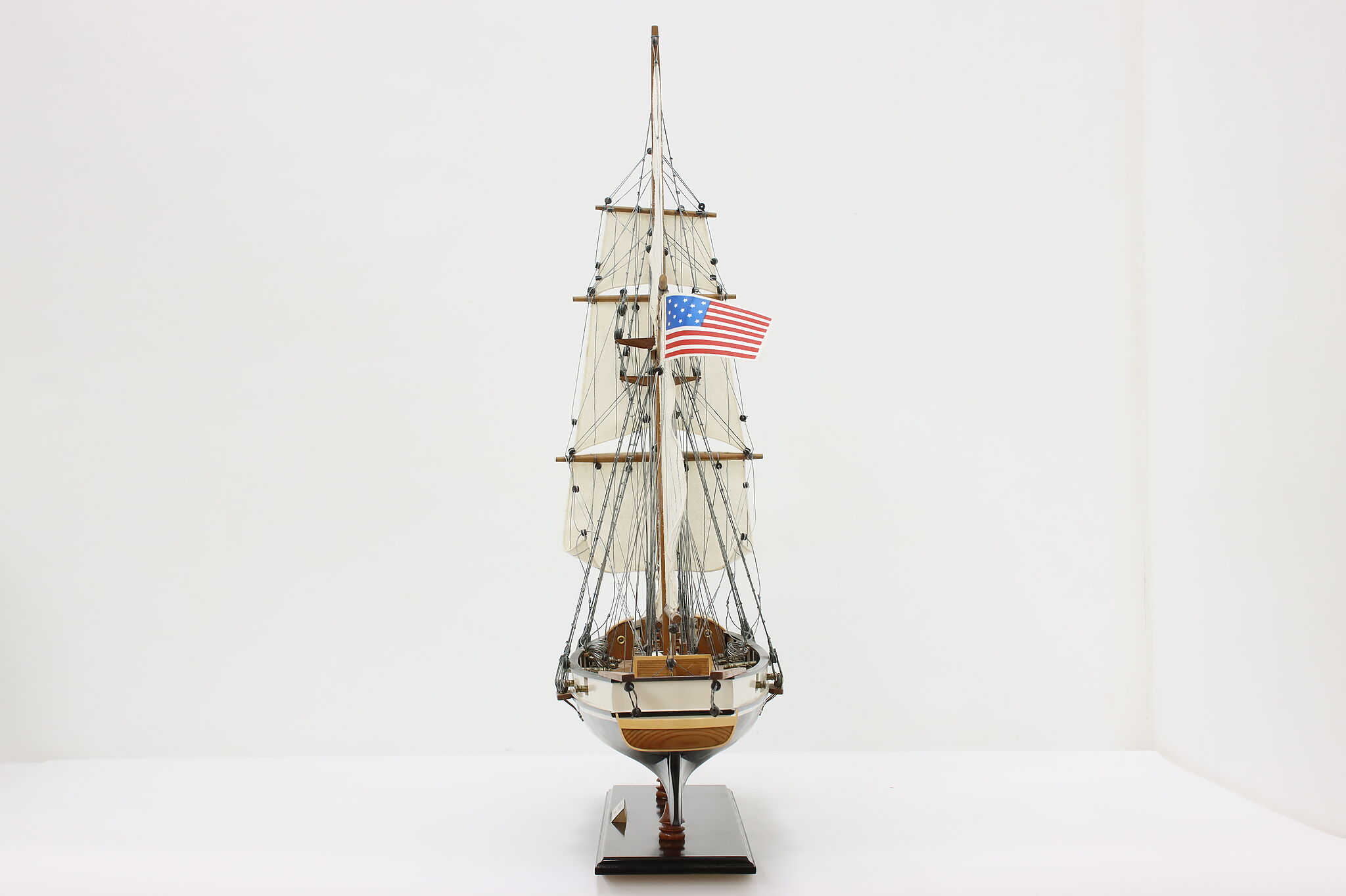 This gorgeous ship model was designed after 19th century Baltimore Clippers, a series of ships that were fast and light for traveling long distances.