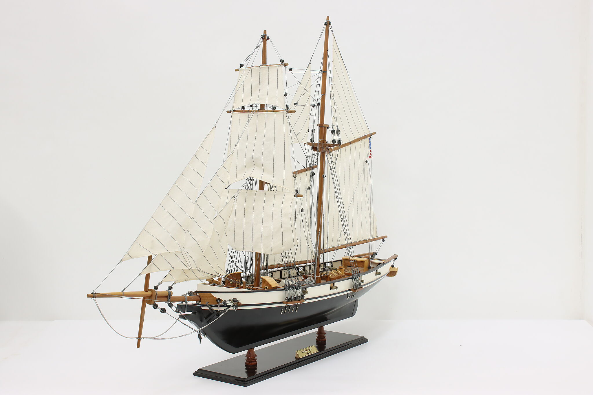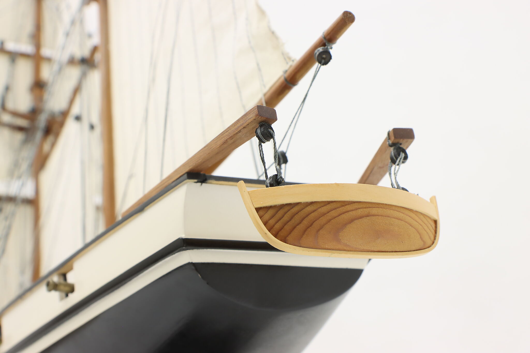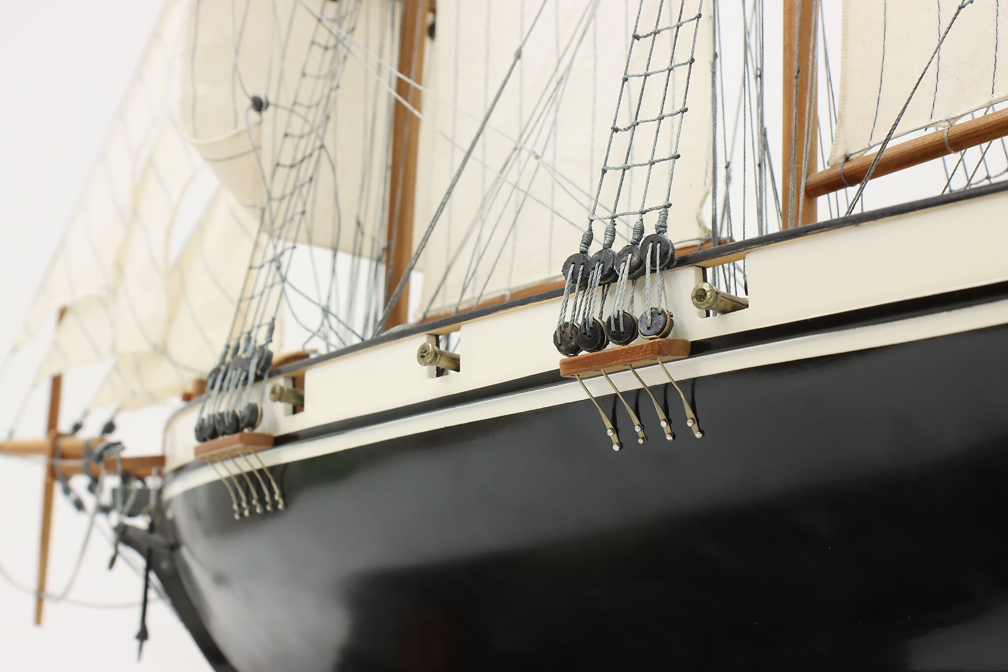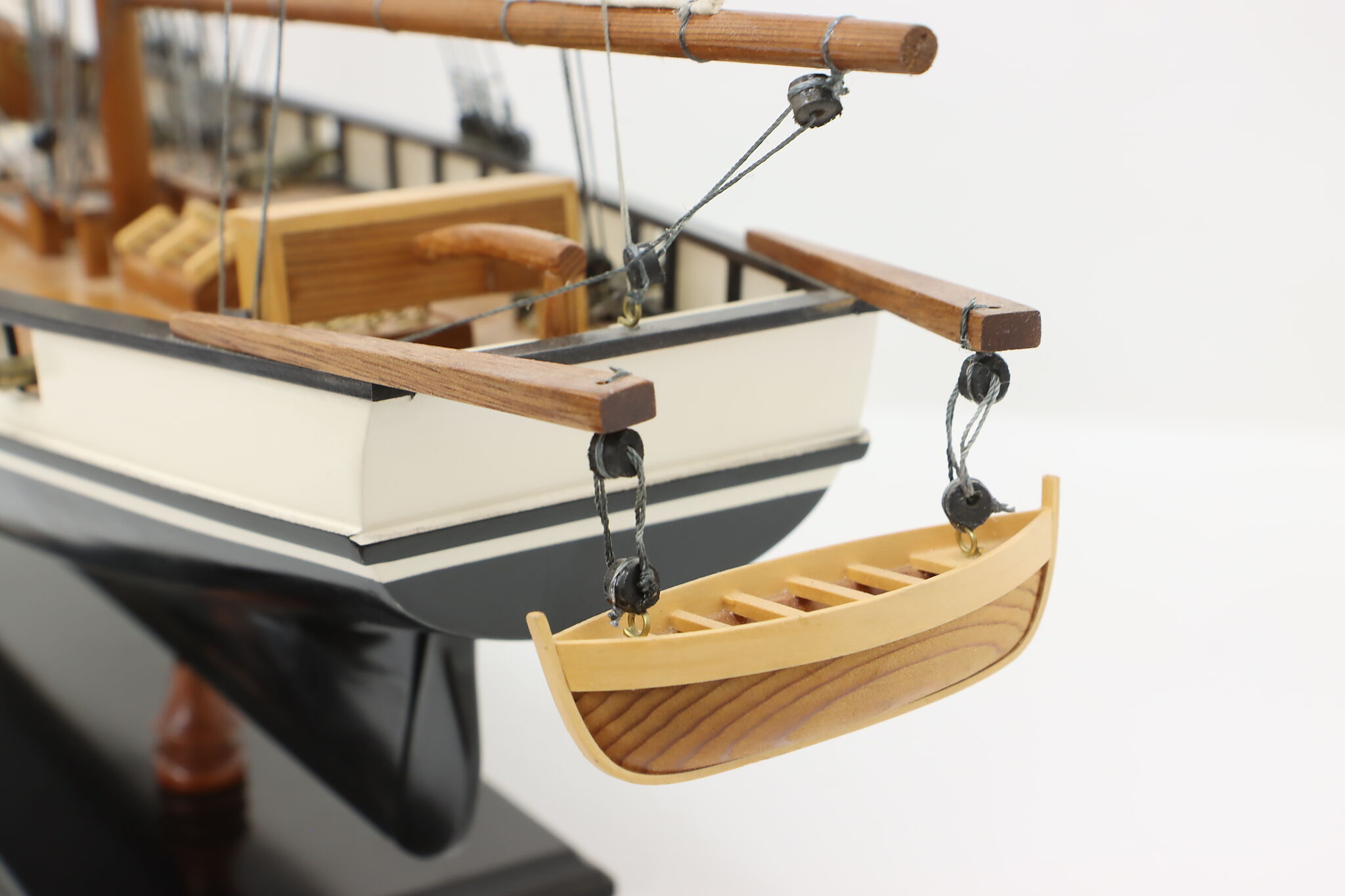 This gorgeous ship model was designed after 19th century Baltimore Clippers, a series of ships that were fast and light for traveling long distances.