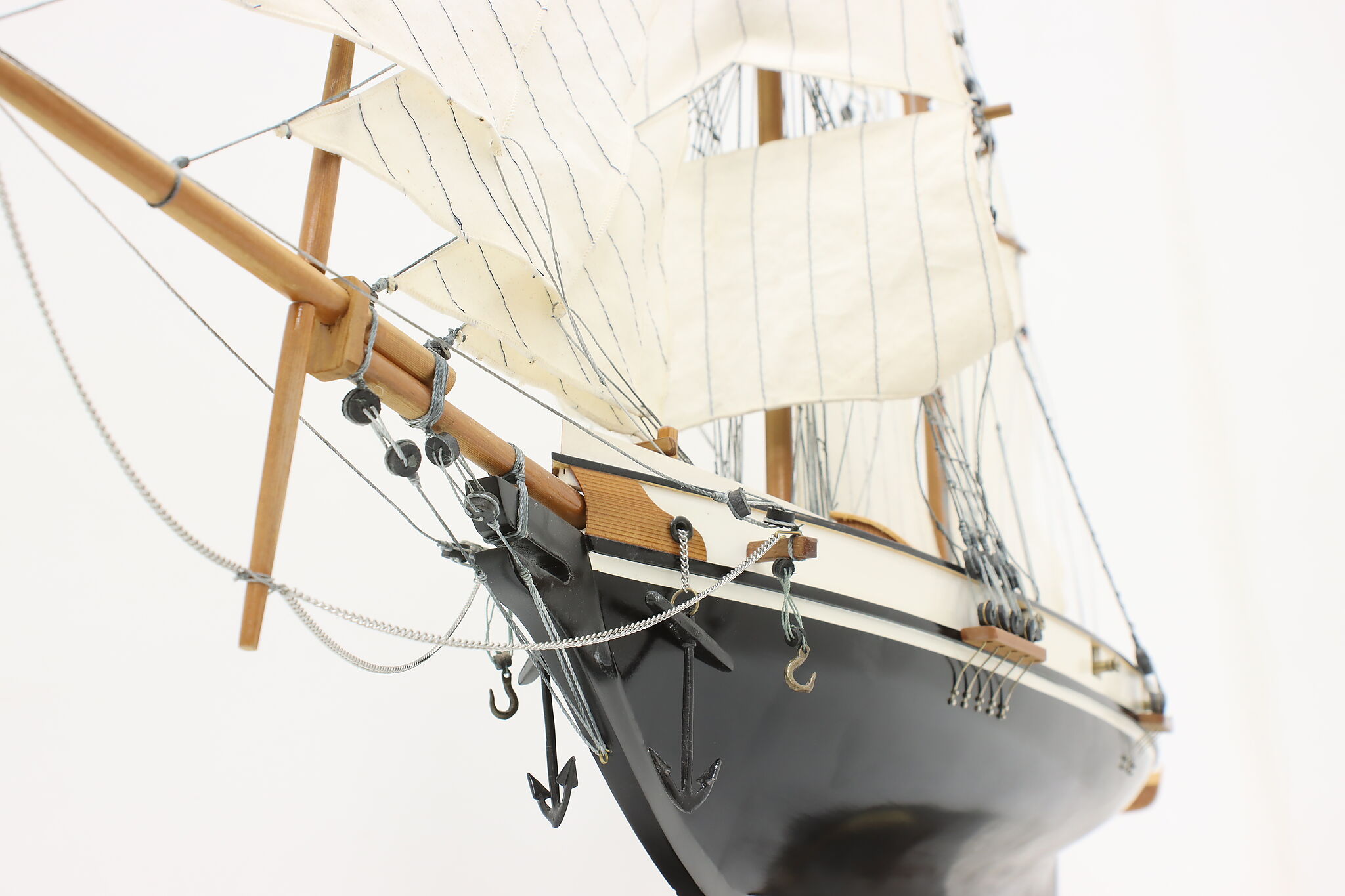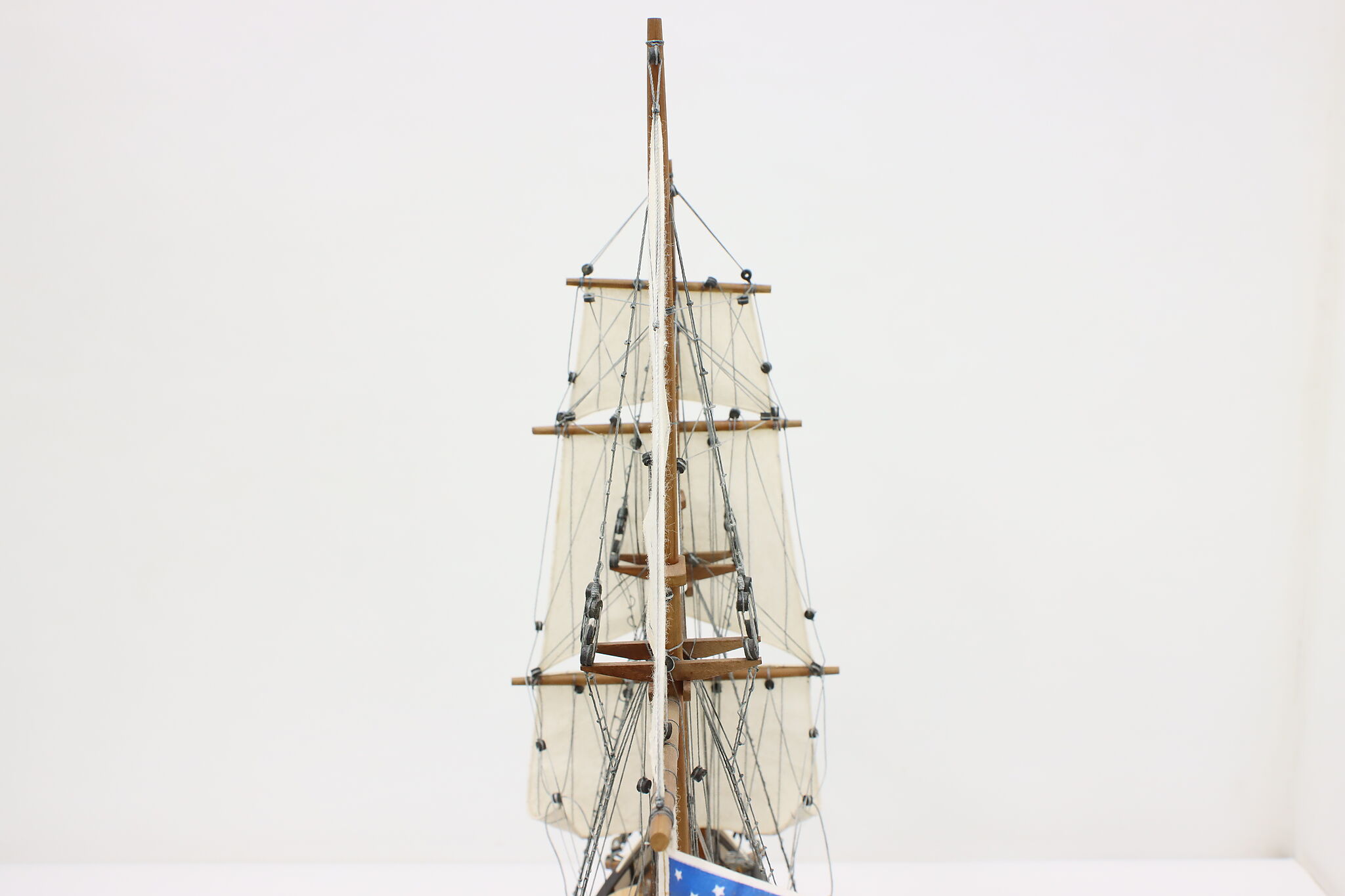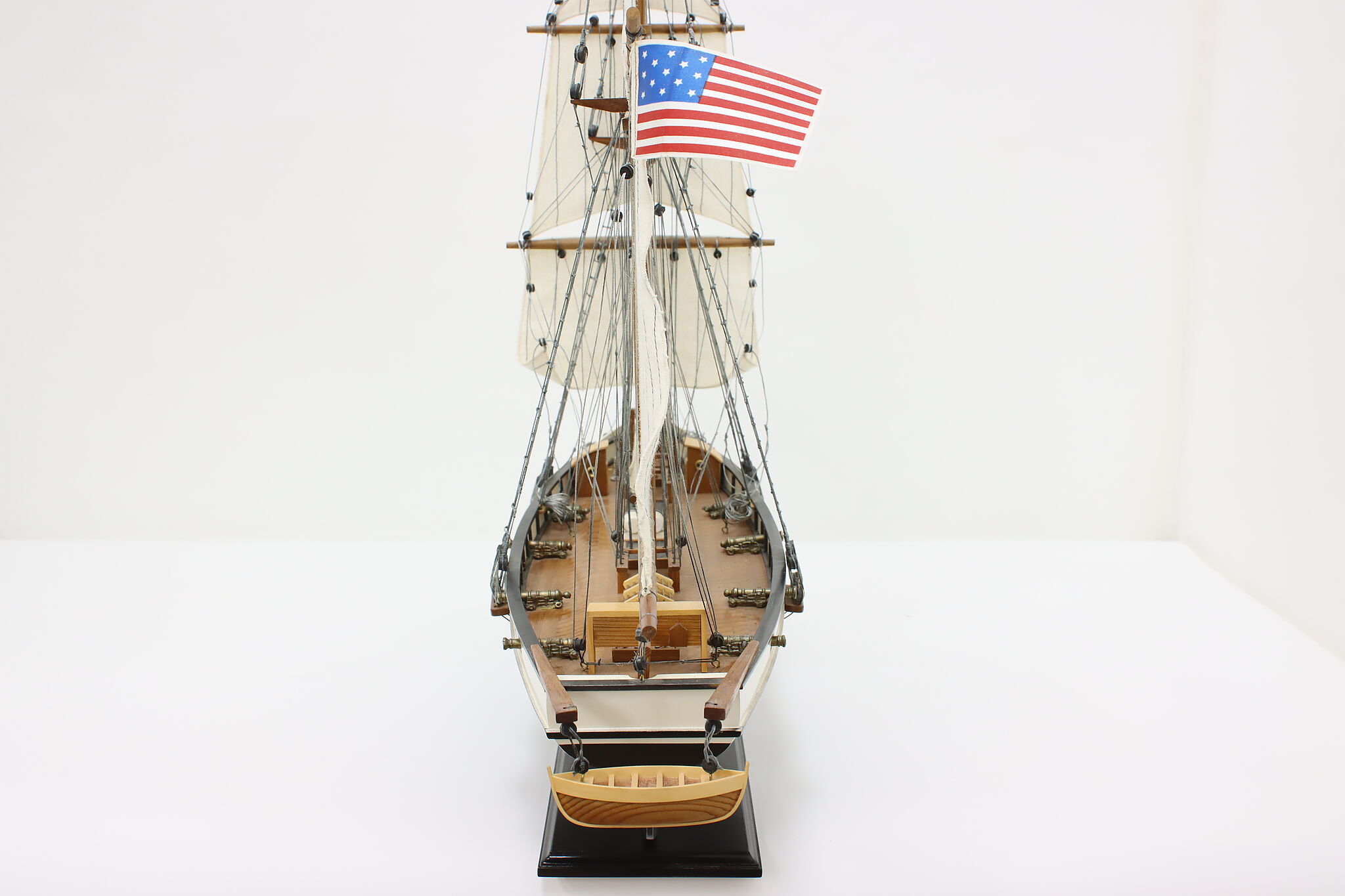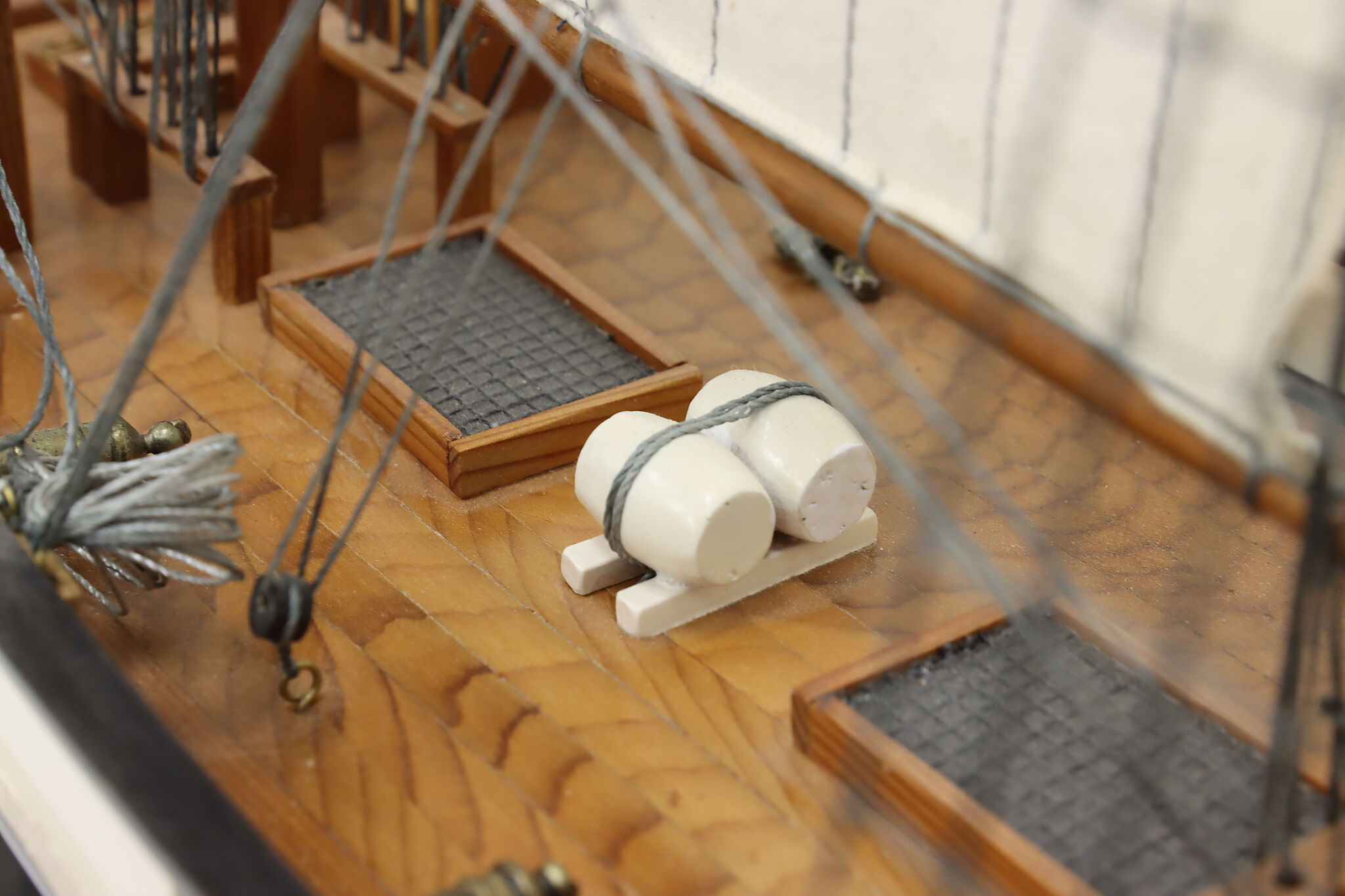 This gorgeous ship model was designed after 19th century Baltimore Clippers, a series of ships that were fast and light for traveling long distances.