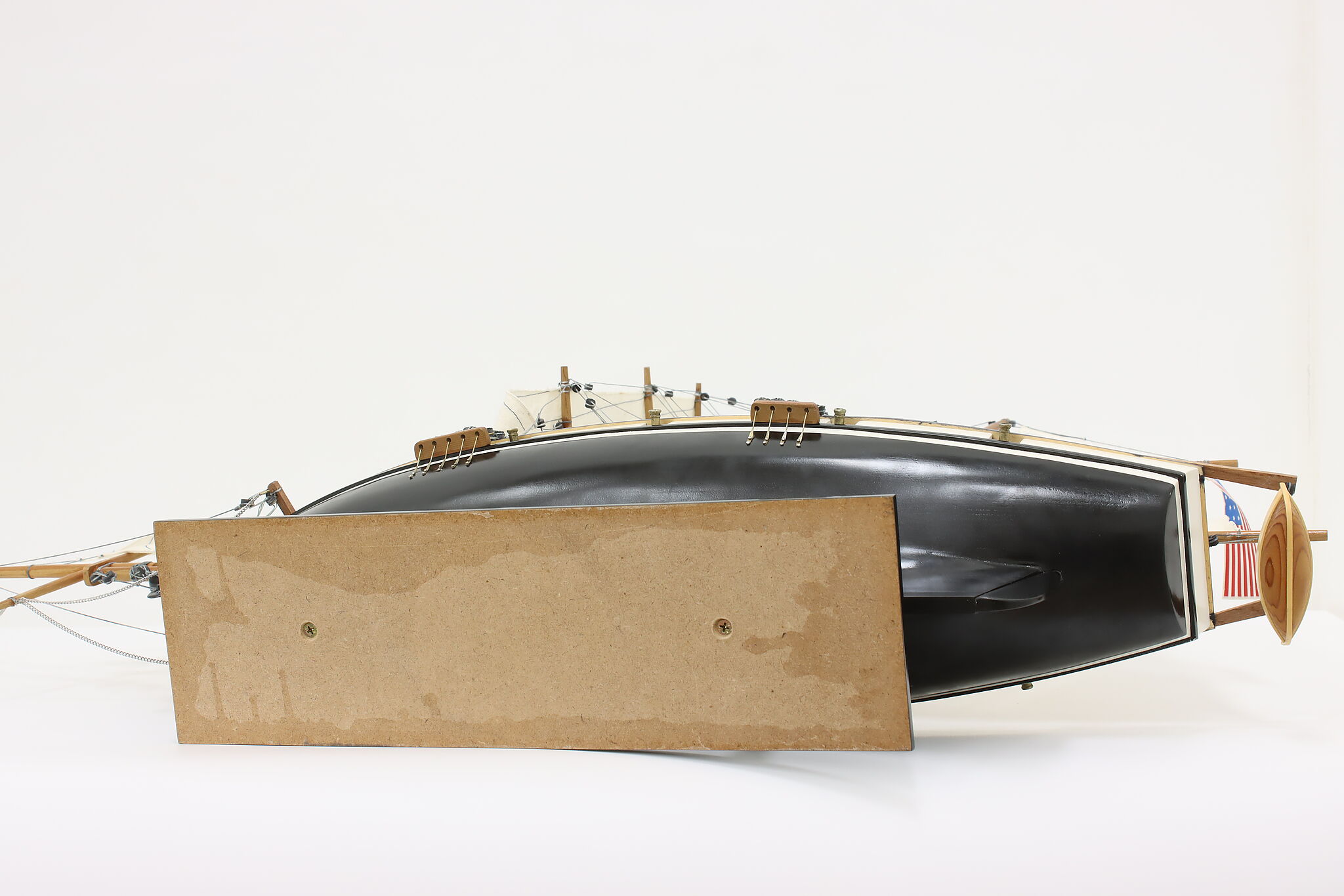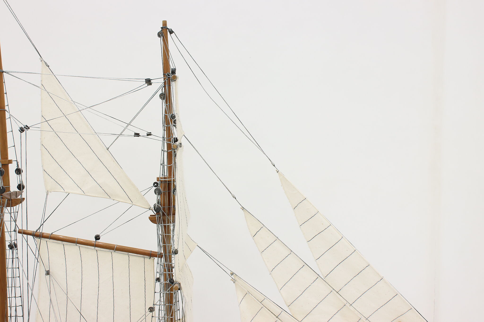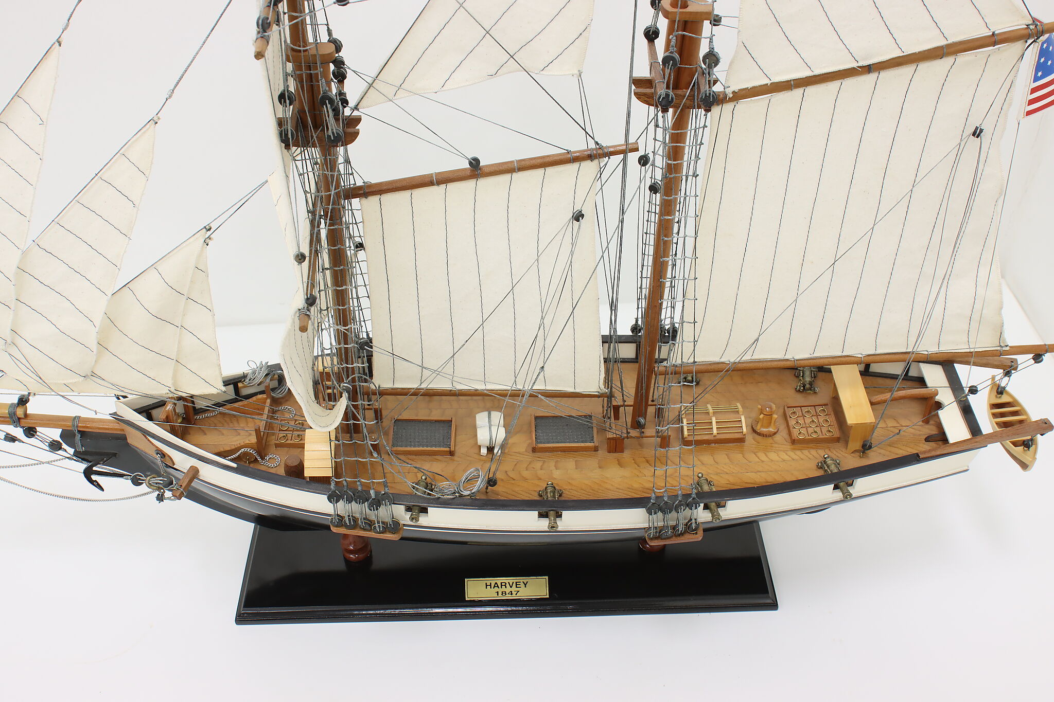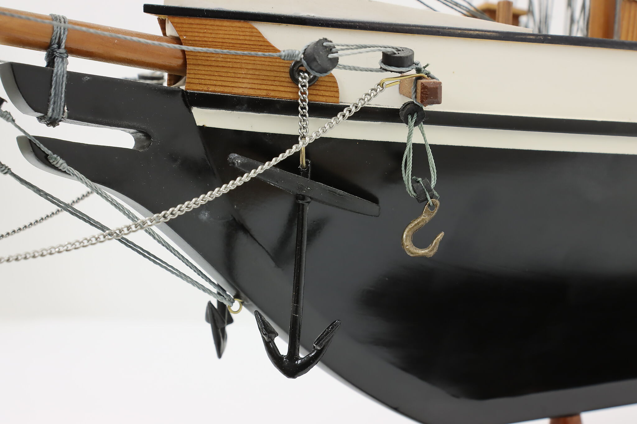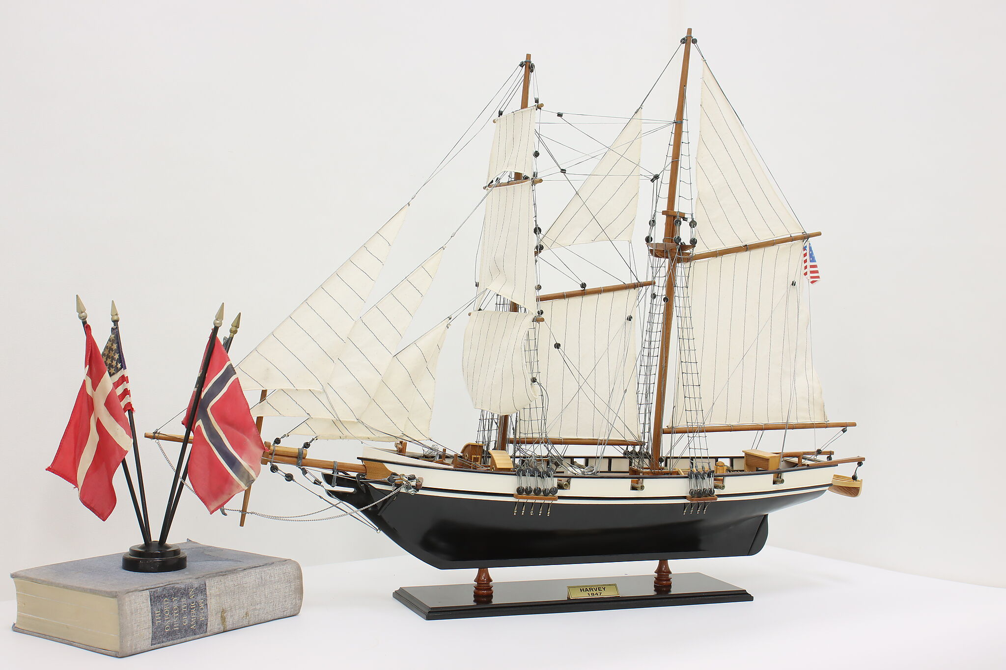 This gorgeous ship model was designed after 19th century Baltimore Clippers, a series of ships that were fast and light for traveling long distances.