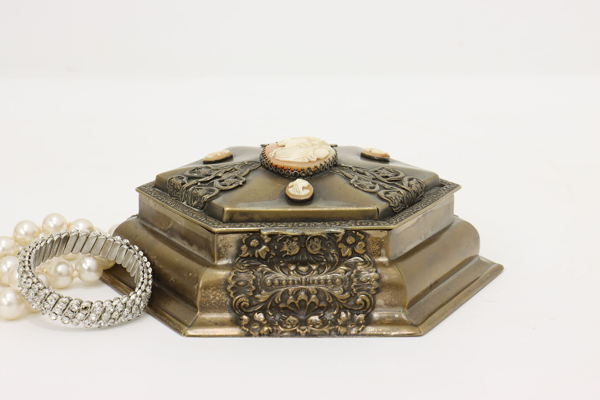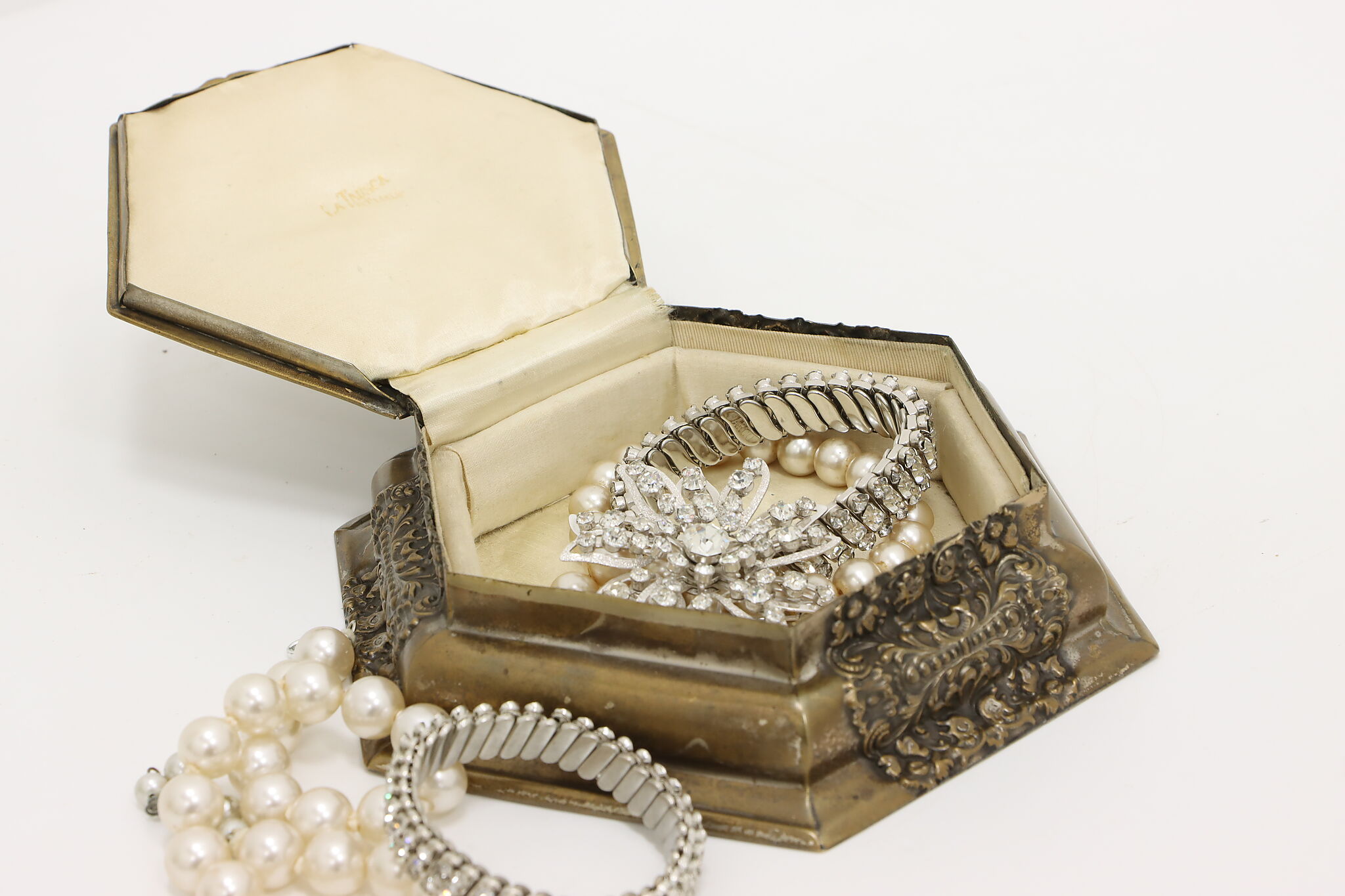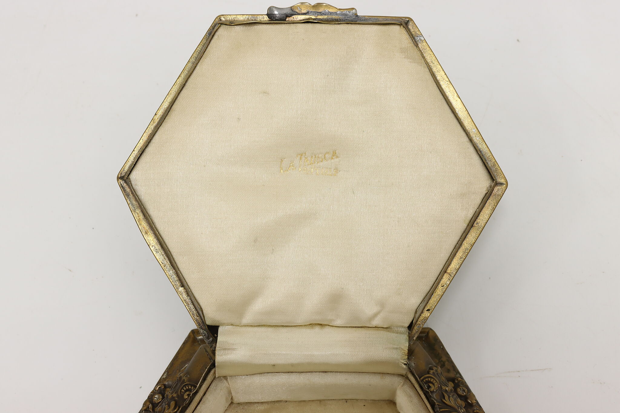 Designed as a presentation box for La Tausca Pearls, this beautiful Art Nouveau box would be a wonderful jewelry or keepsake box.