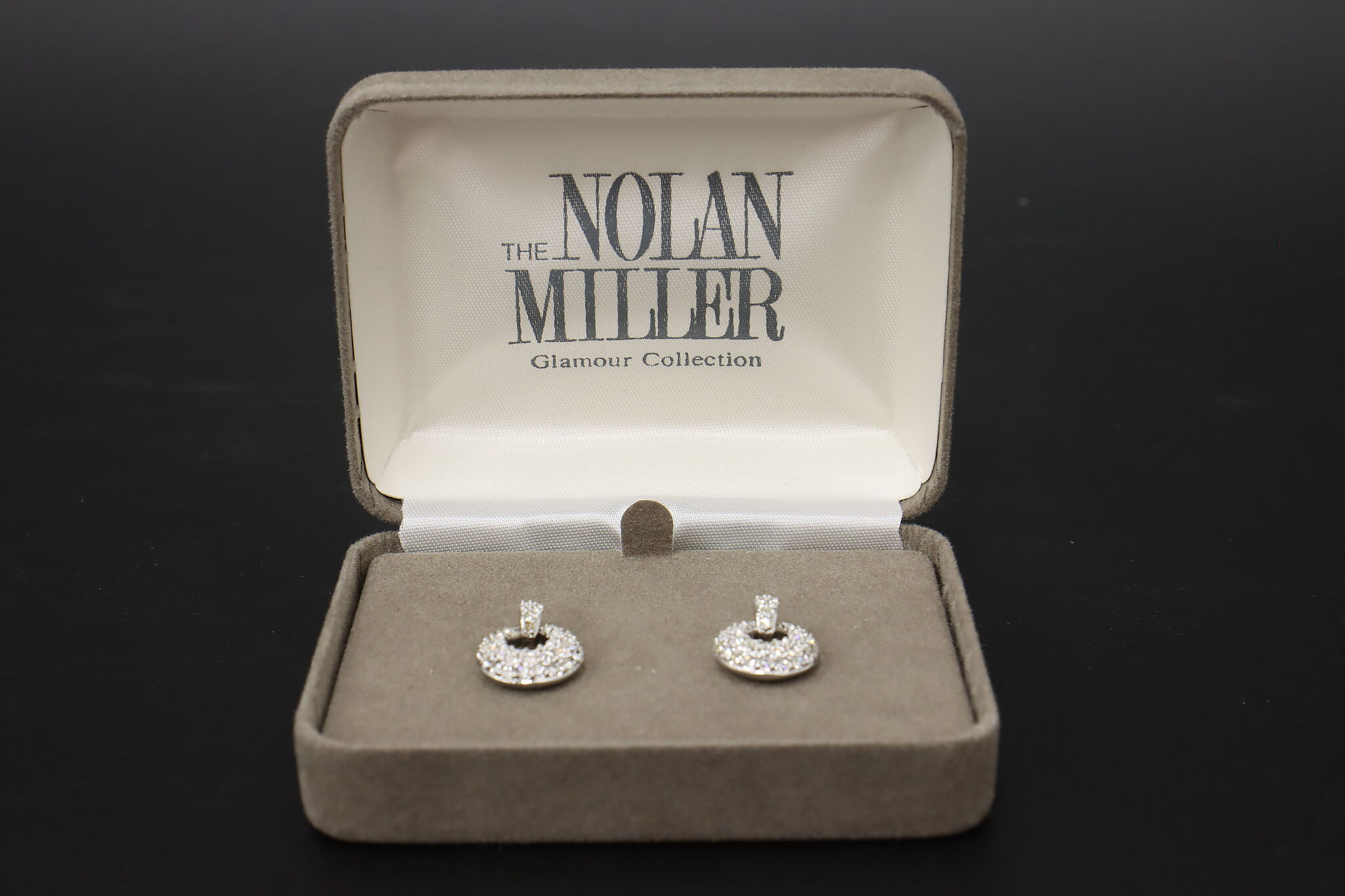 Stylish designer costume jewelry earrings from the Nolan Miller Glamour Collection. These earrings offer a bright, elegant sparkle and come with the original presentation box and booklet.