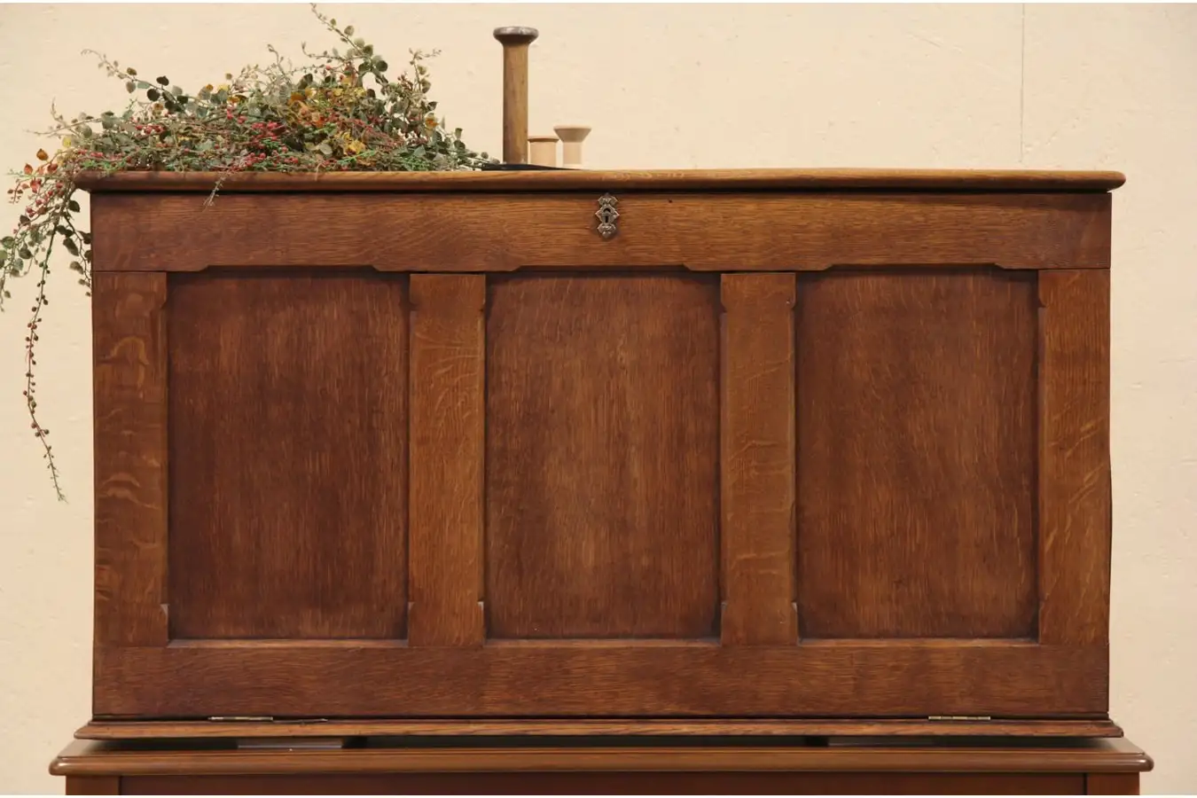 Crafted of solid quarter sawn oak about 1870 as a hotel mailbox and ledger cabinet, this countertop or desk top file has a locking drop front.