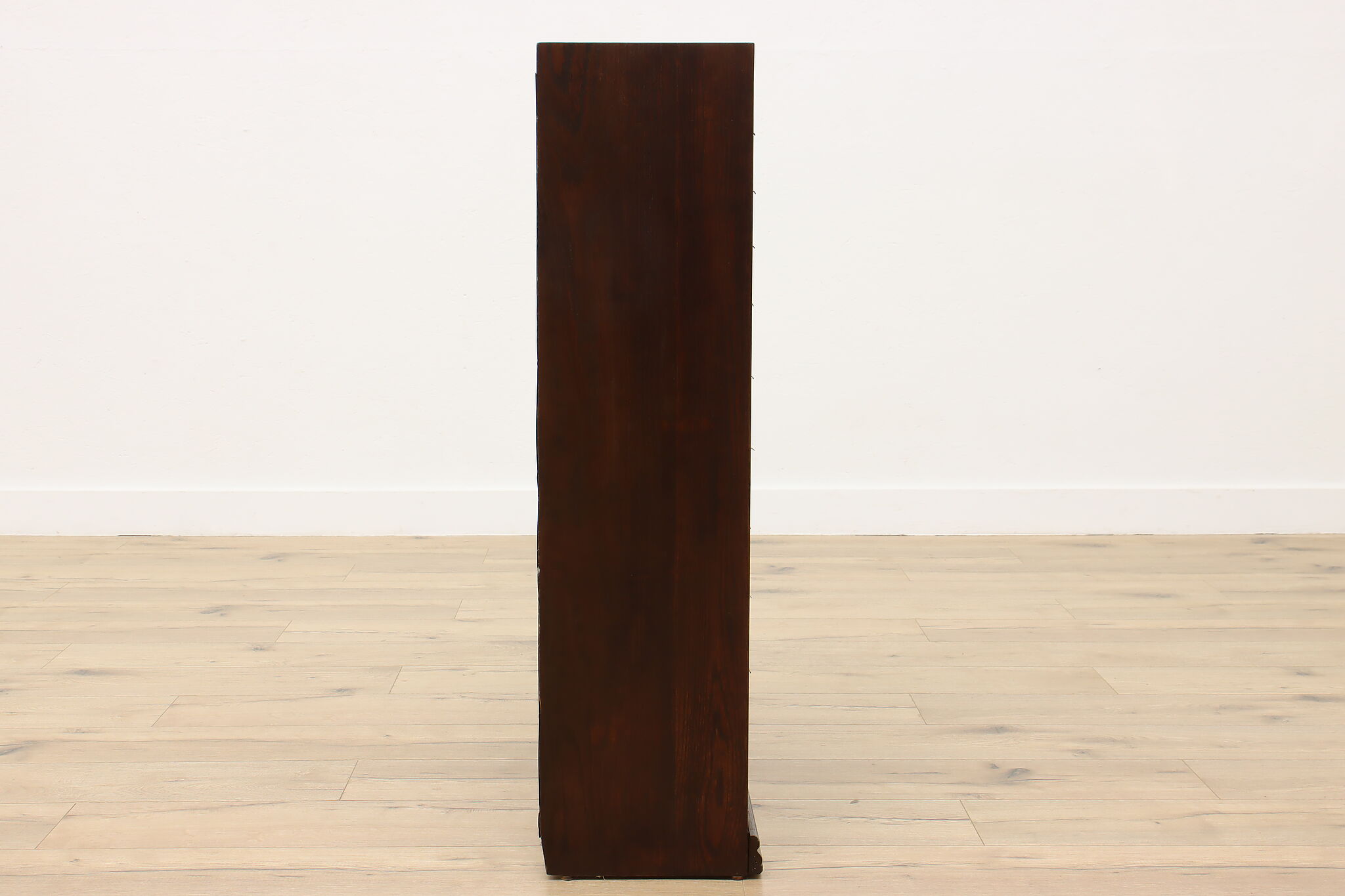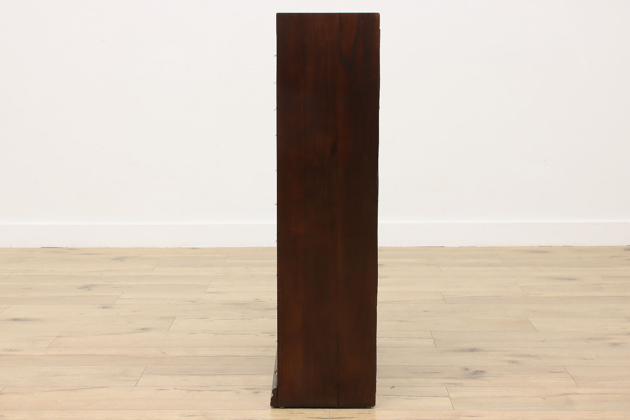 Size is 26" wide, 11" deep and 42" tall. Small drawer size is 3" wide, 8.5" deep and 3" tall. Large drawer size is 3.5" wide, 8.5" deep and 4" tall.