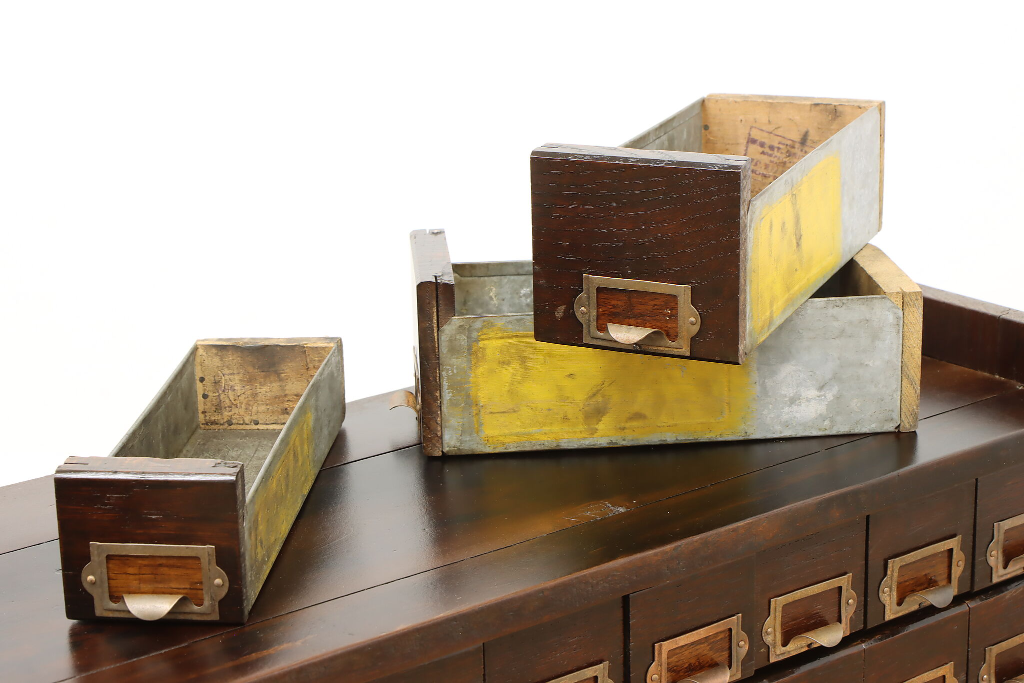 This small seventy four drawer file cabinet would be right at home in a hardware store or garage for small parts.
