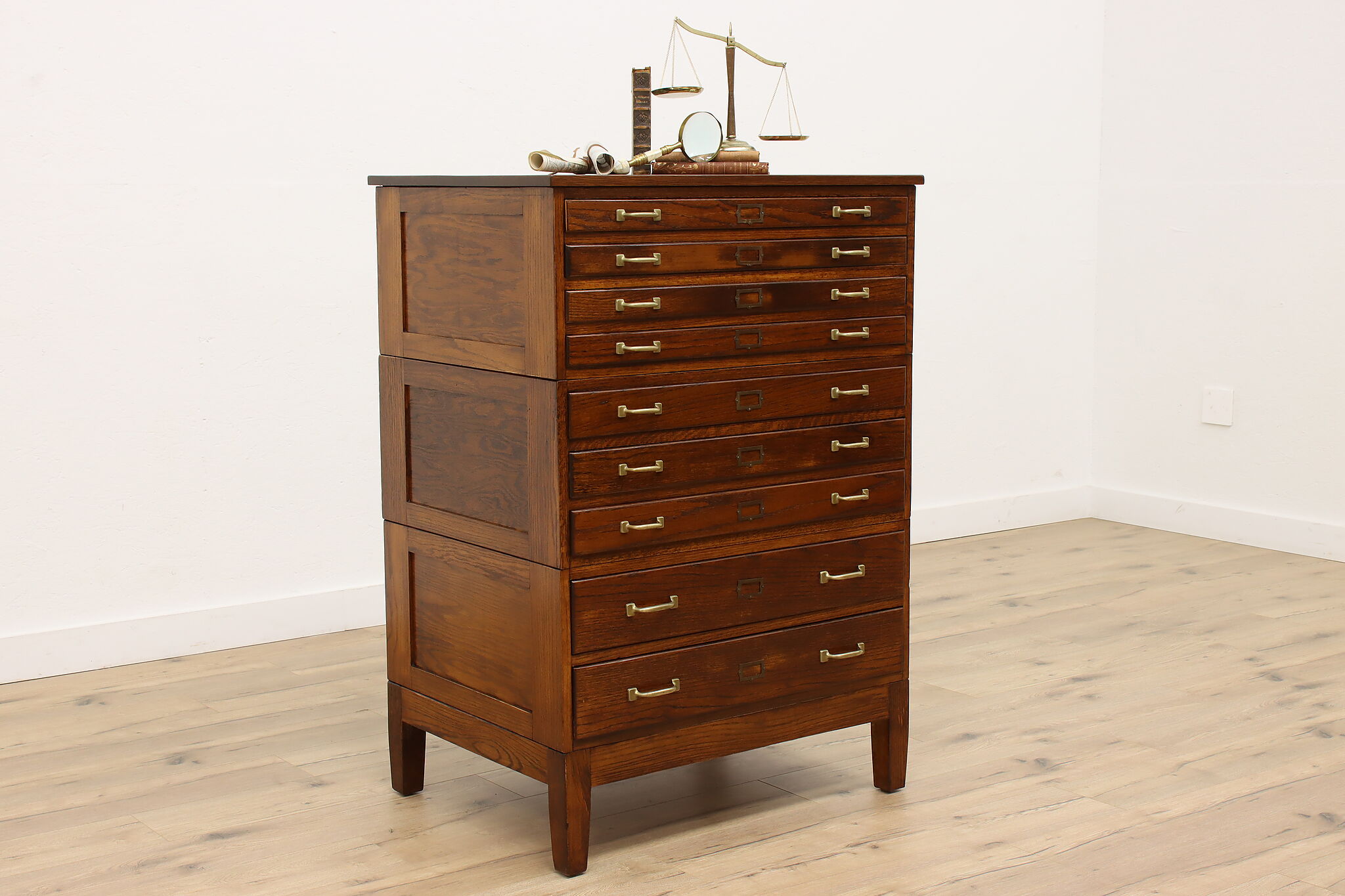 A marvelous stacking map chest, drawing or collector file has 9 wide file drawers of various depths.