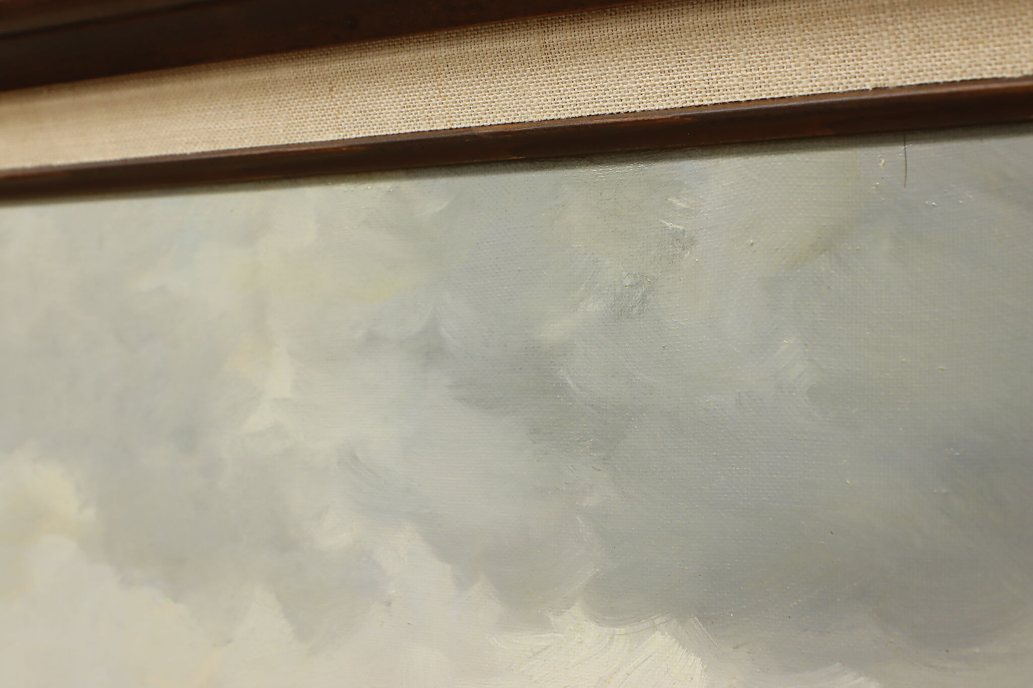 The crew of this ship are on a long journey across a vast ocean in this fantastic painting.