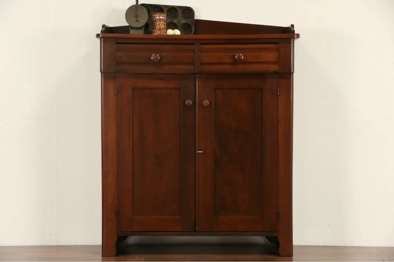 Said to be from Ohio, this solid walnut antique pantry jelly cupboard was entirely hand crafted by a skilled country carpenter. The satiny finish is in excellent condition.