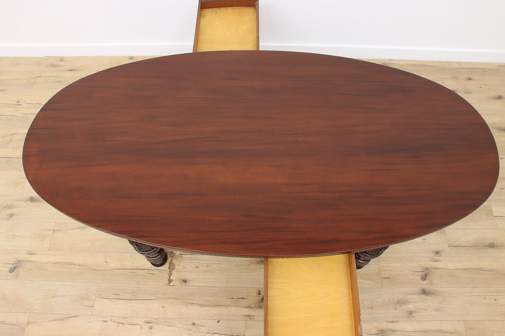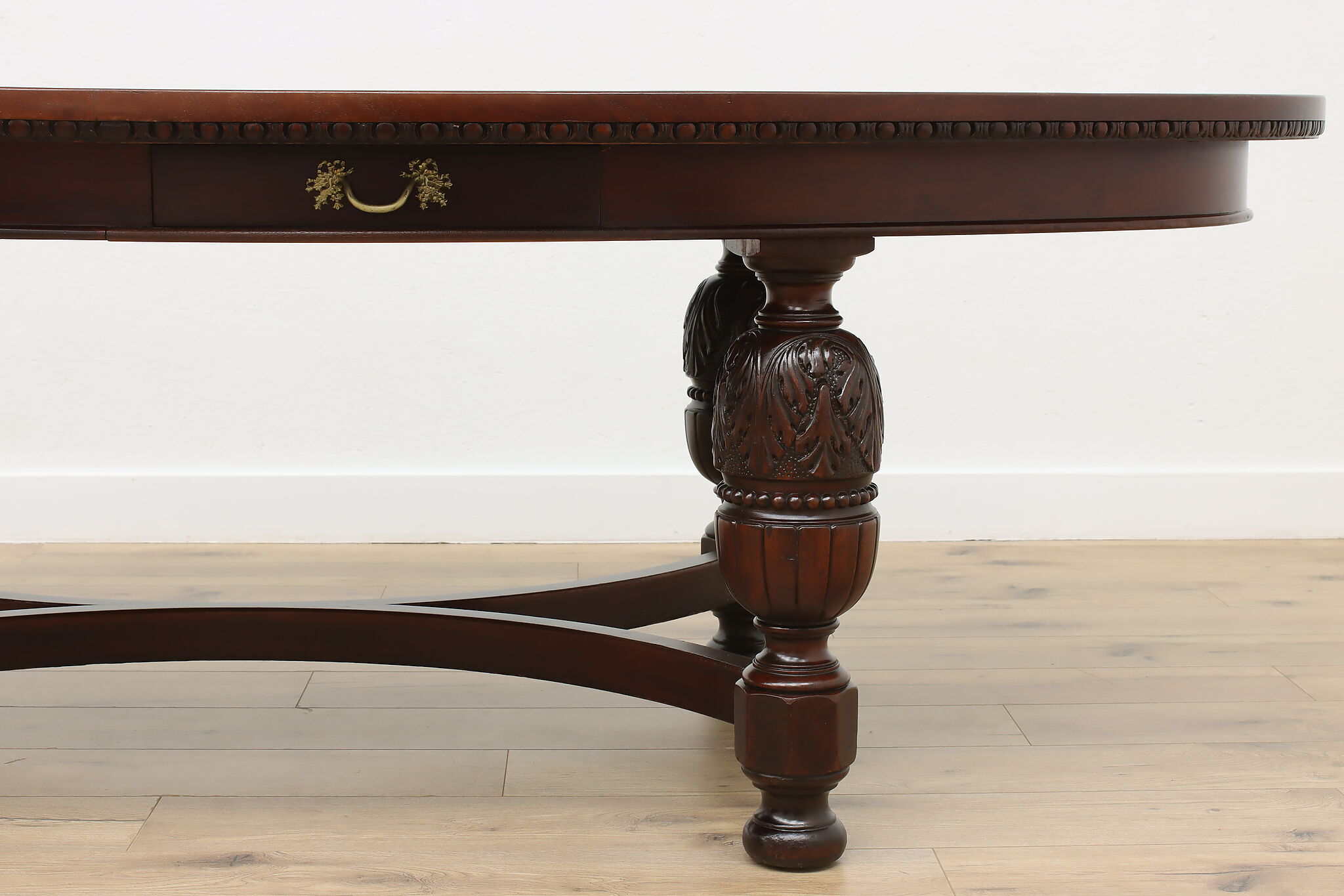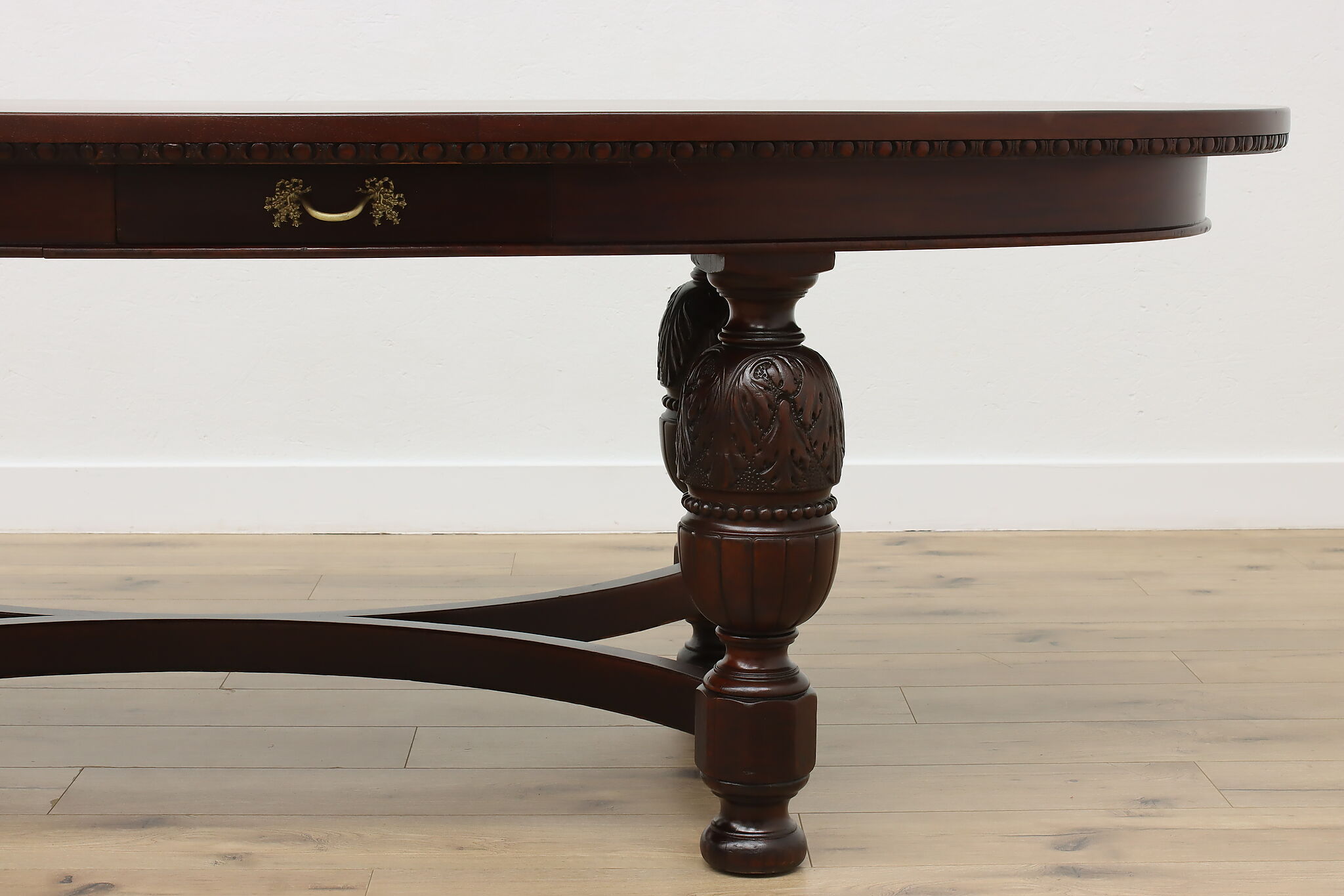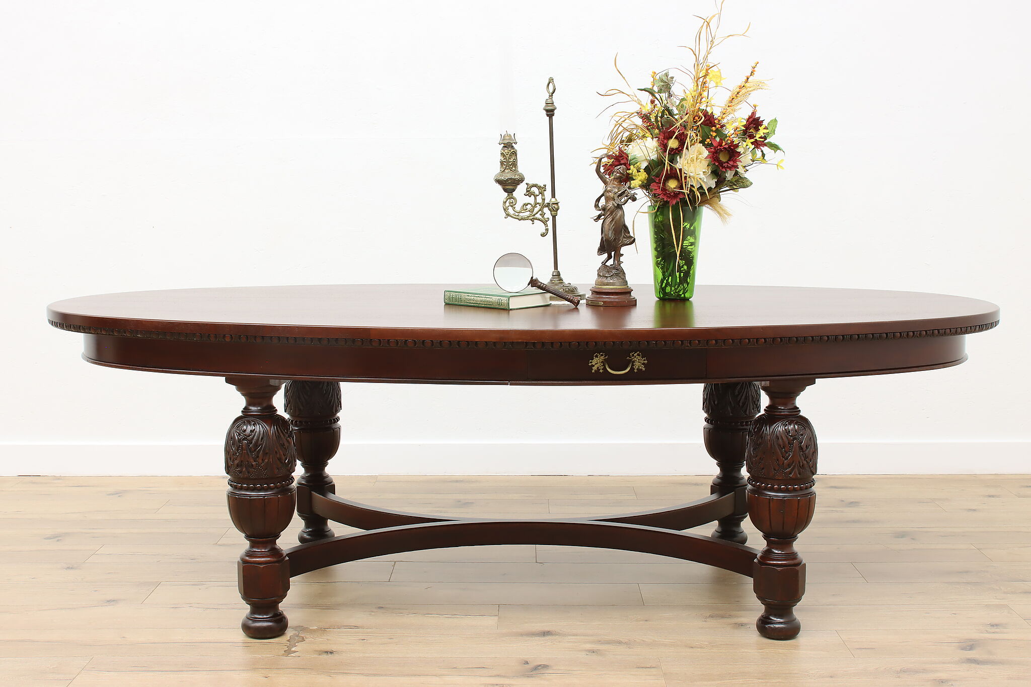 This gorgeous eight foot oval "partner" desk has a drawer for each facing partner, and could also be a dramatic dining table.