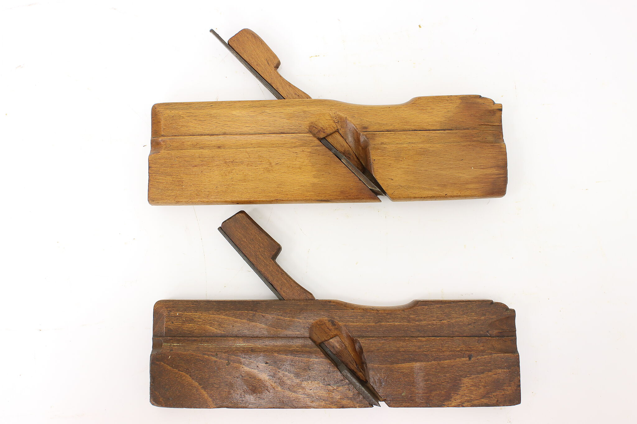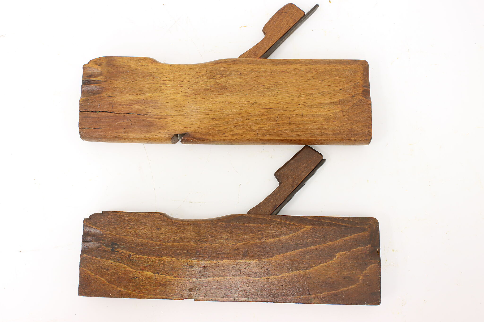 A pair of molding planes were used by a carpenter to make decorative molding shapes or "profiles" on furniture and woodwork.