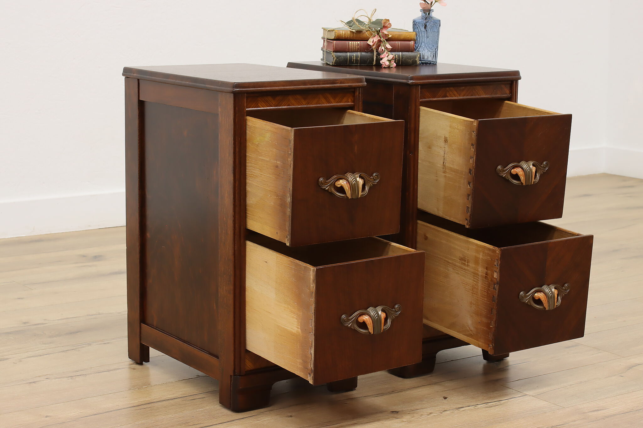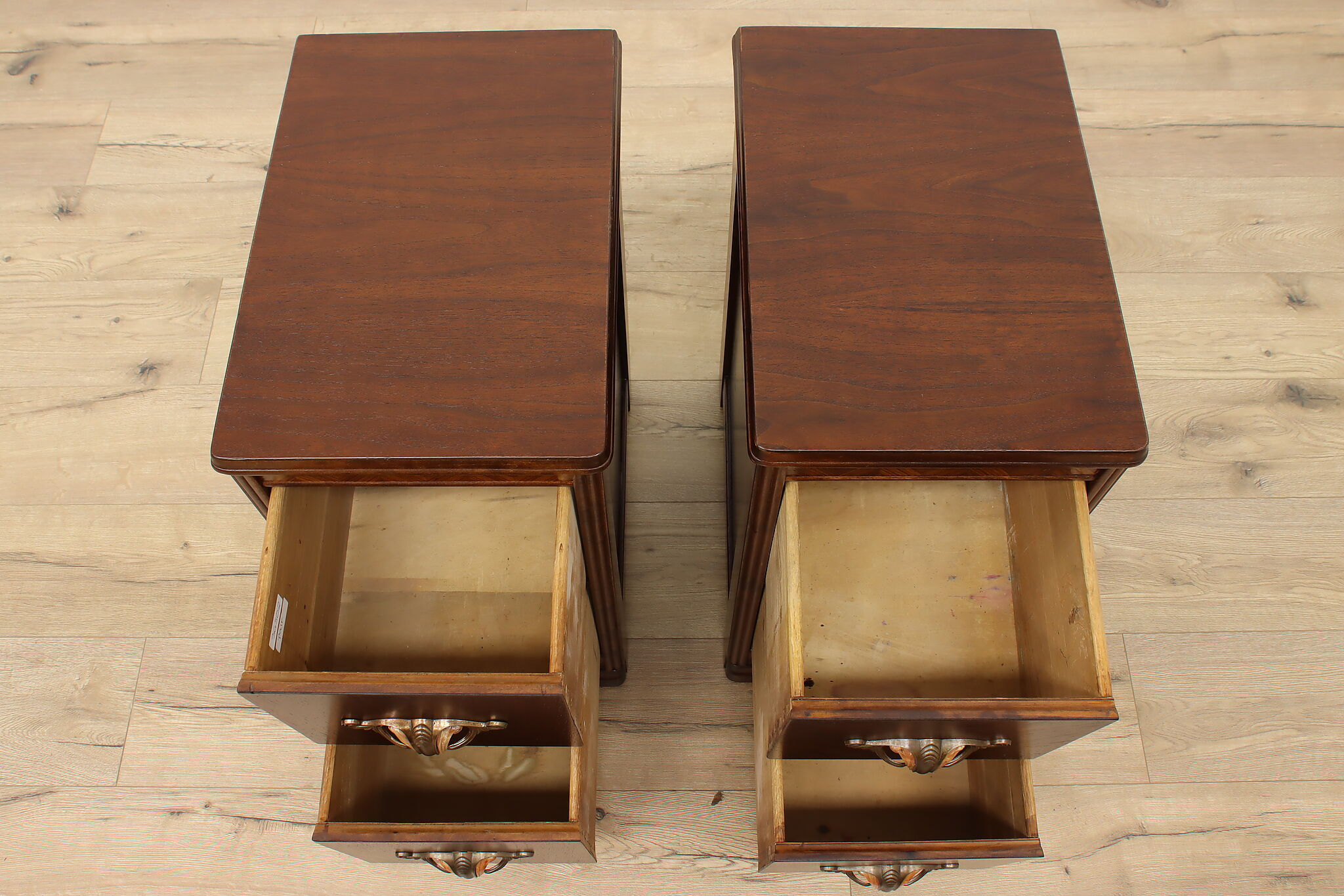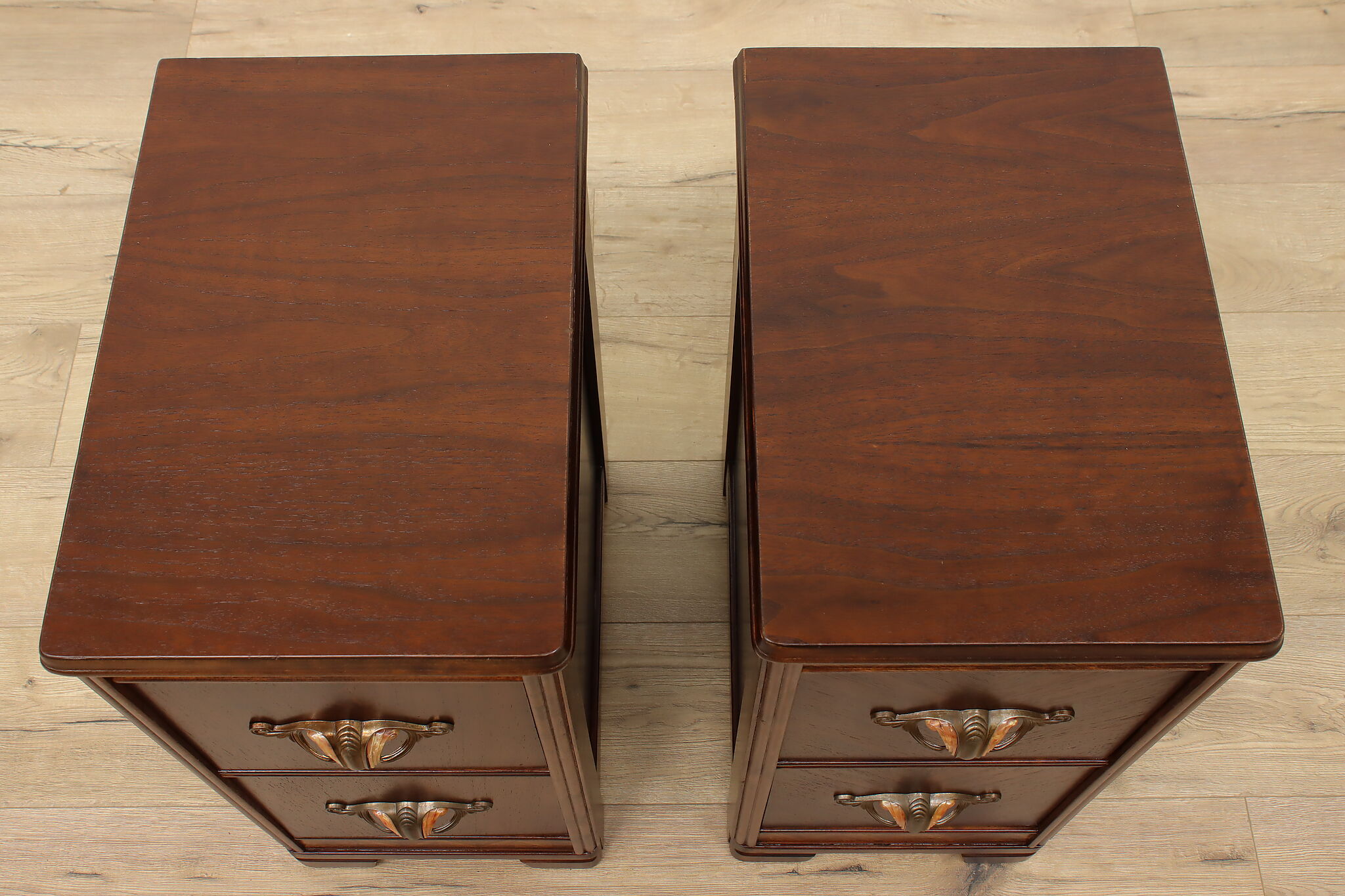 Who doesn't love functional furniture pieces that can have multiple uses? This pair of Art Deco nightstands would also work wonderfully as end or side tables.