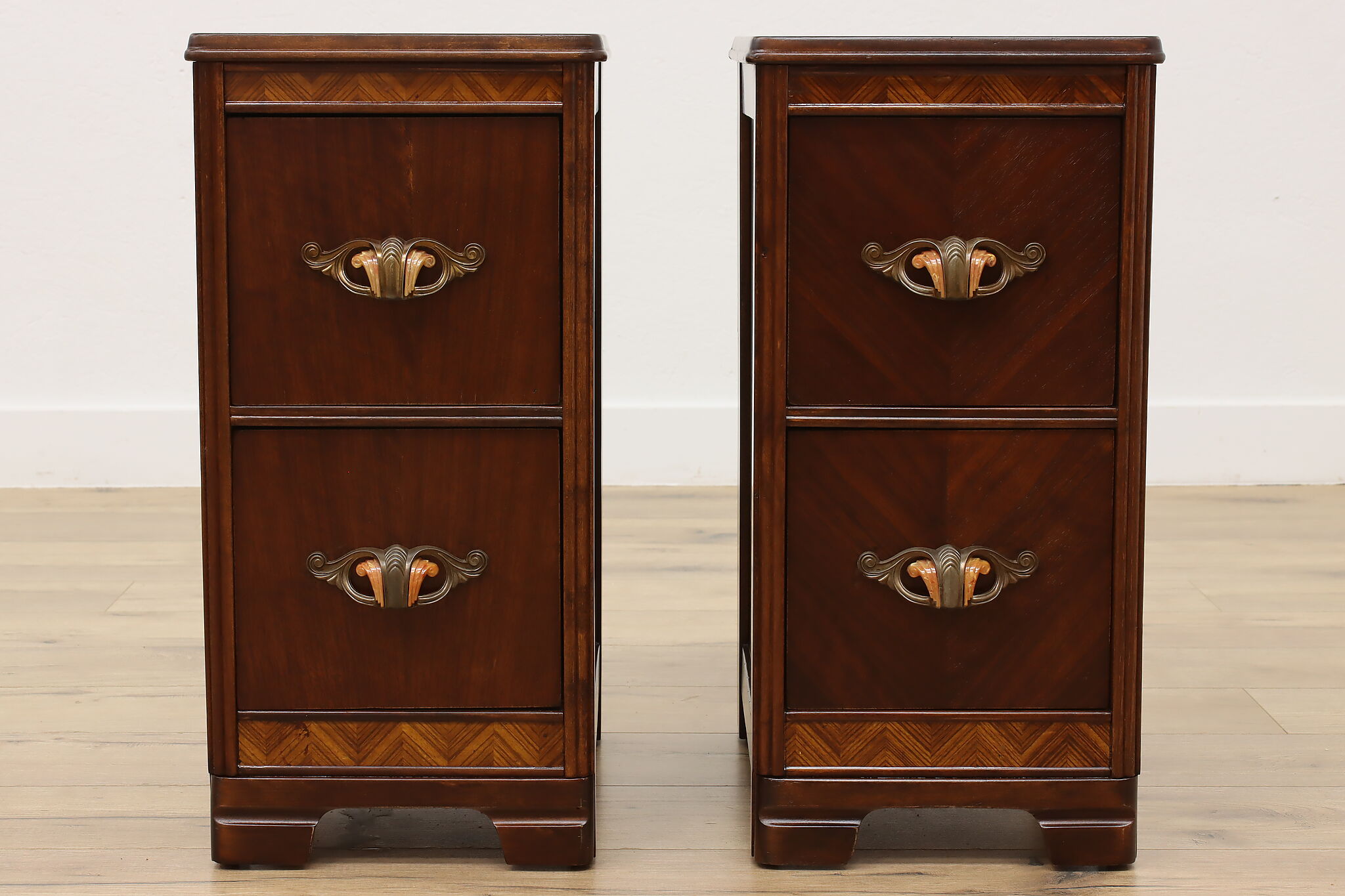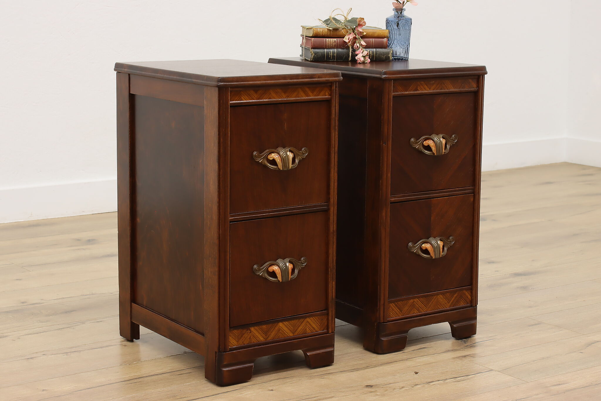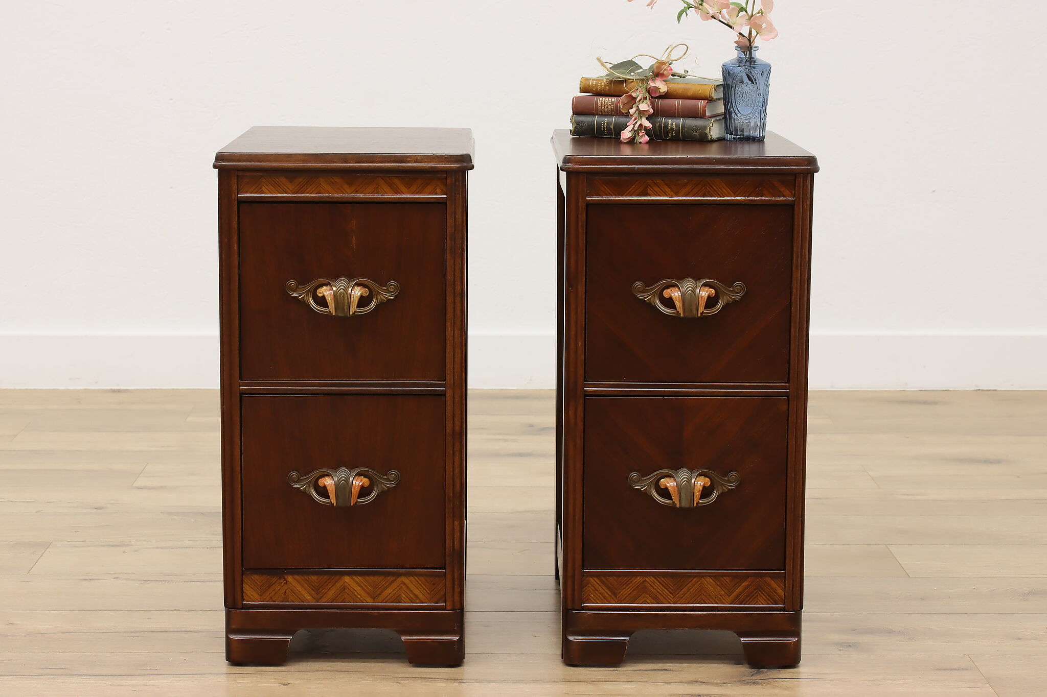 Who doesn't love functional furniture pieces that can have multiple uses? This pair of Art Deco nightstands would also work wonderfully as end or side tables.