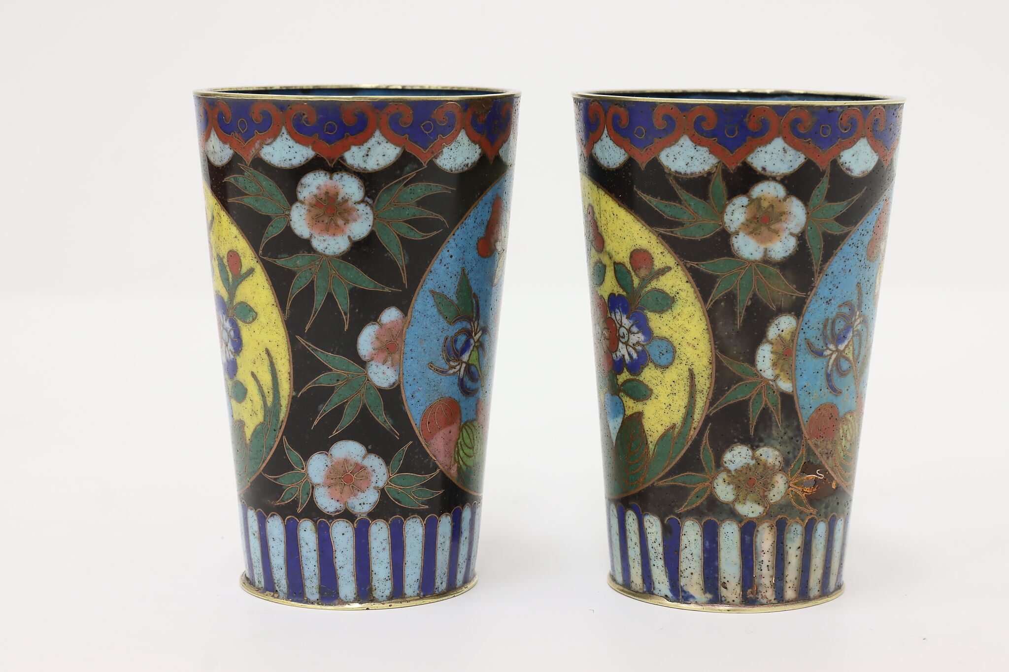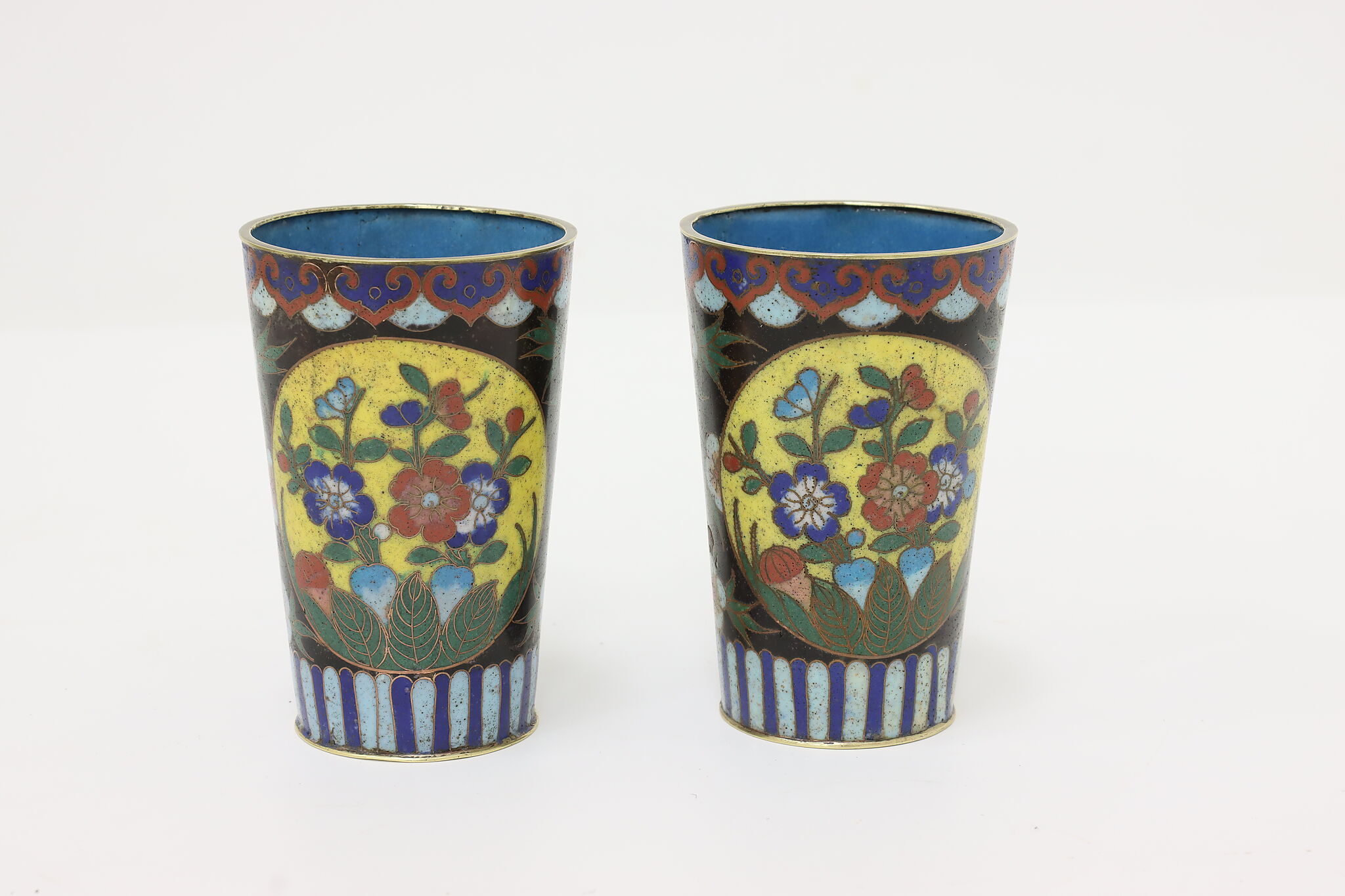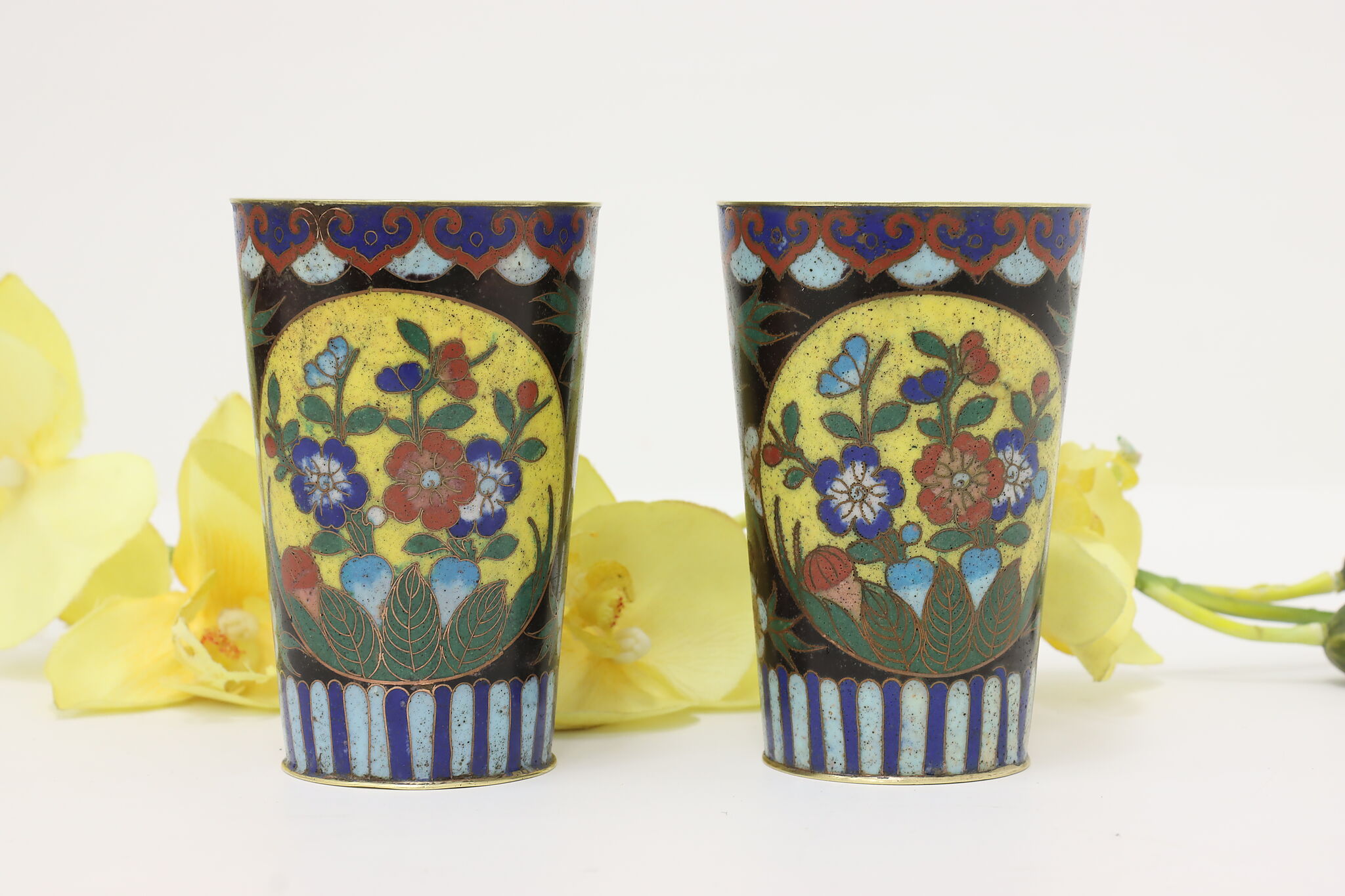 Decorate your bookshelf or curio cabinet with this lovely pair of cloisonne cups.