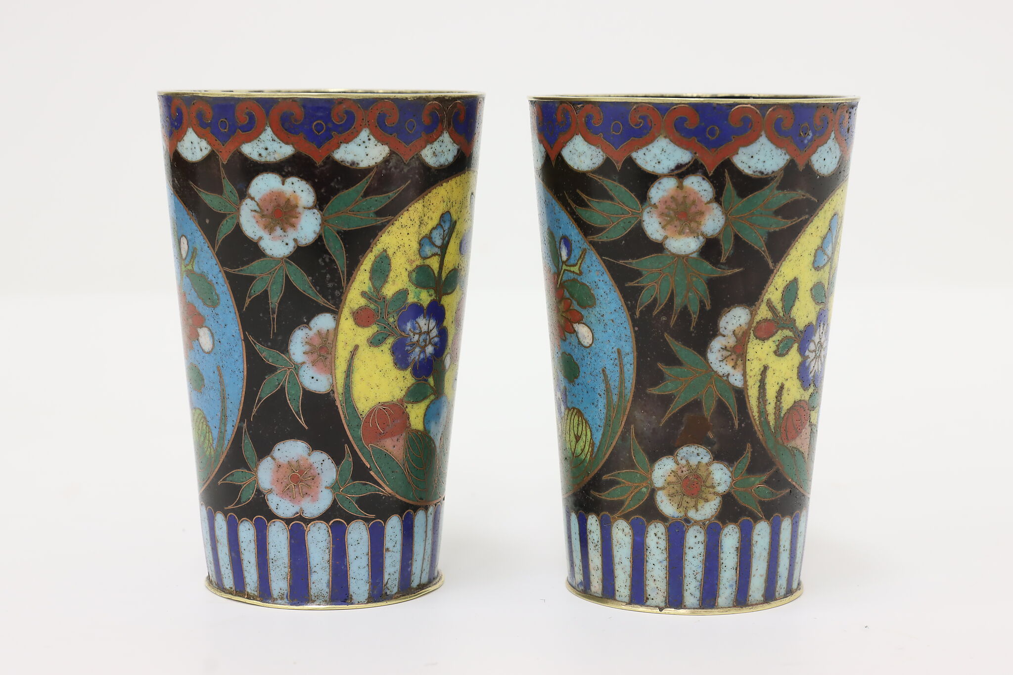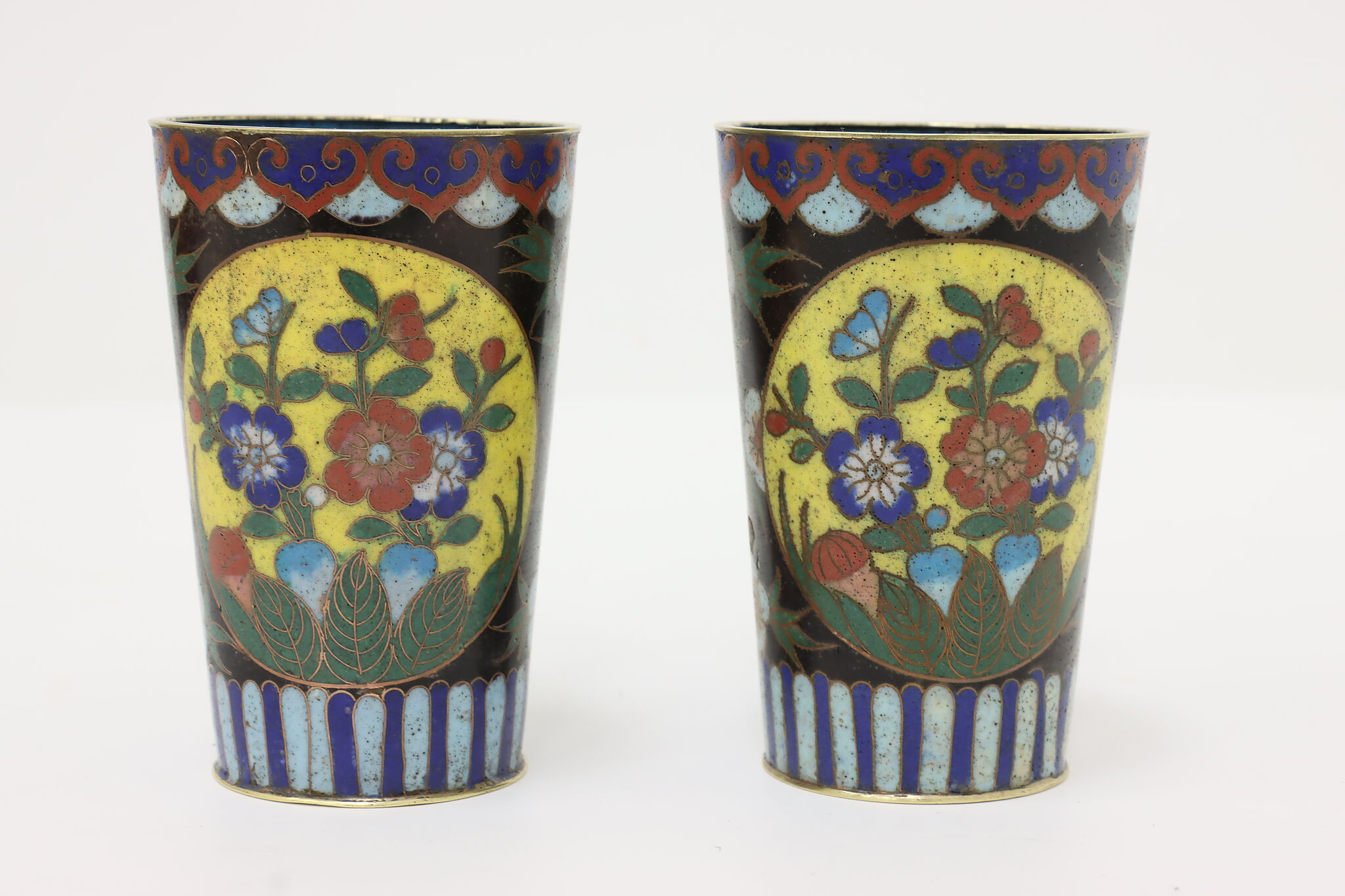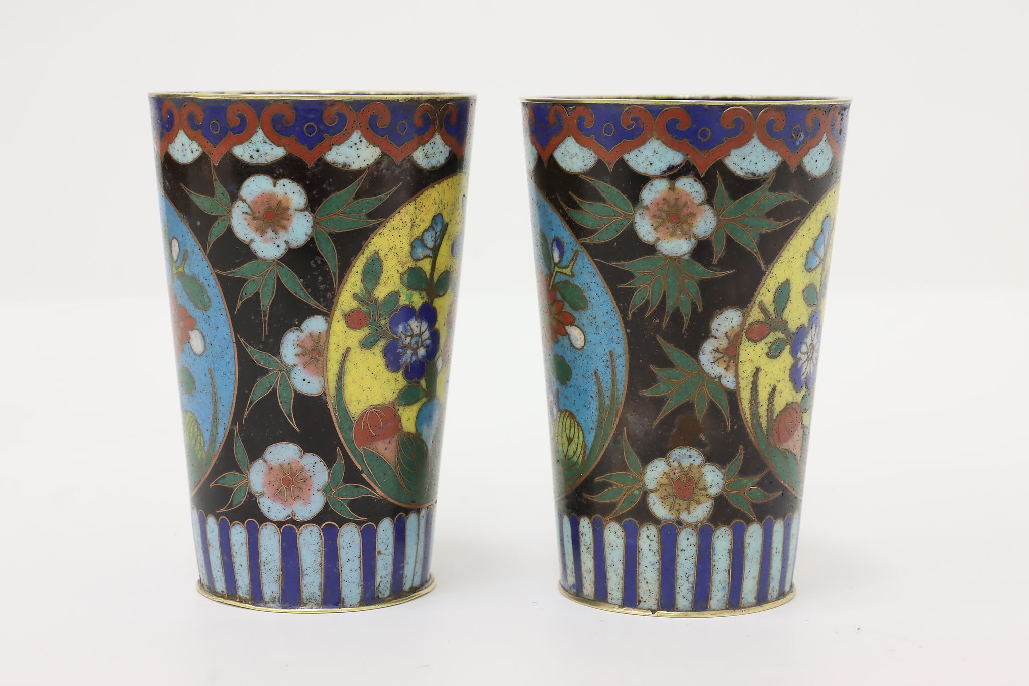 Decorate your bookshelf or curio cabinet with this lovely pair of cloisonne cups.