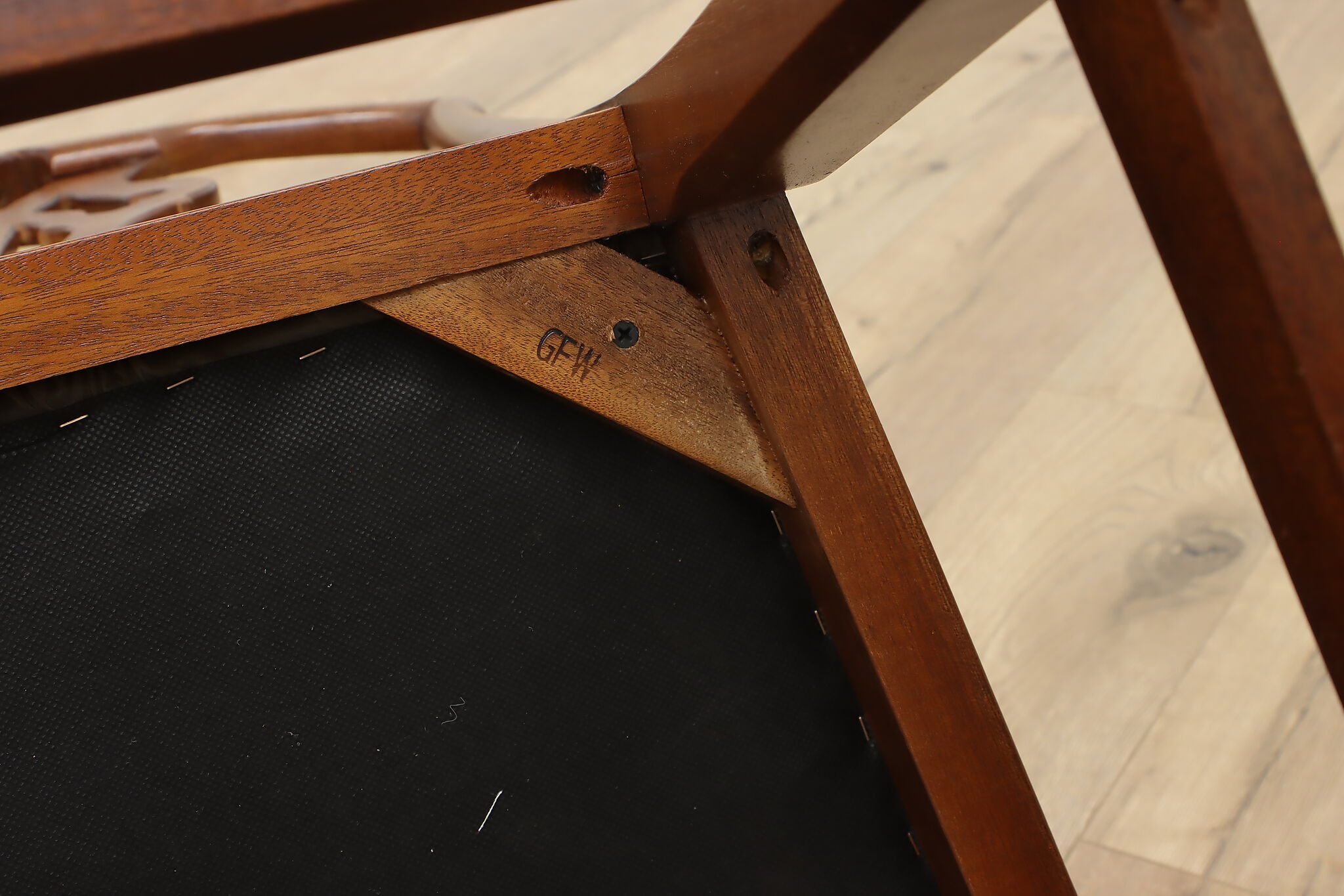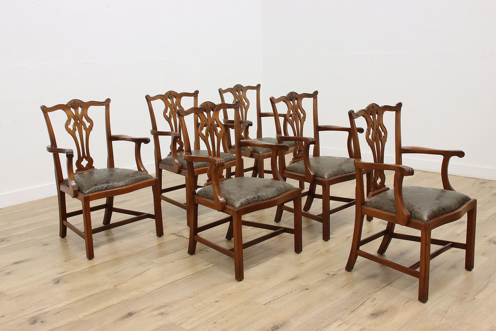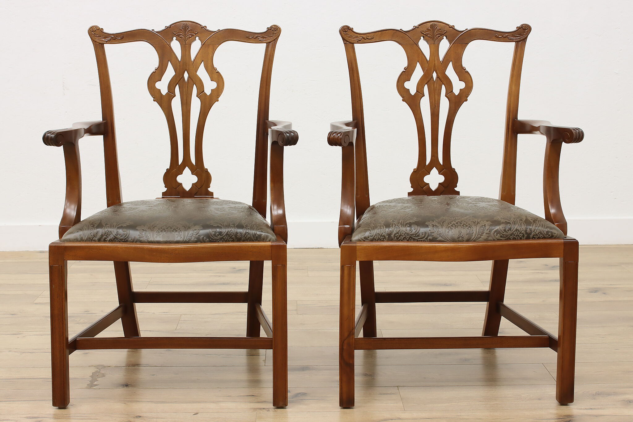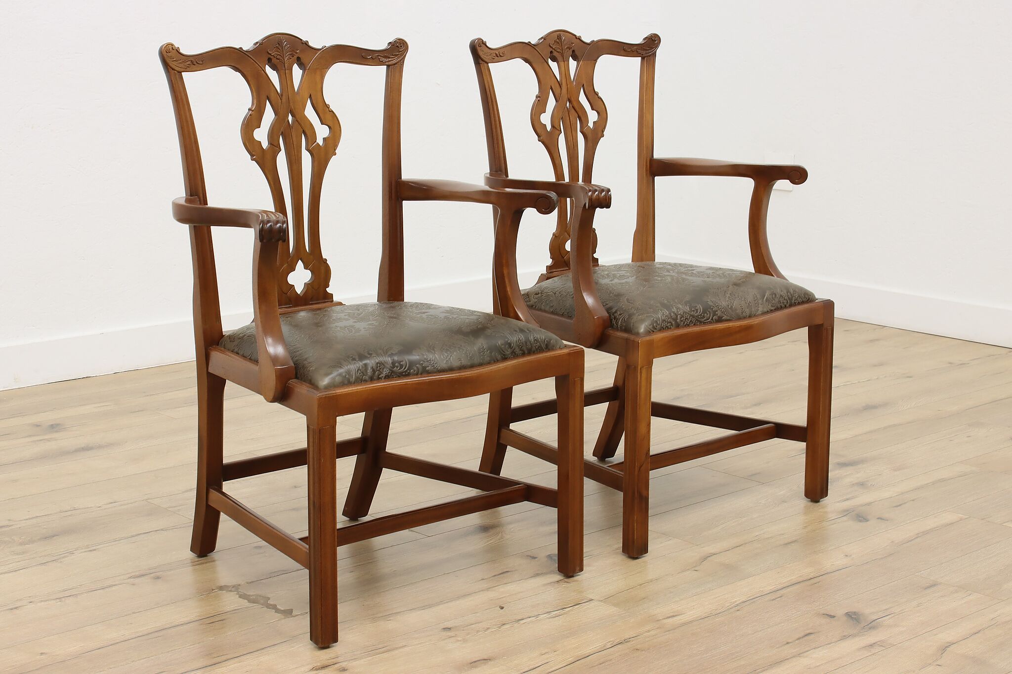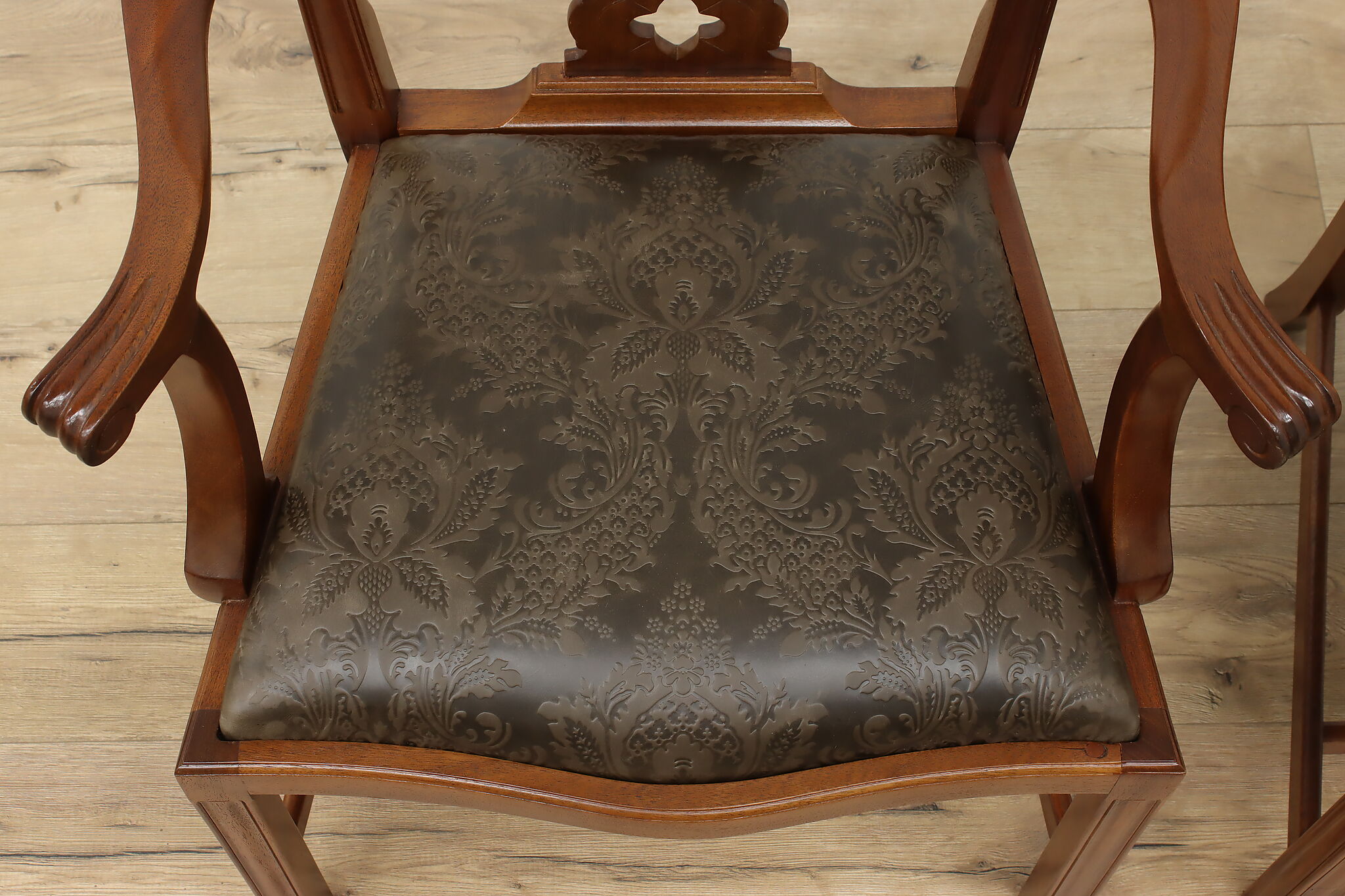 This pair of Georgian design armchairs could be placed on the sides of a console, office, or dining table.