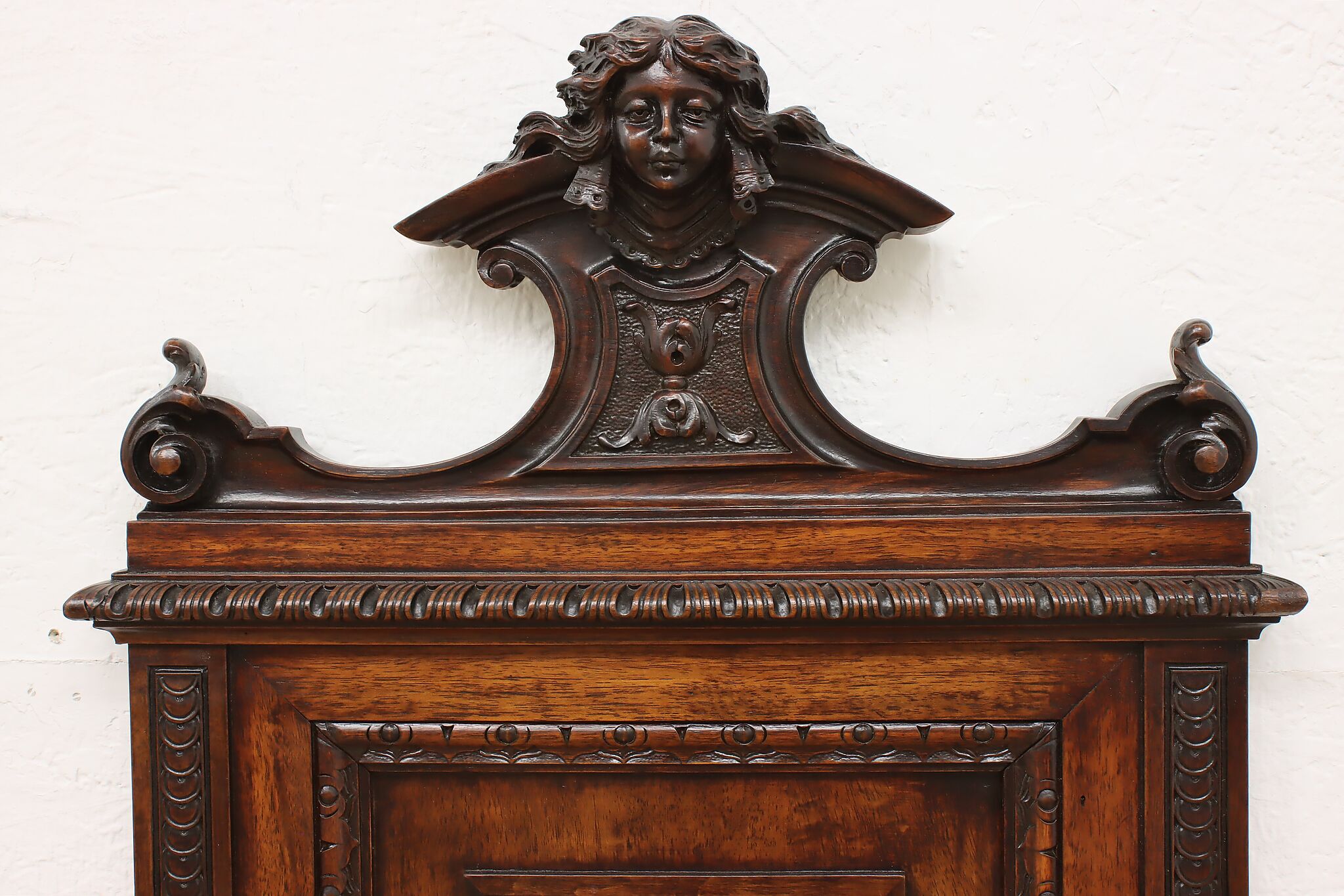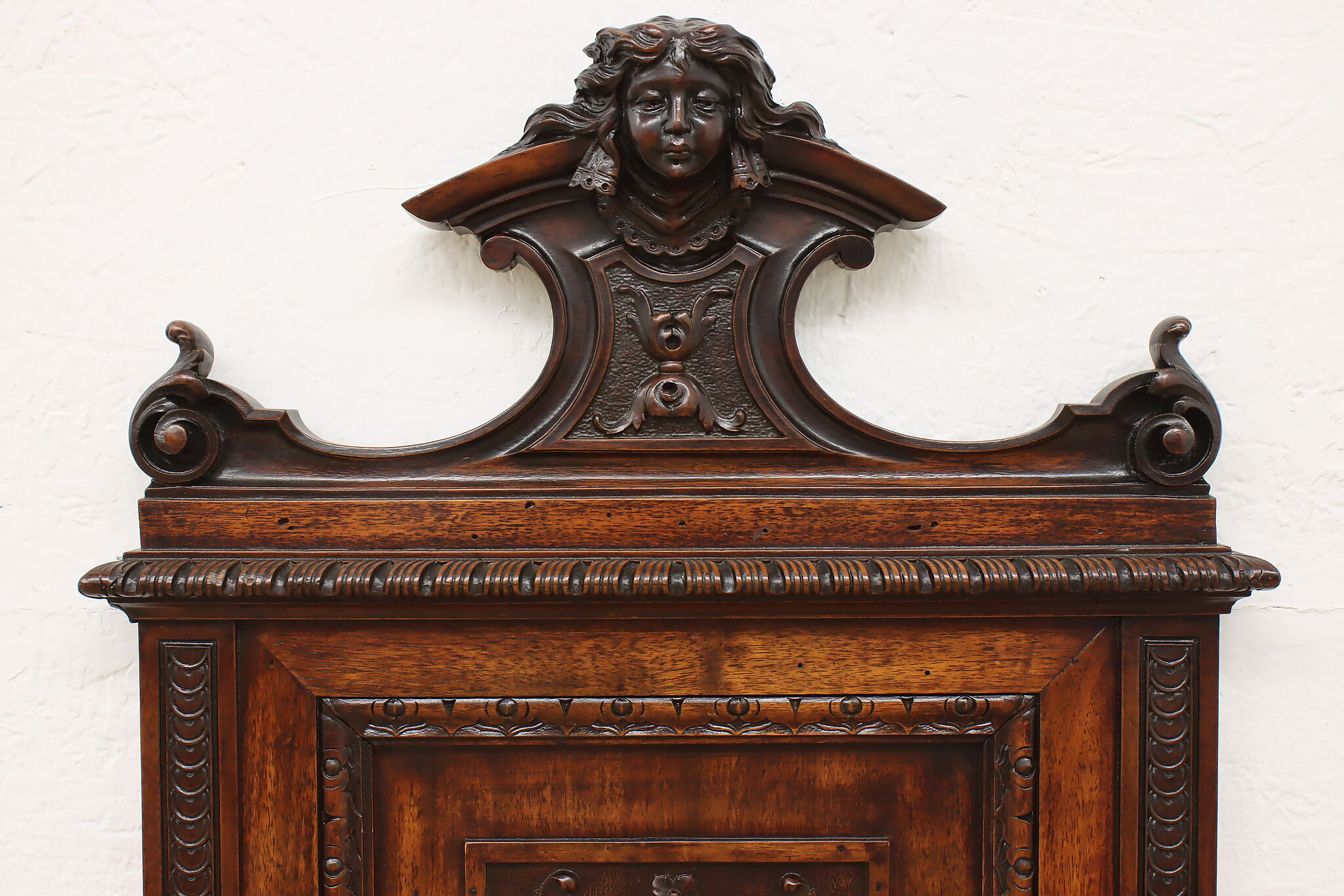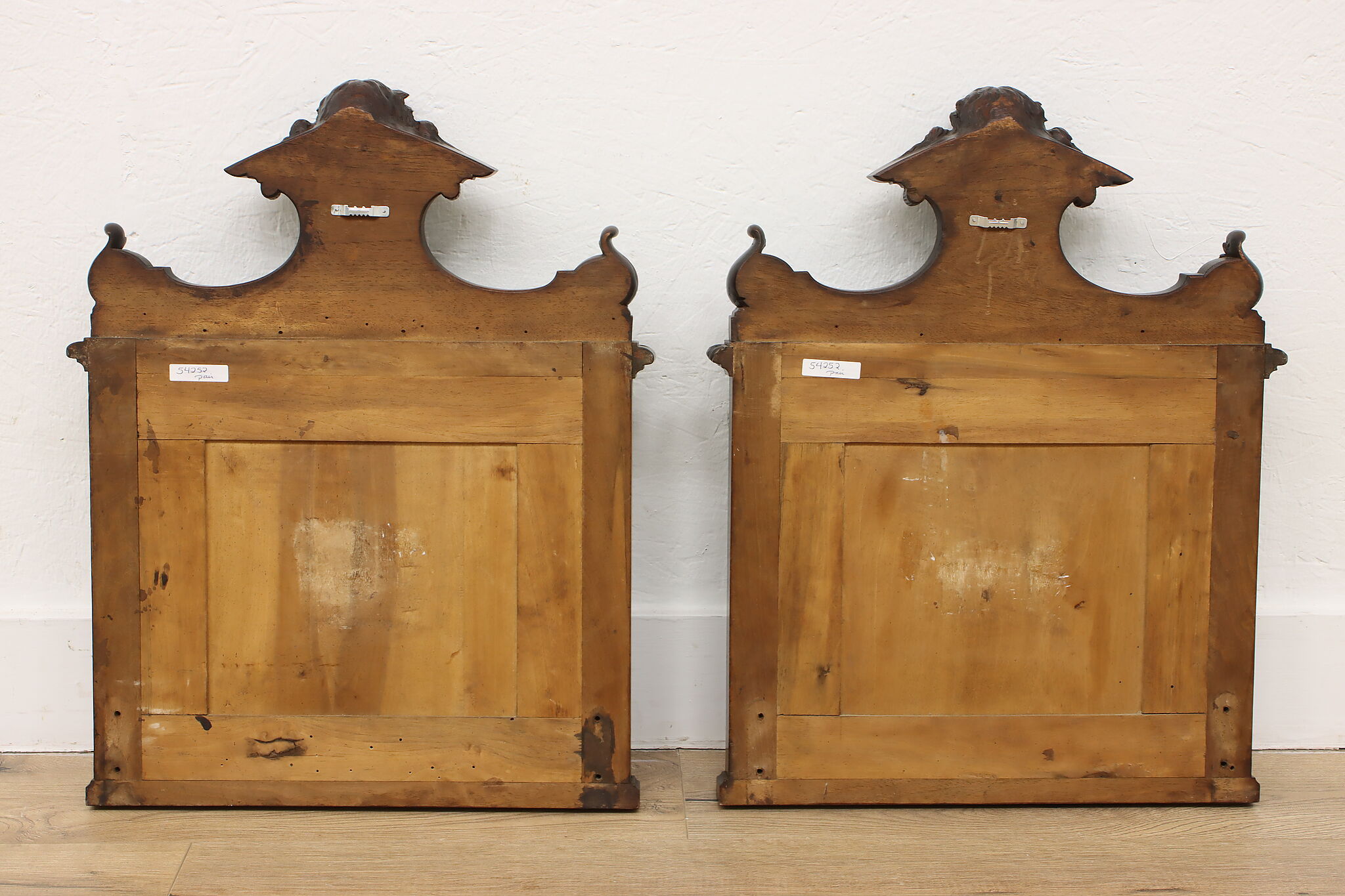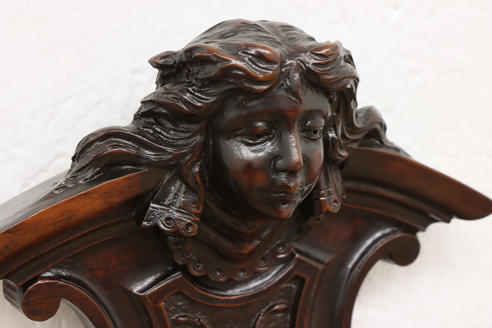 This pair of beautifully carved Renaissance design wall crests have carved women busts, perhaps of angels!