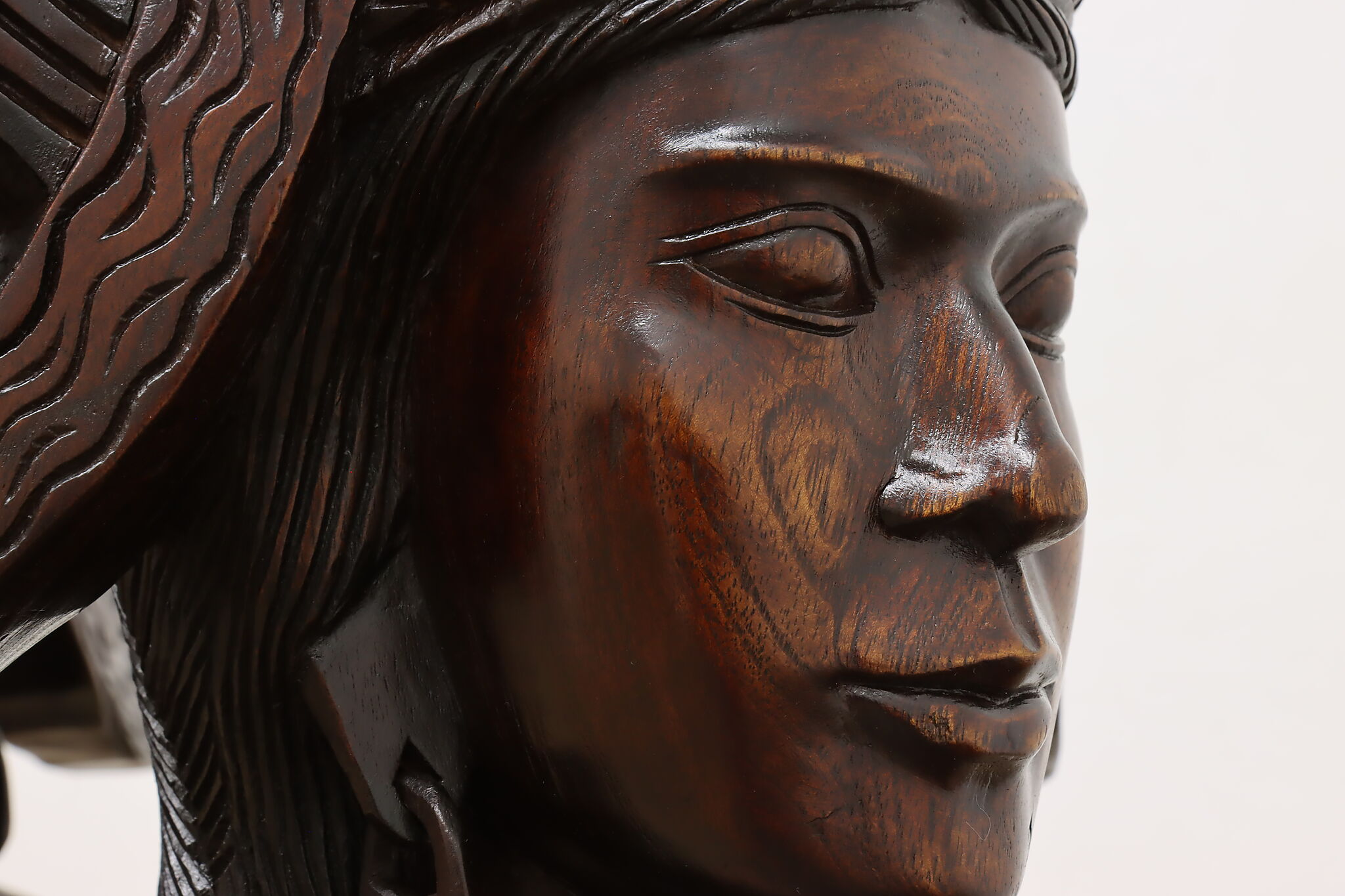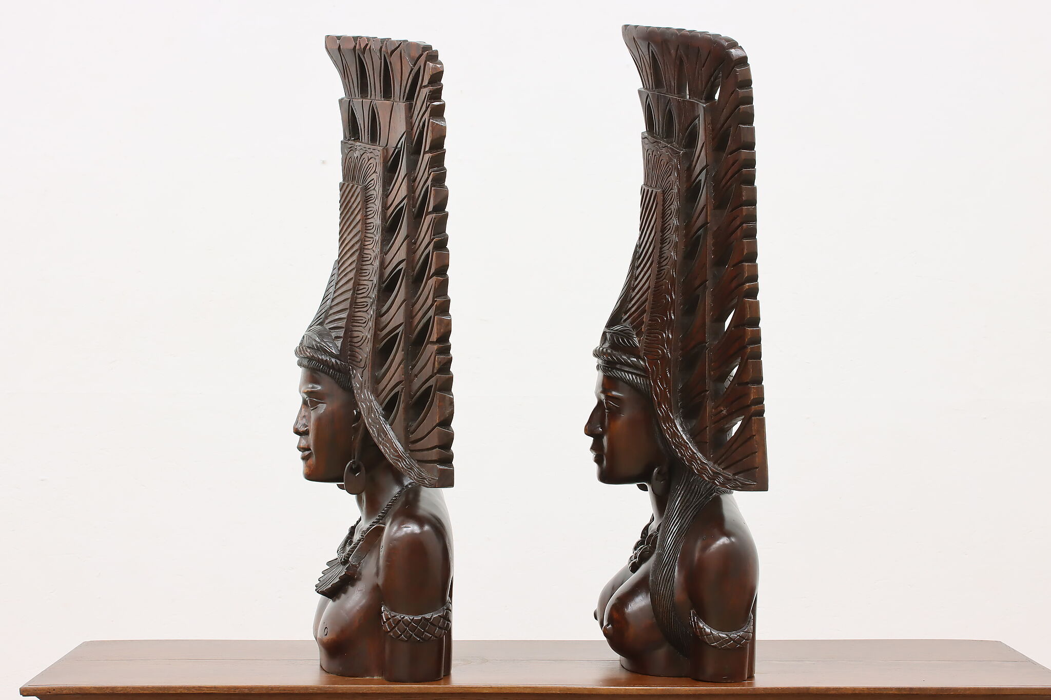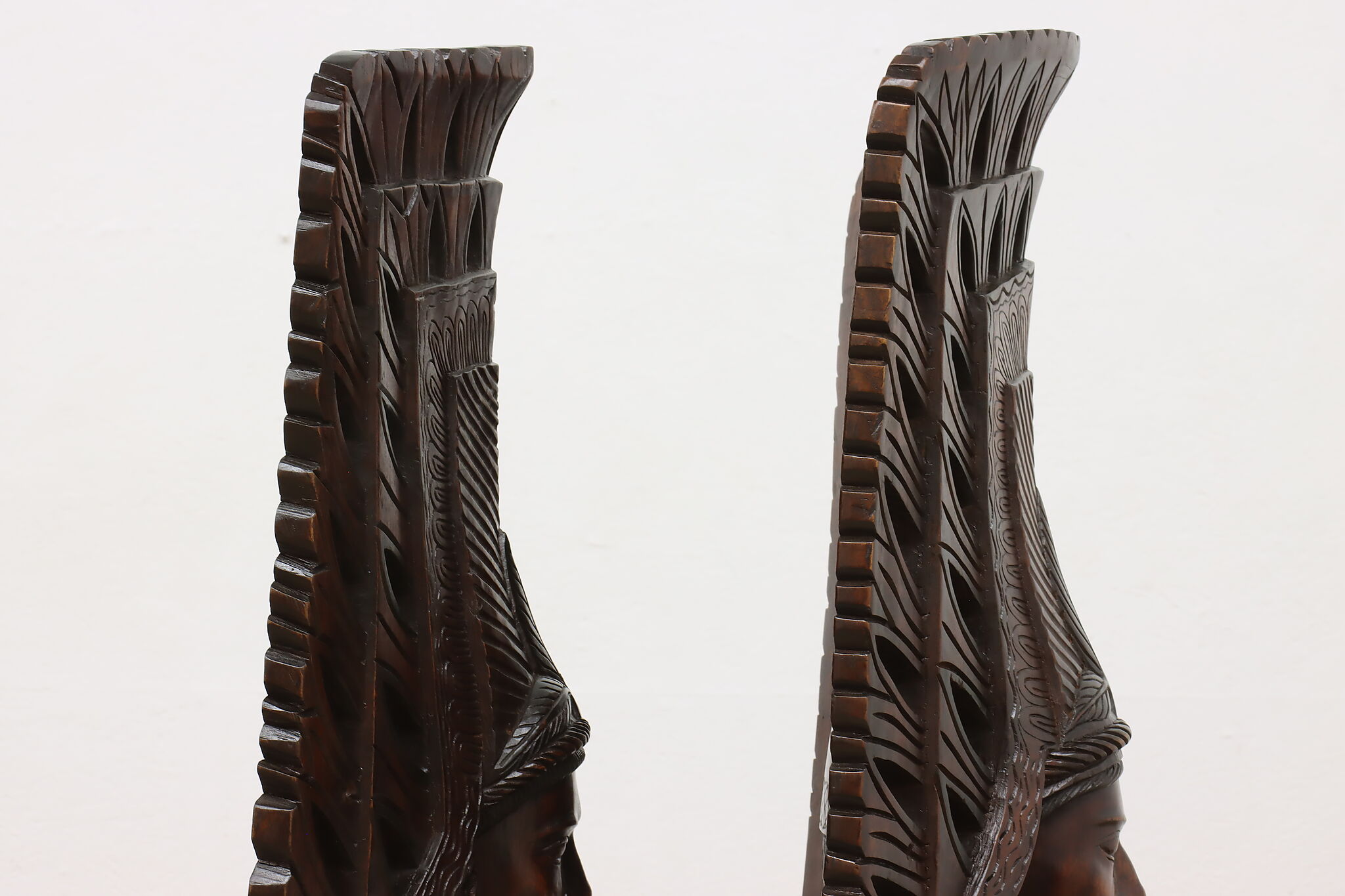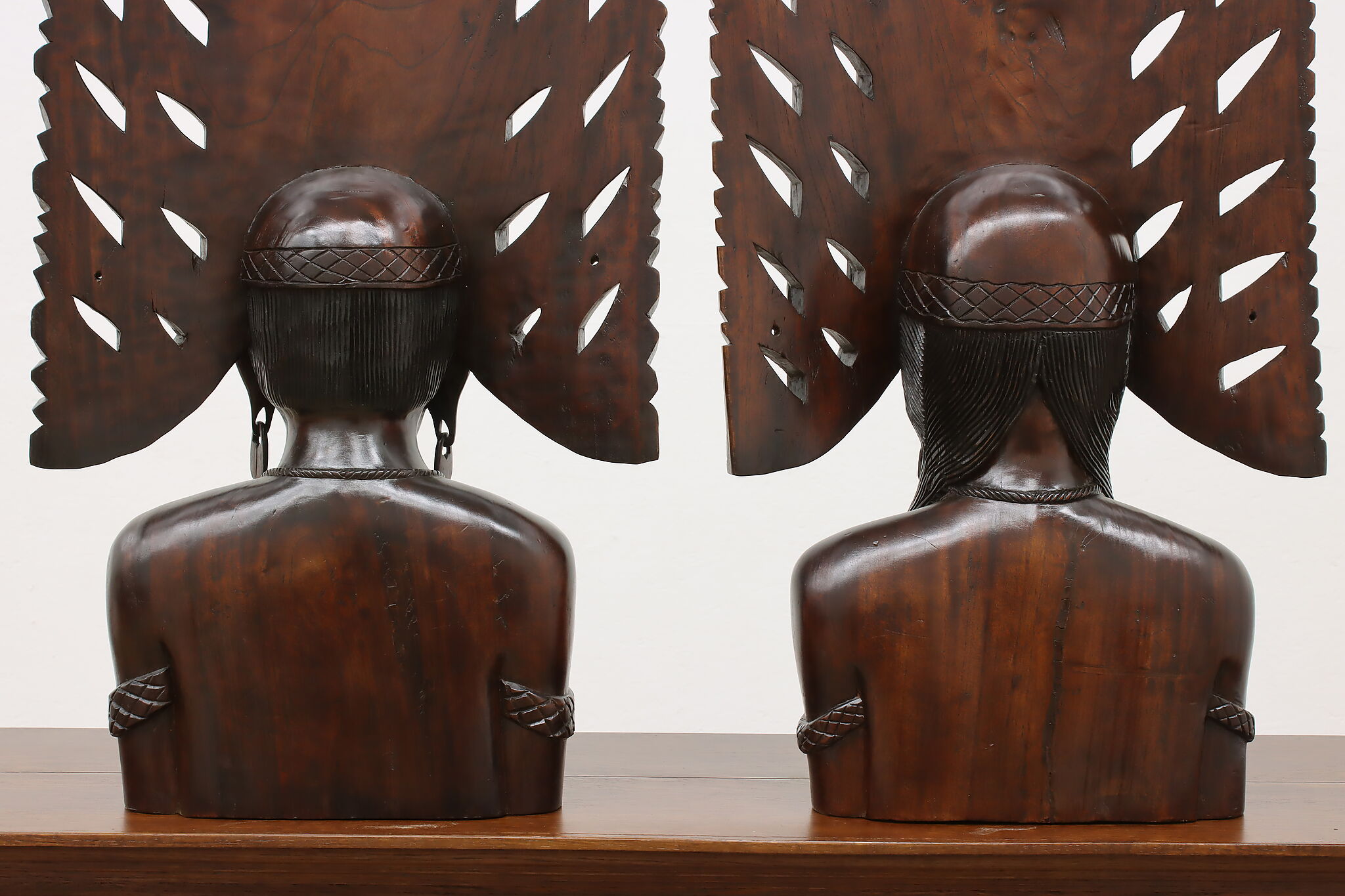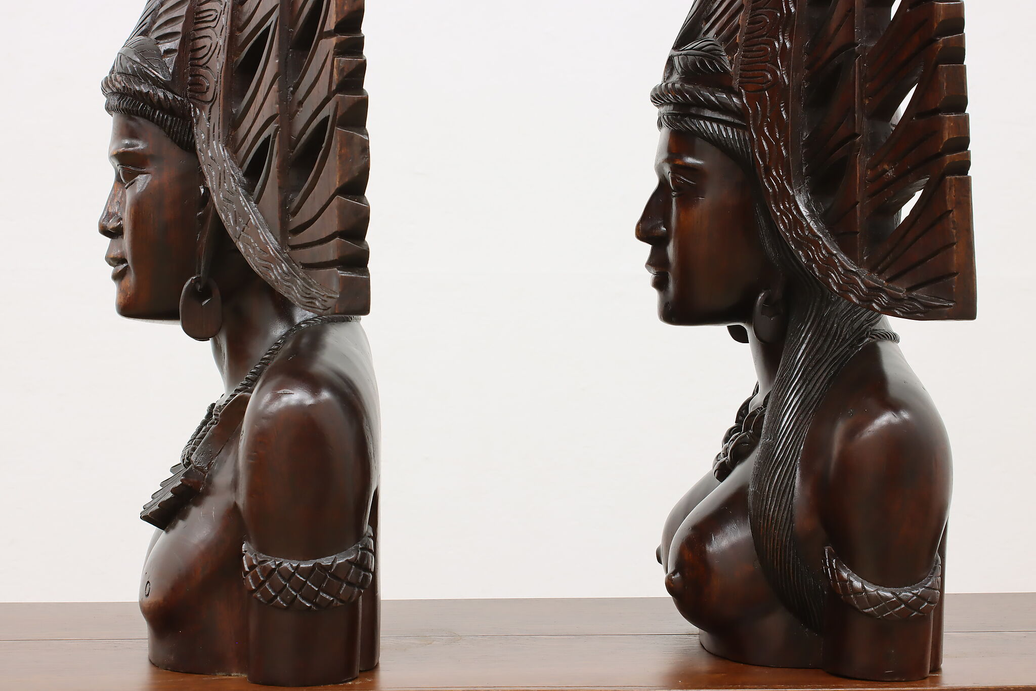 Fantastically carved with beautiful detailing, this masterful pair of sculptures represent the male and female leaders of a traditional African tribe.