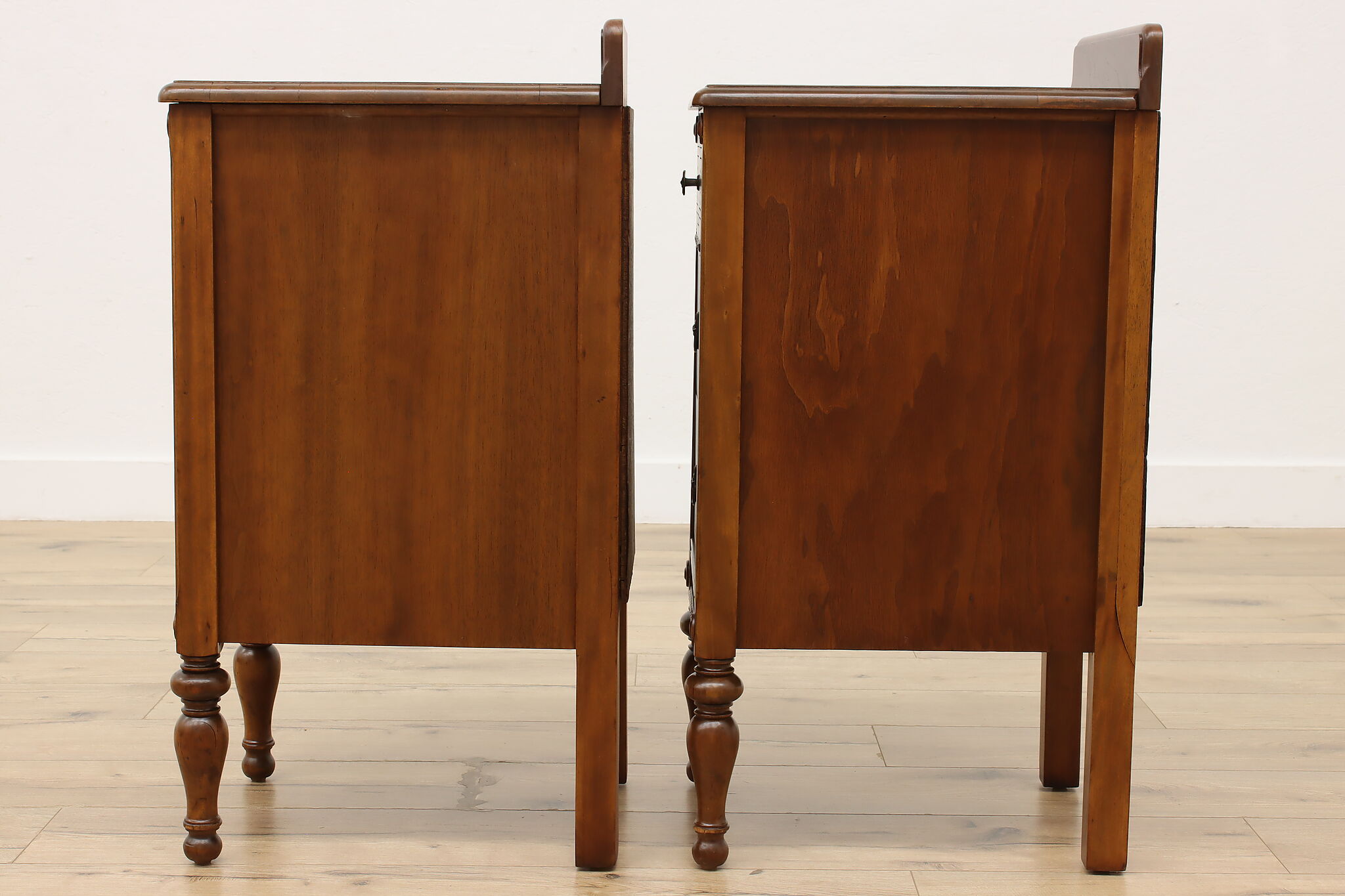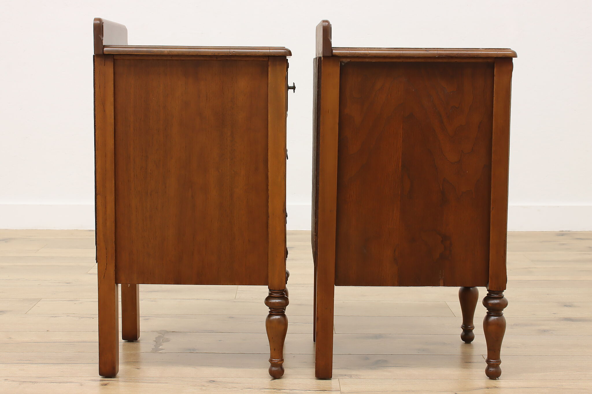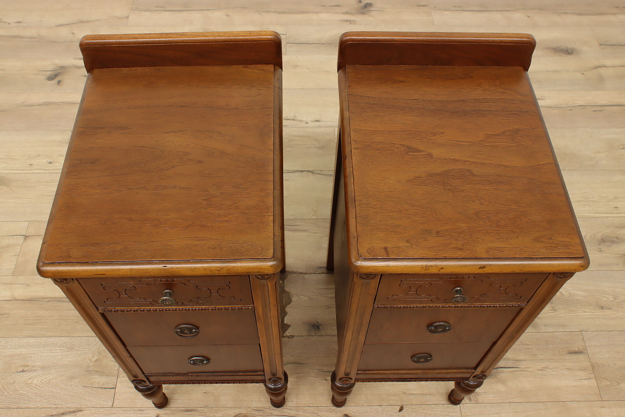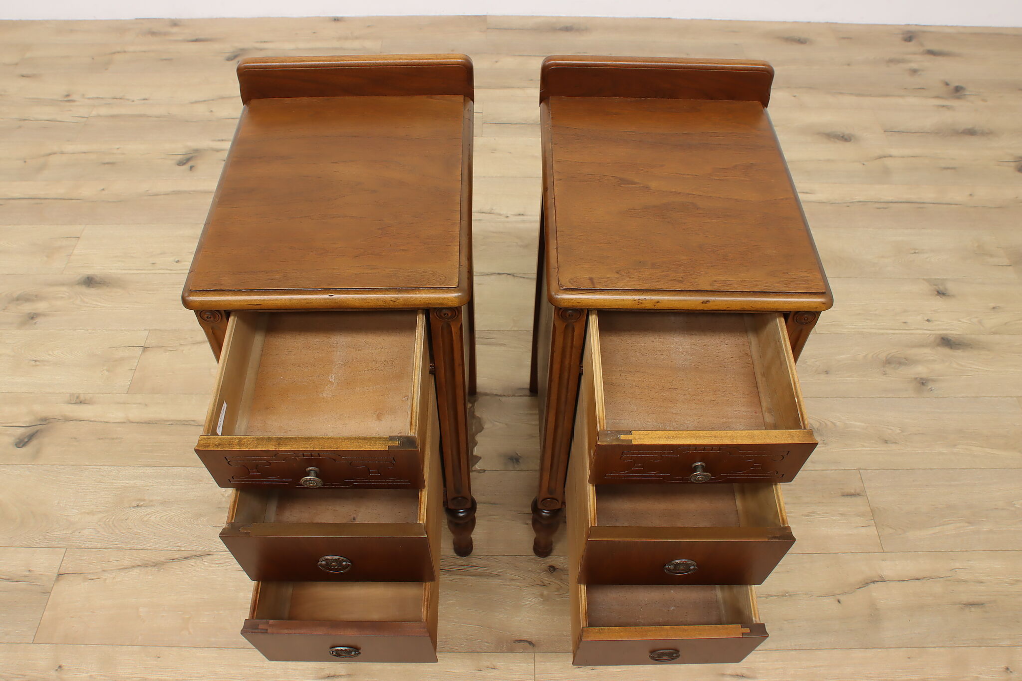 This delightful pair of nightstands or end tables reflect the beauty of the English Tudor period.