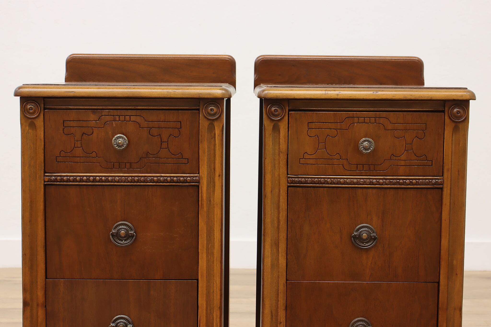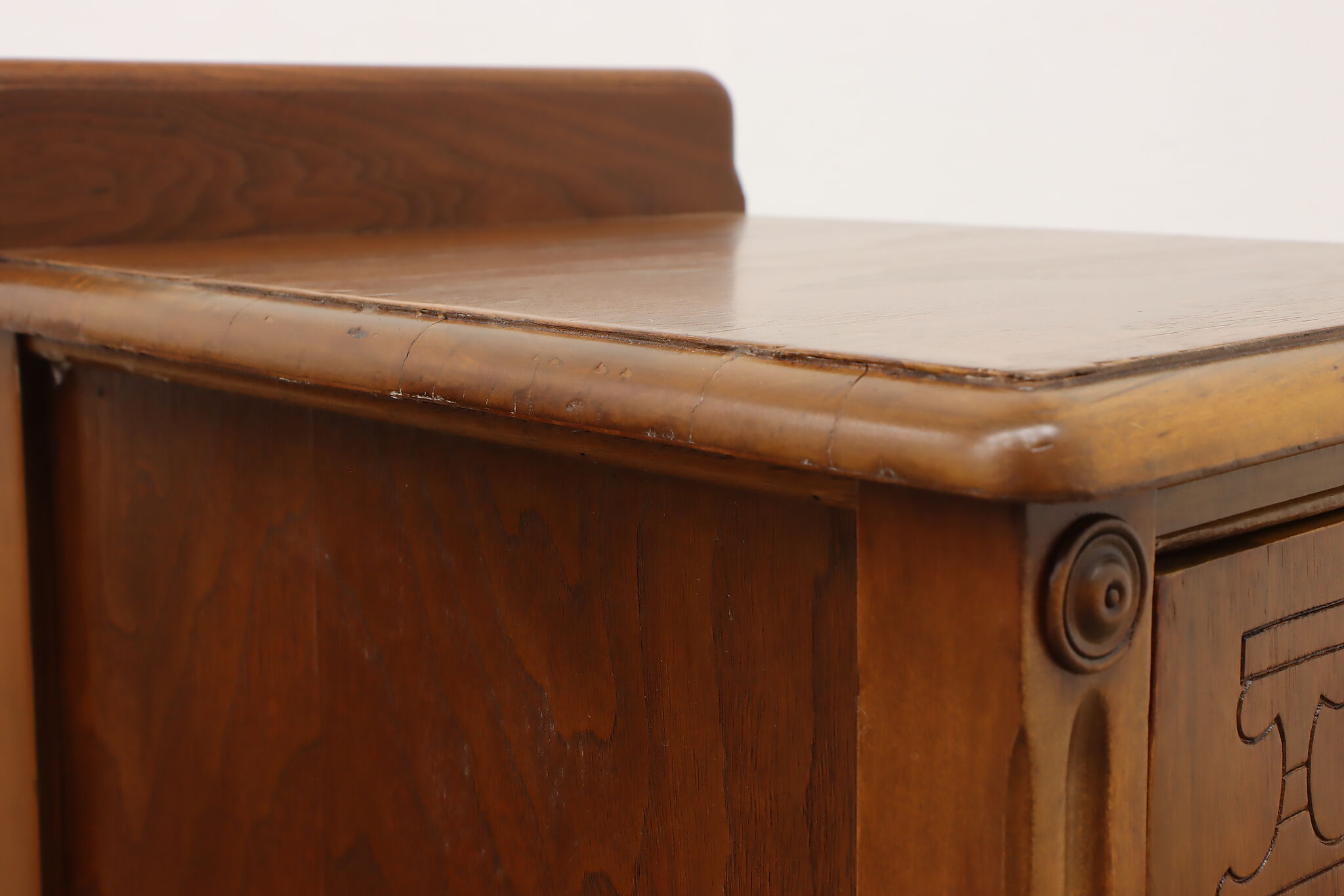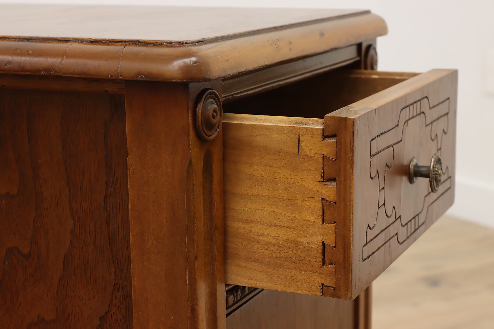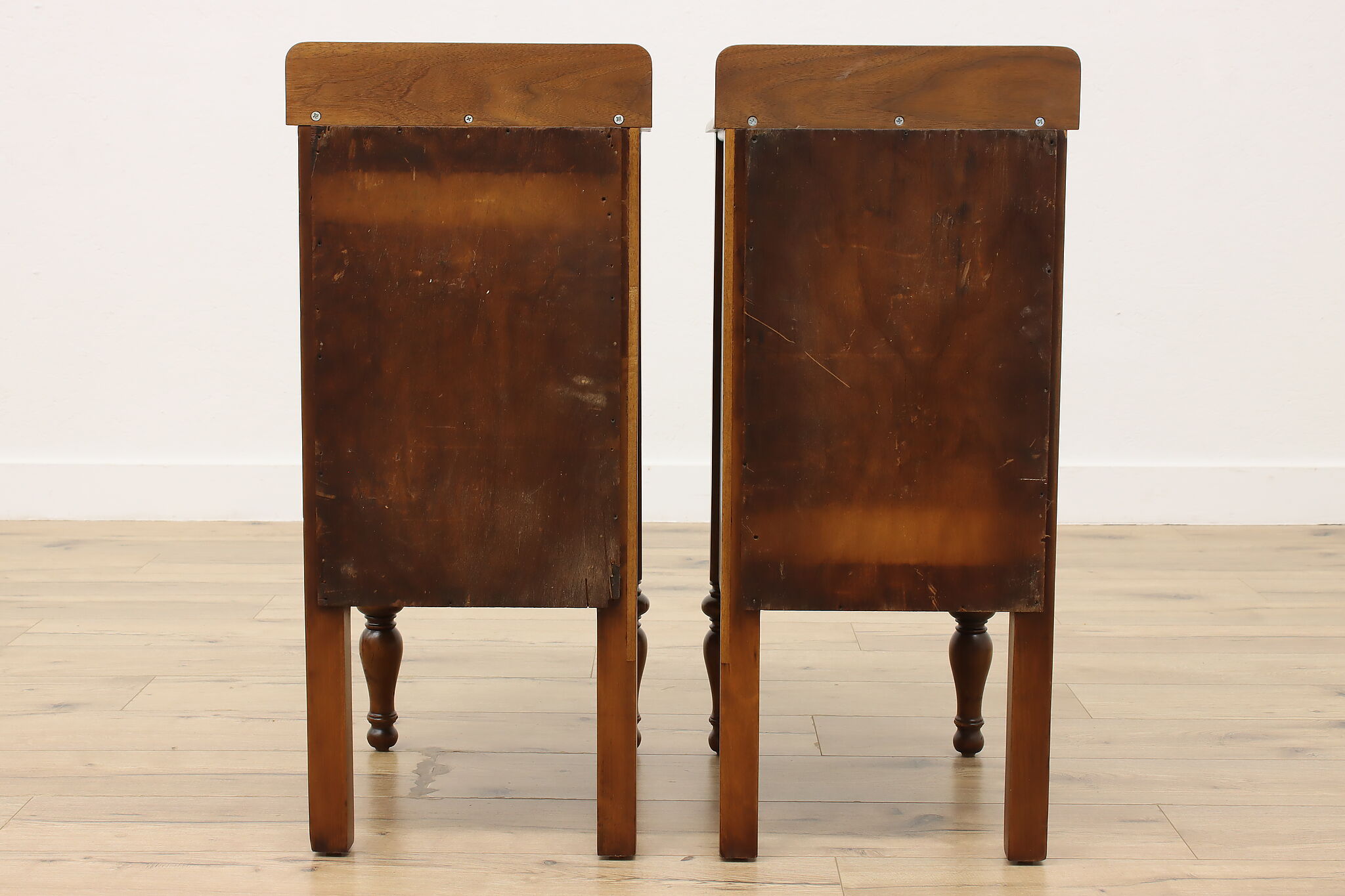 This delightful pair of nightstands or end tables reflect the beauty of the English Tudor period.